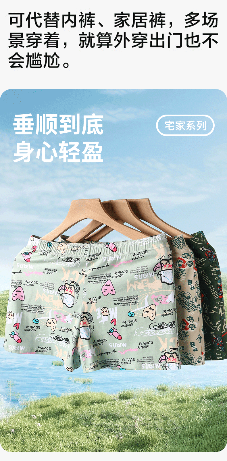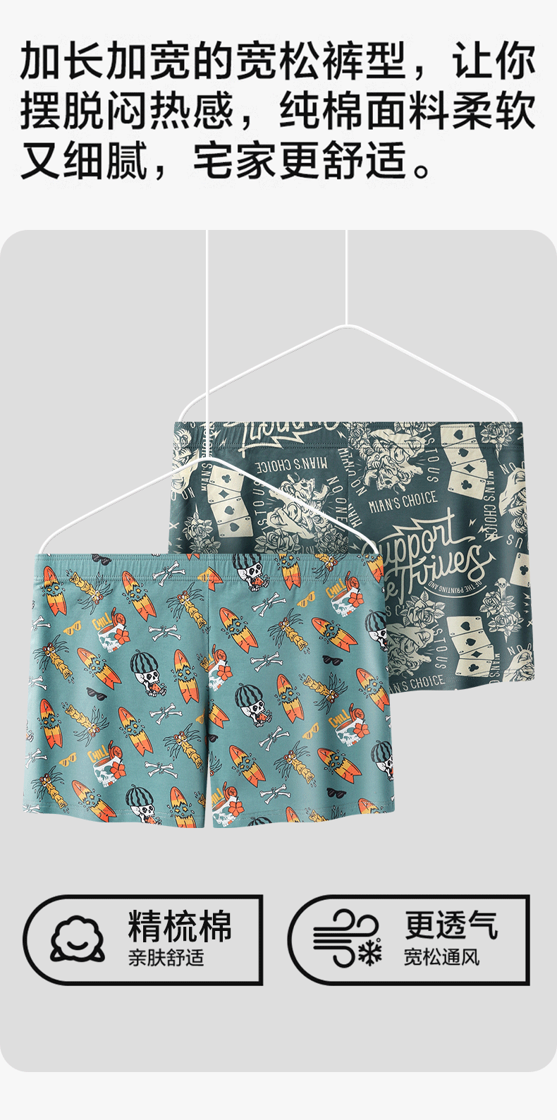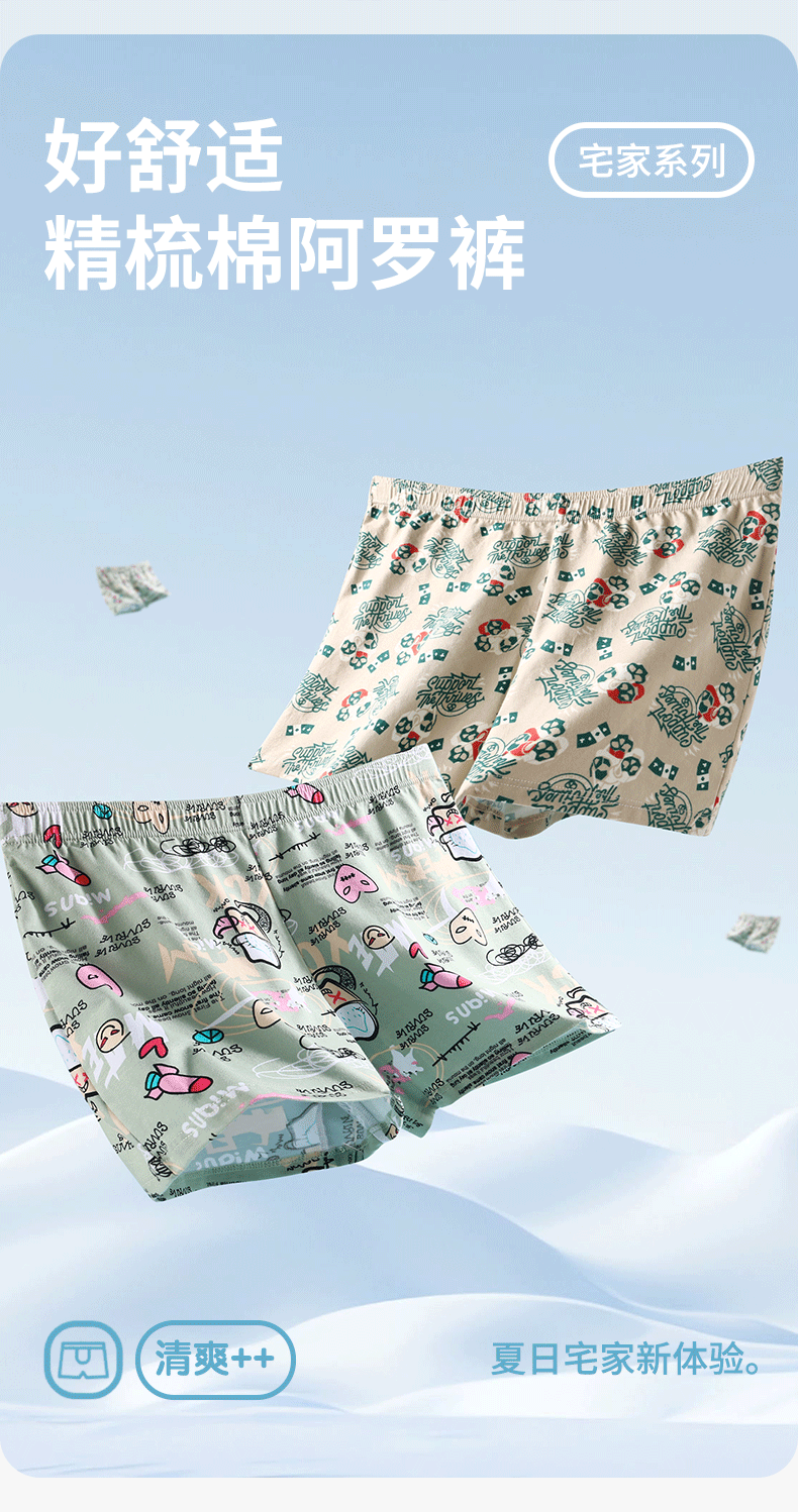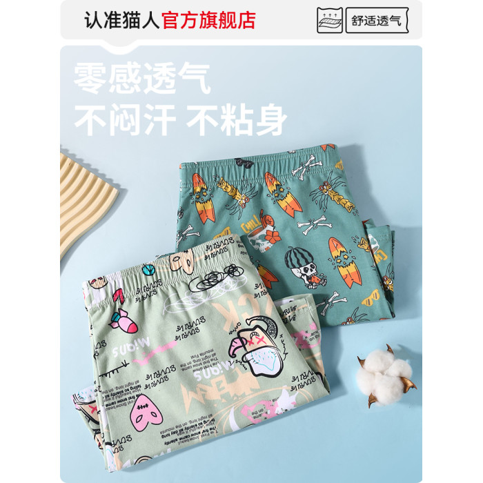 貓人阿羅褲純棉男士內褲寬松大碼四角短褲頭2025新款睡褲平角褲衩