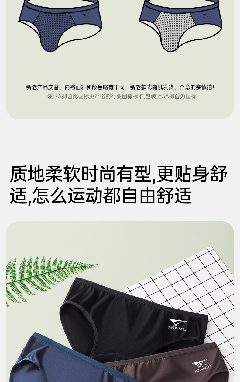 七匹狼男士內褲純棉男生短褲底褲衩高檔透氣全棉新款三角褲頭男式