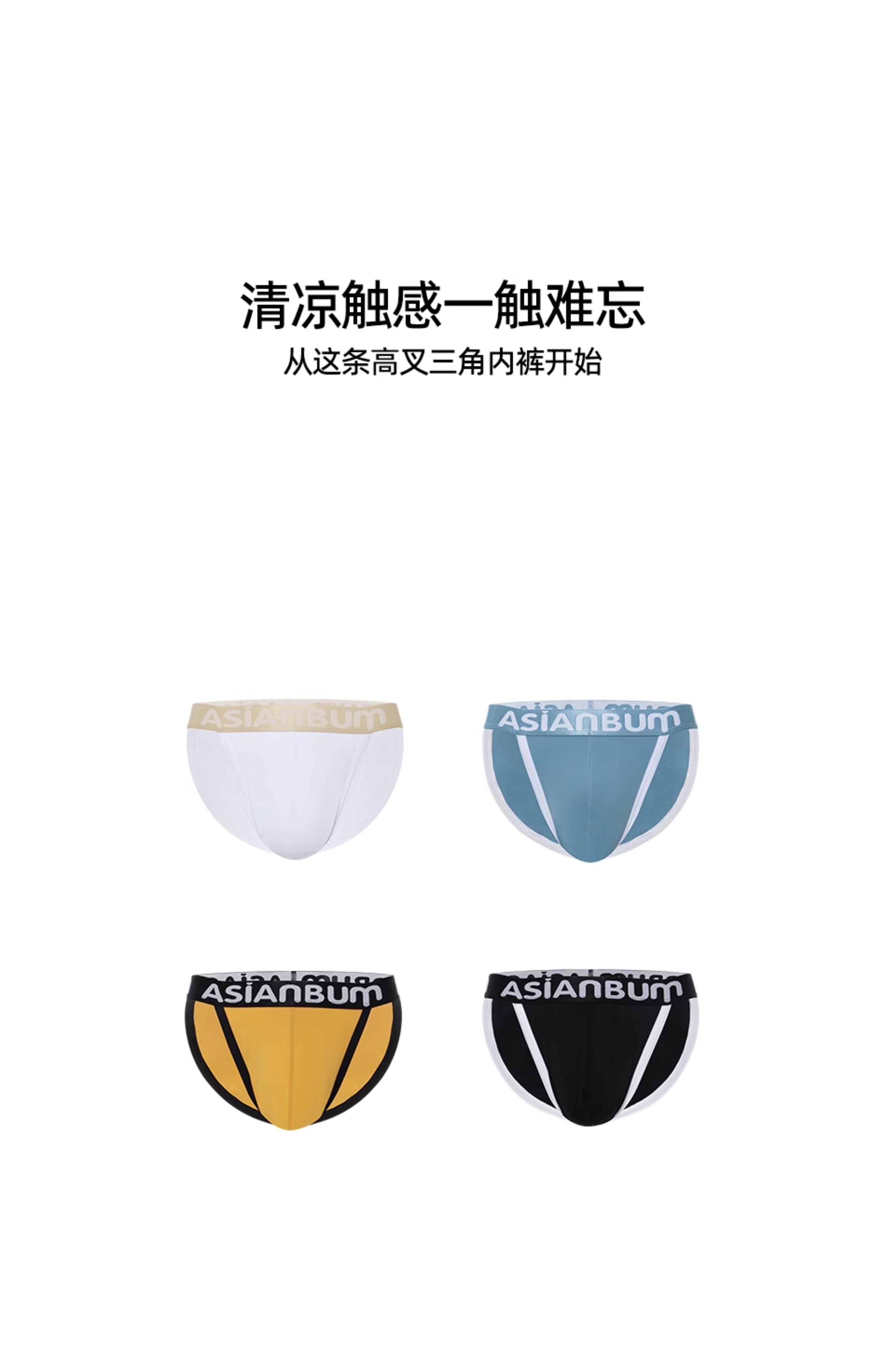 冰絲綿感!男士高叉三角內褲 輕薄彈力 雙層囊袋 + 絲光腰帶