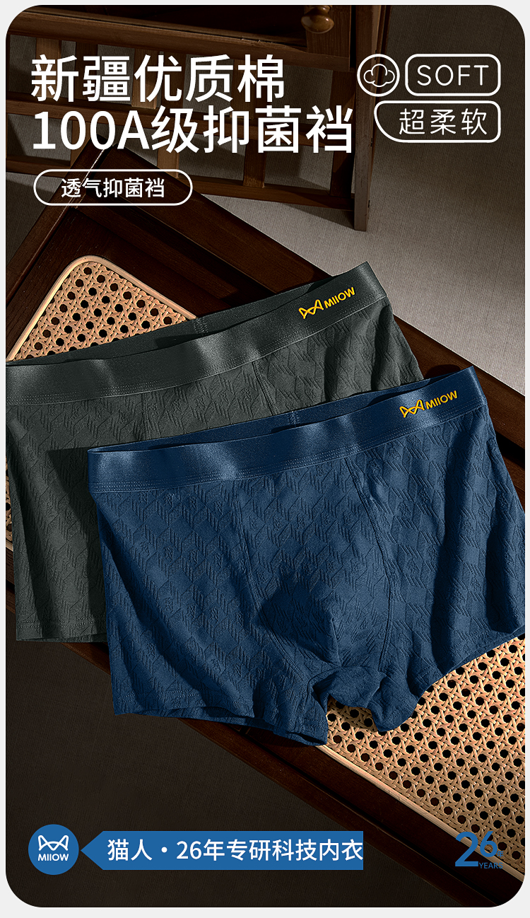 貓人男士內褲男生純棉抑菌四角褲2025新款大碼男式平角短褲頭男款