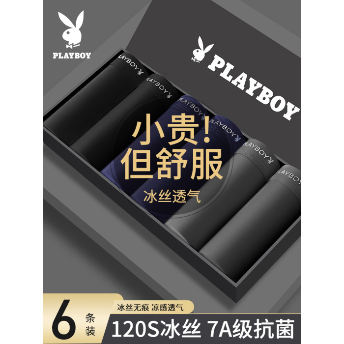 花花公子男士冰絲內褲男生2025新款四角短褲無痕平角男款夏季薄款