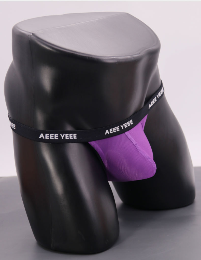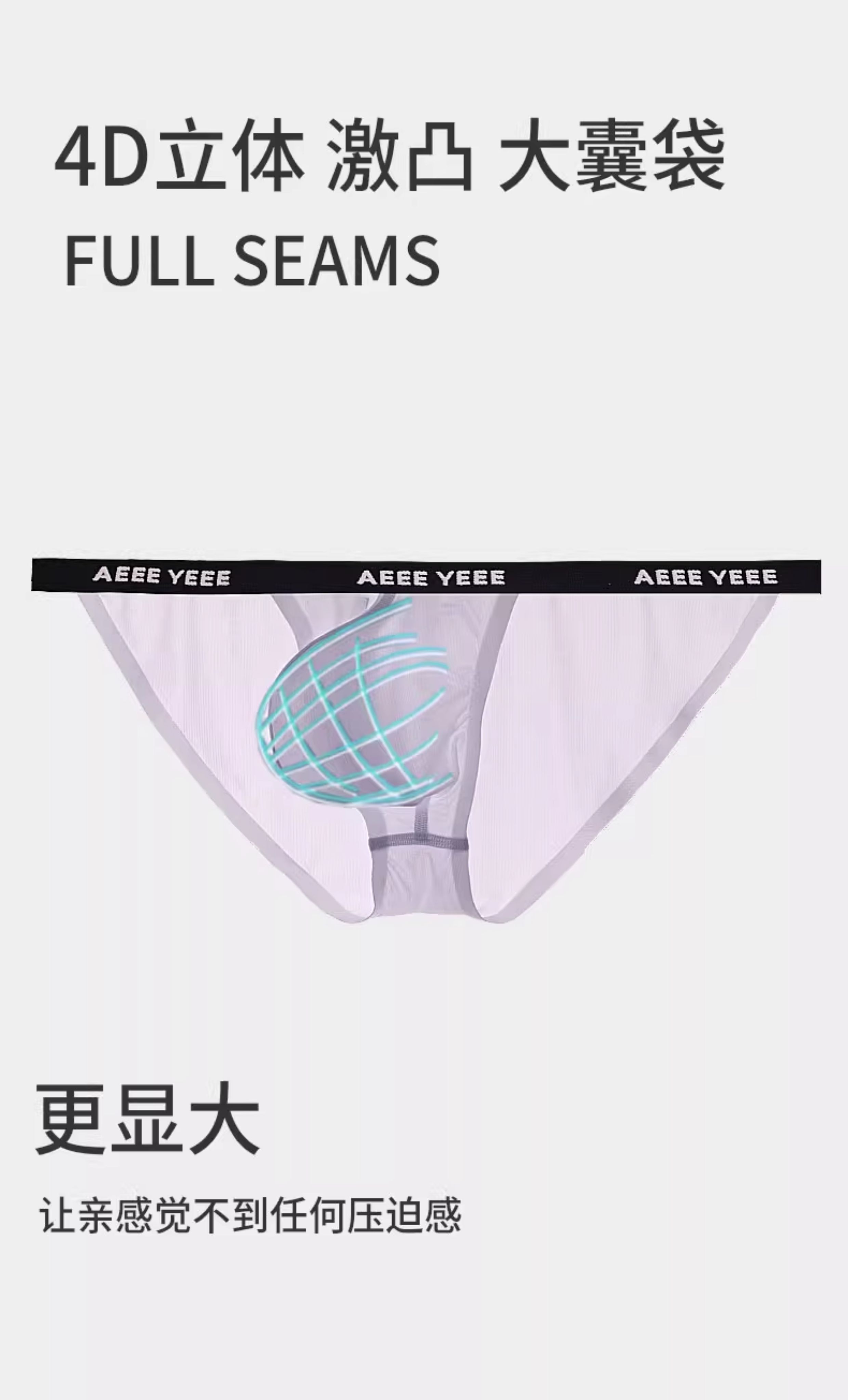 阿邑4D立體檔3D大囊袋男士內褲三角褲冰絲條紋高叉全包臀低腰速乾