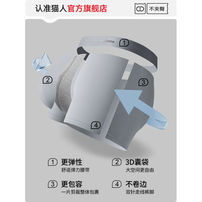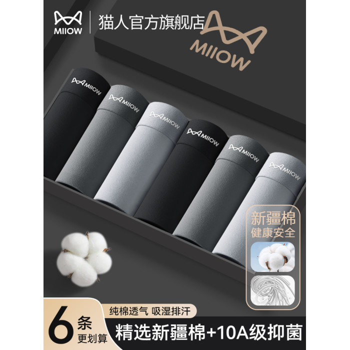 貓人男士內褲男款純棉抑菌四角褲2025新款男生大碼透氣平角短褲頭