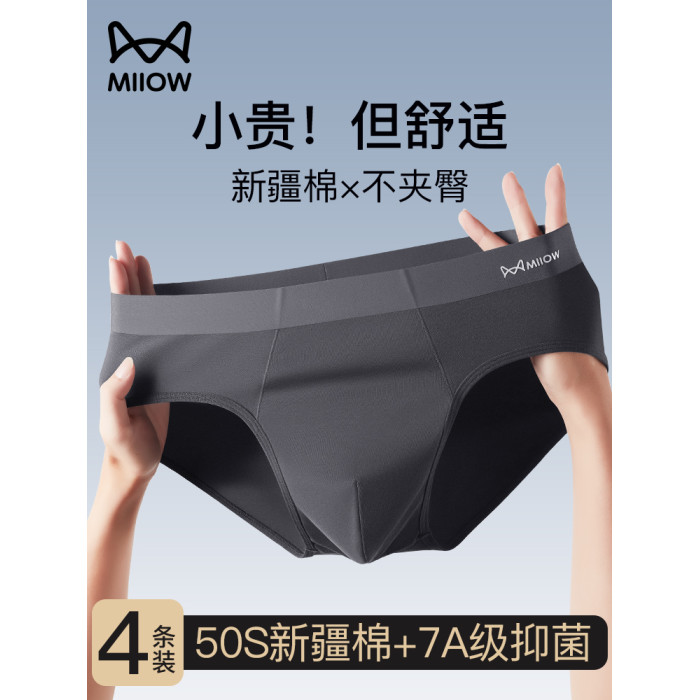 貓人純棉男士三角內褲男生2025新款抑菌全棉襠透氣大碼短褲頭褲衩