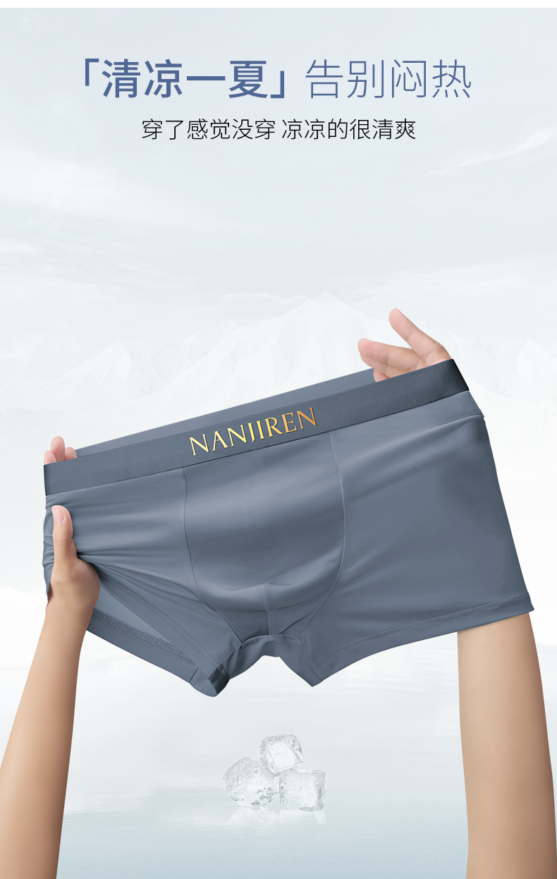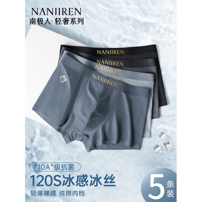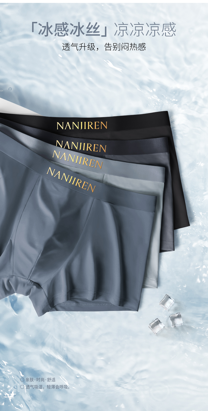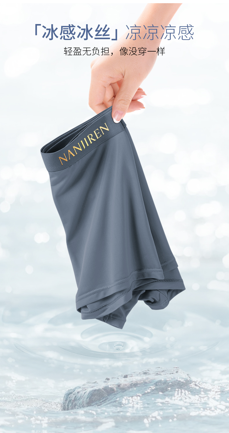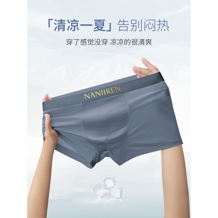 南極人冰絲男士內褲無痕高檔男生平角男式四角新款薄款透氣短褲衩