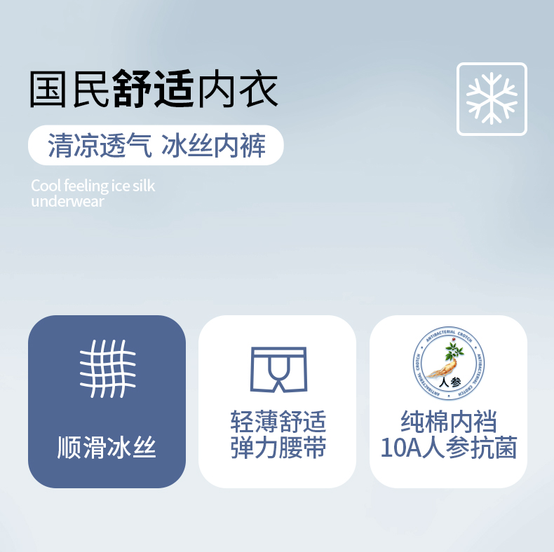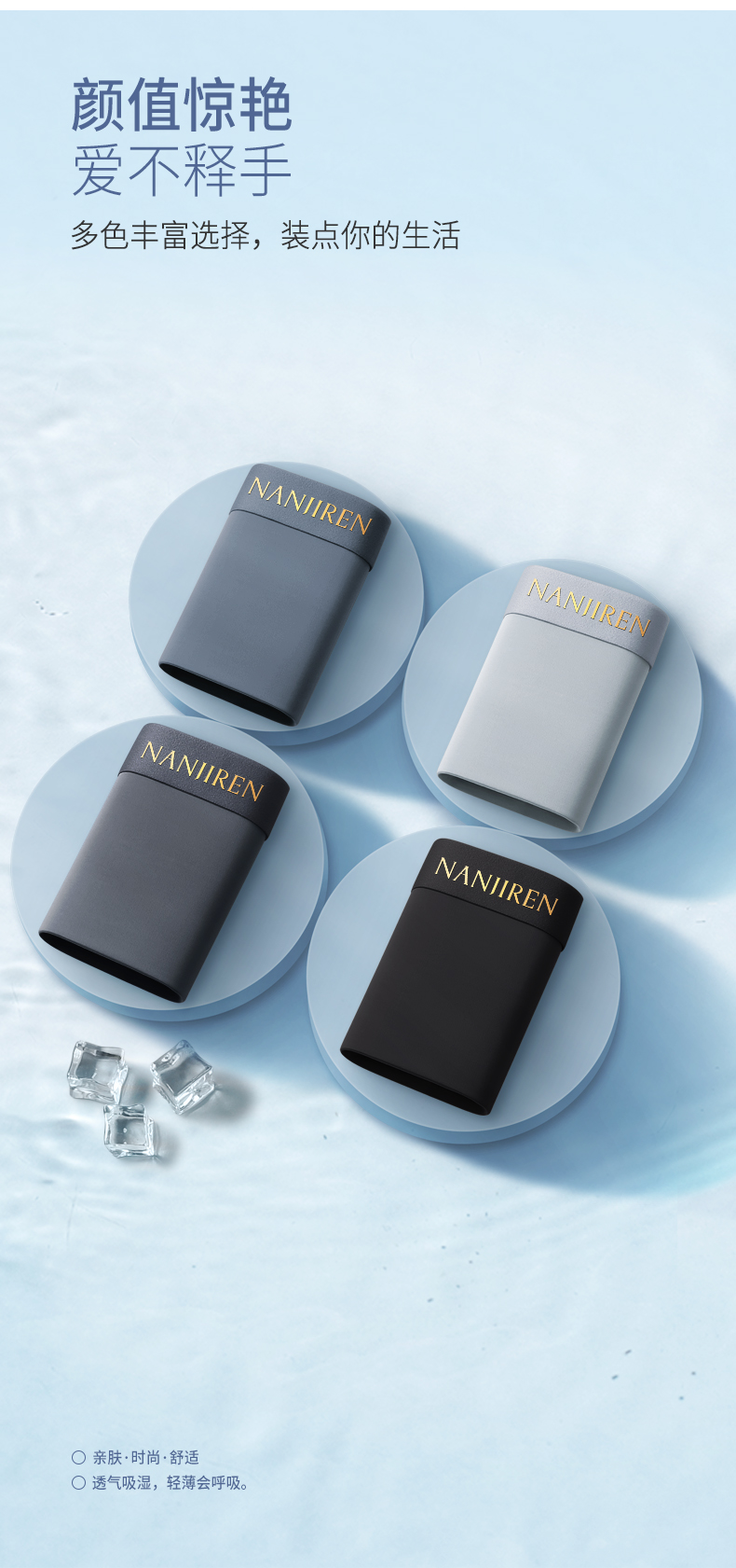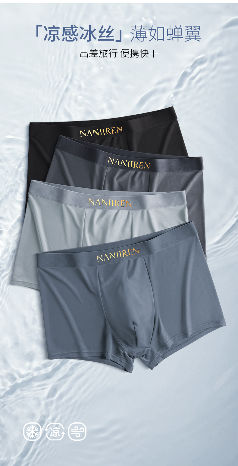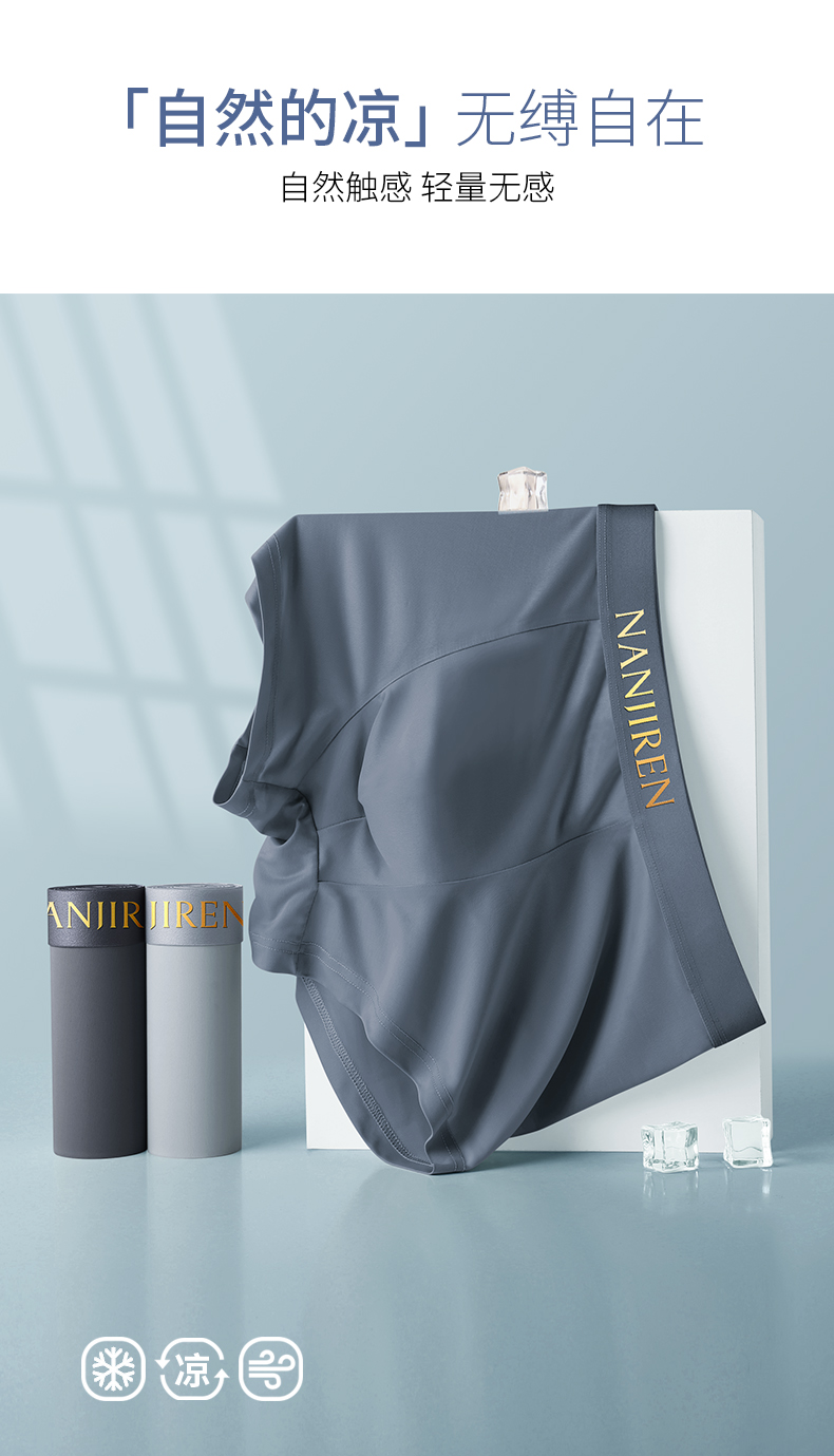 南極人冰絲男士內褲無痕高檔男生平角男式四角新款薄款透氣短褲衩