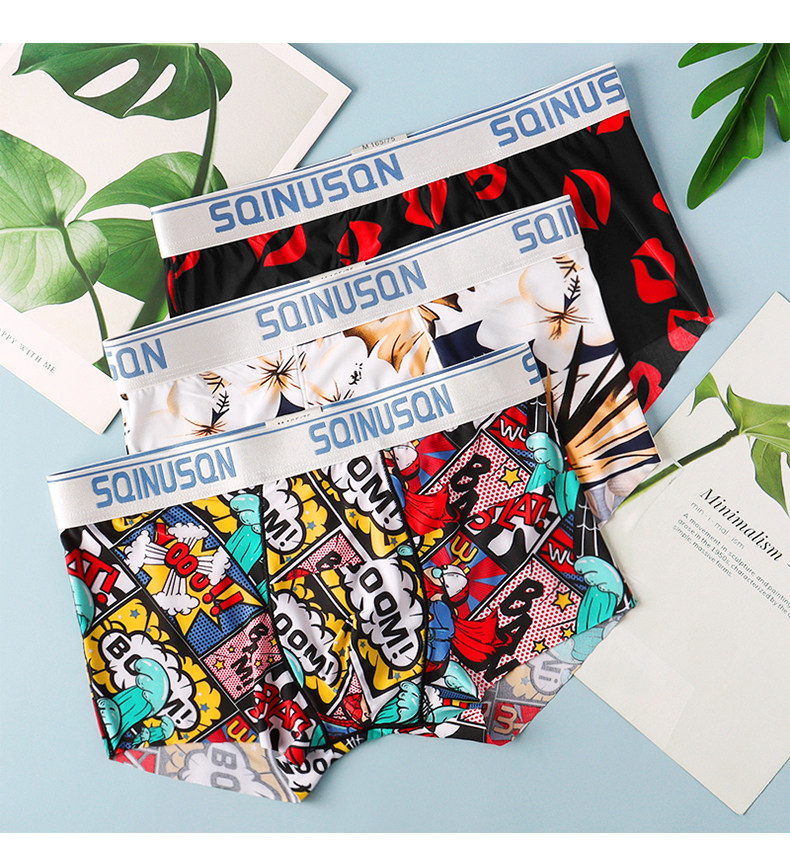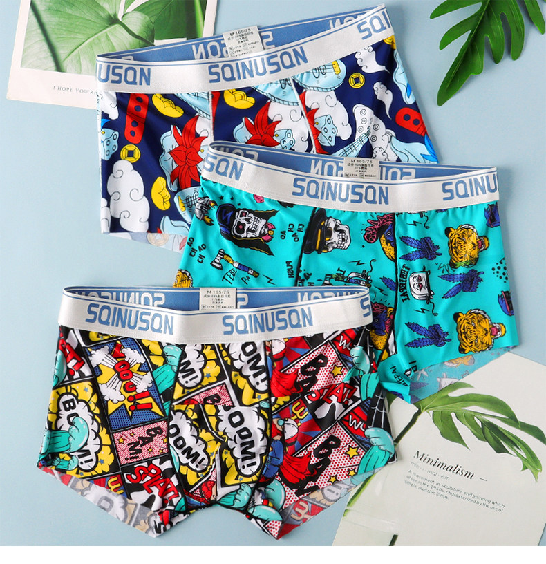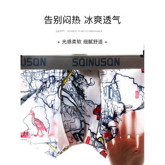 冰絲男士內褲舒適透氣男平角褲男青年四角褲衩夏季潮流男生底褲頭
