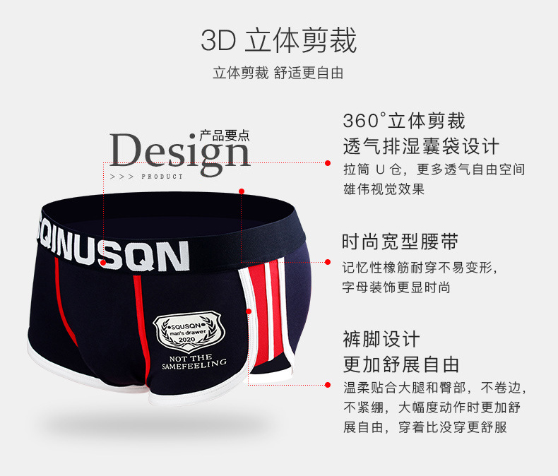 4條潮牌男士內褲韓版青年平角褲透氣純棉個性潮流褲衩男四角褲頭