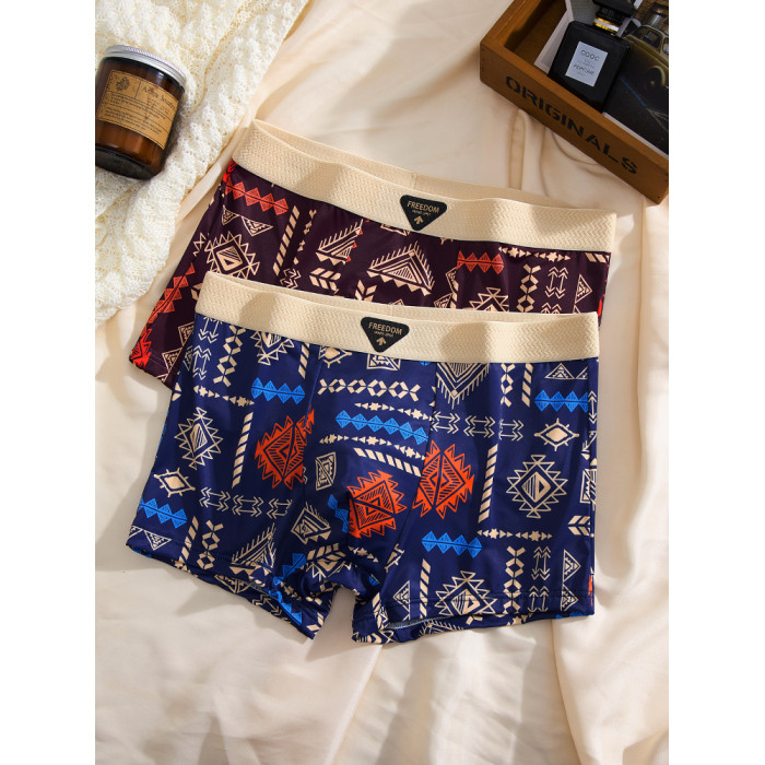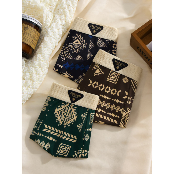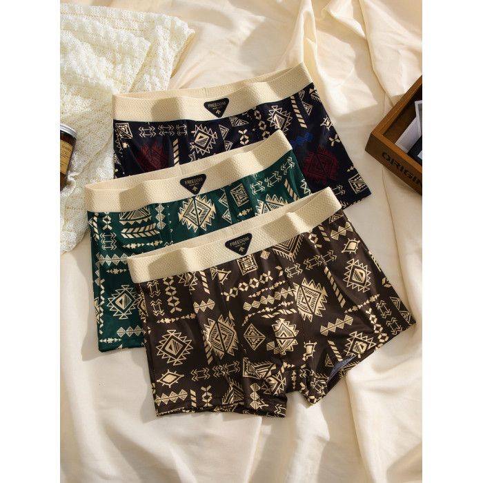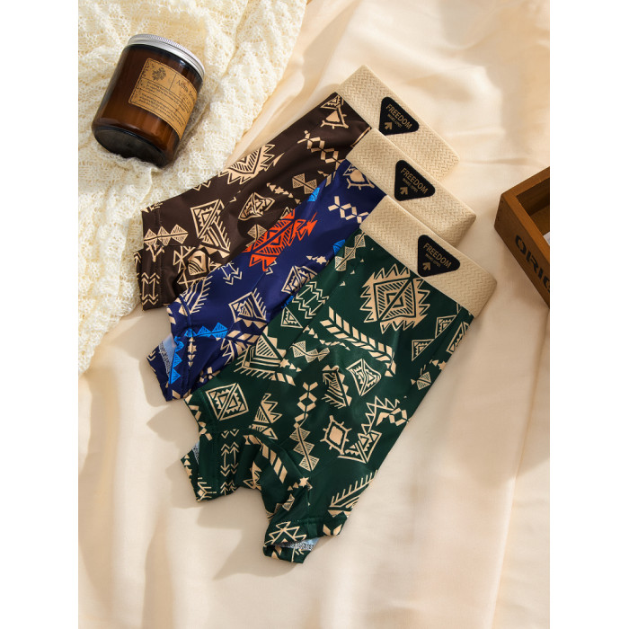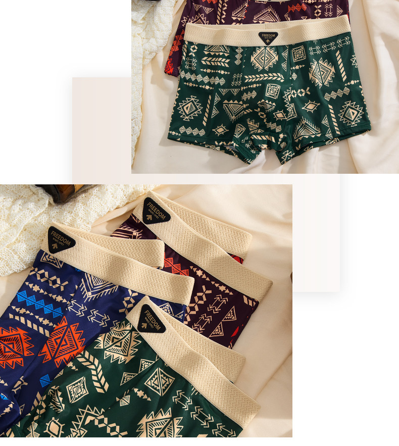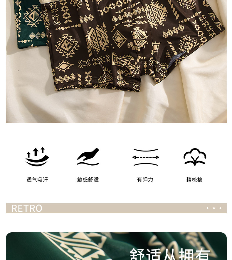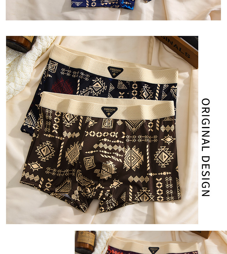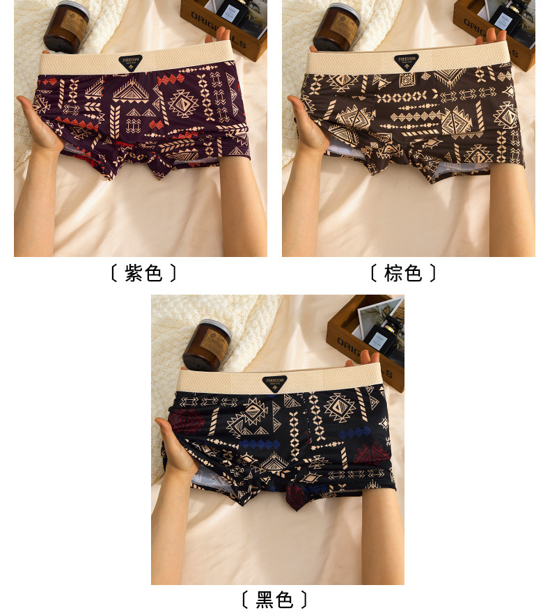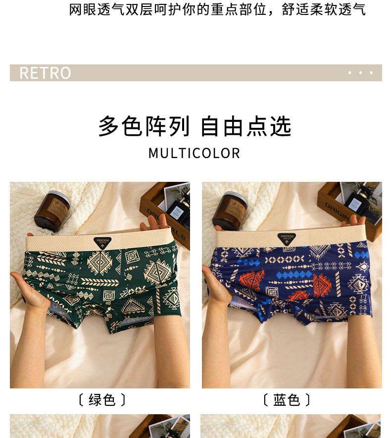 【爆款】美式復古男士內褲冰絲夏季男生平角褲中腰四角褲高彈透氣