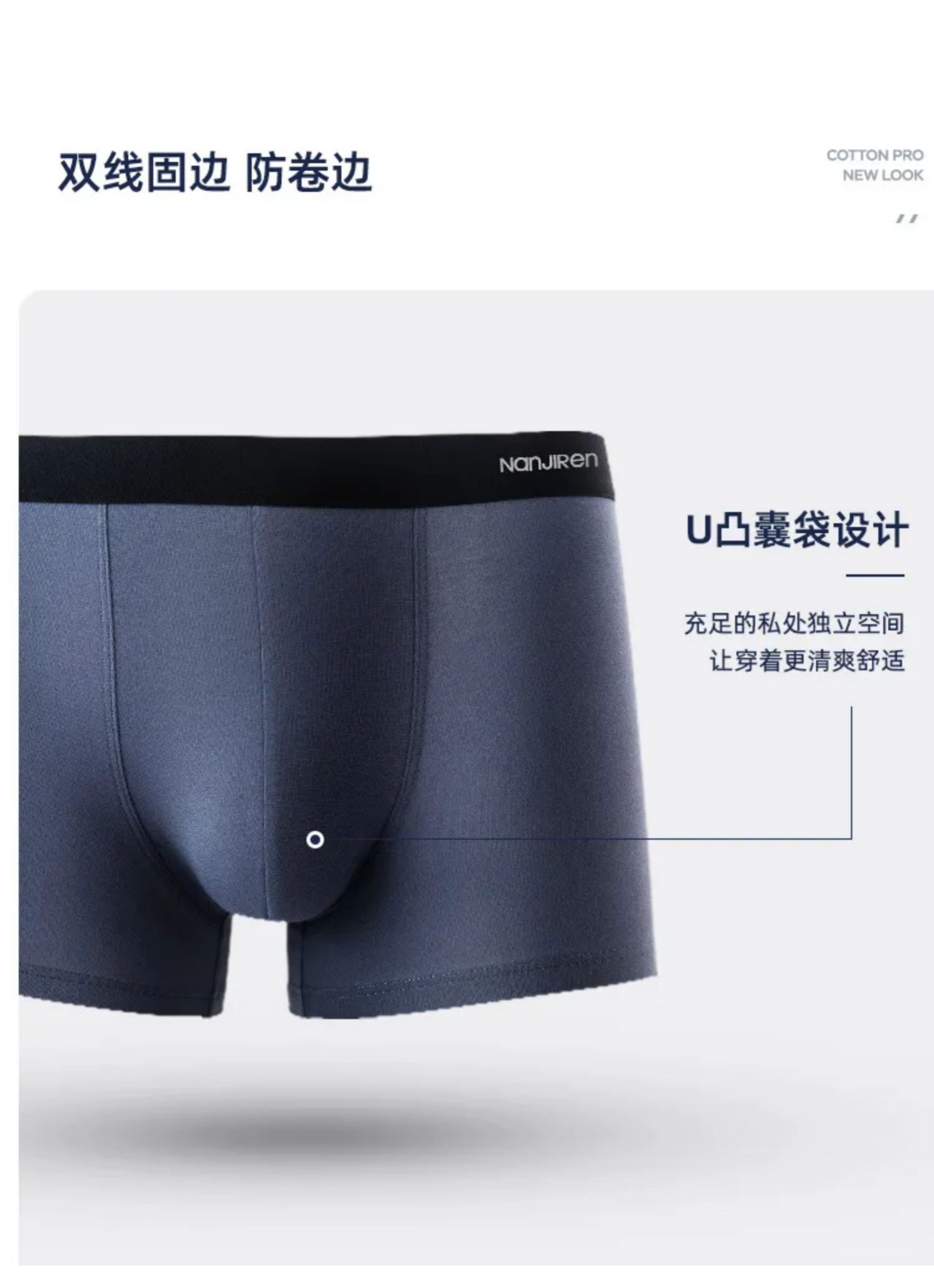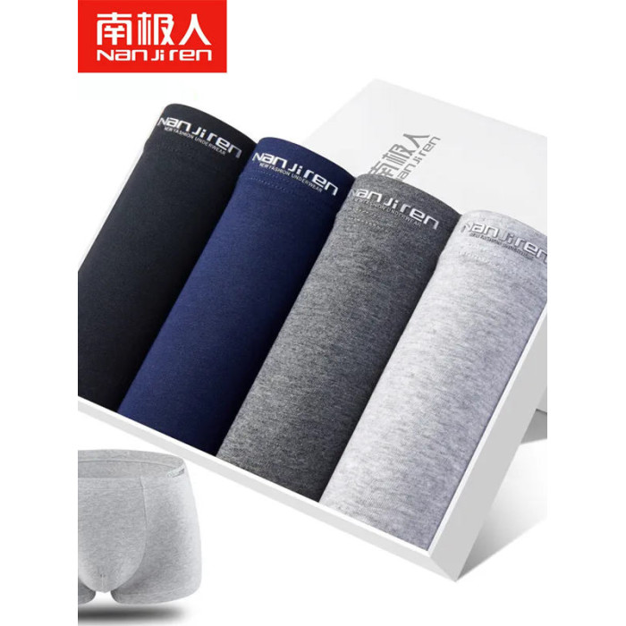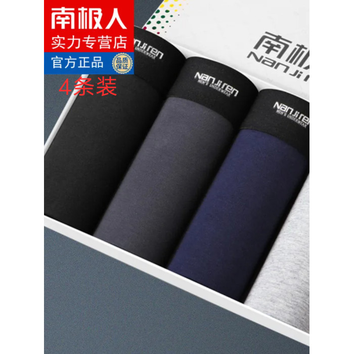 4條內褲南極人男士純棉內褲抗菌大碼禮盒裝平角全棉純色透氣短褲