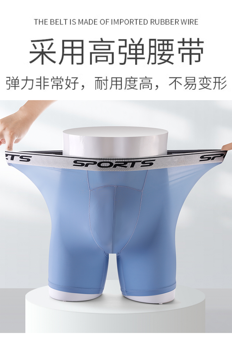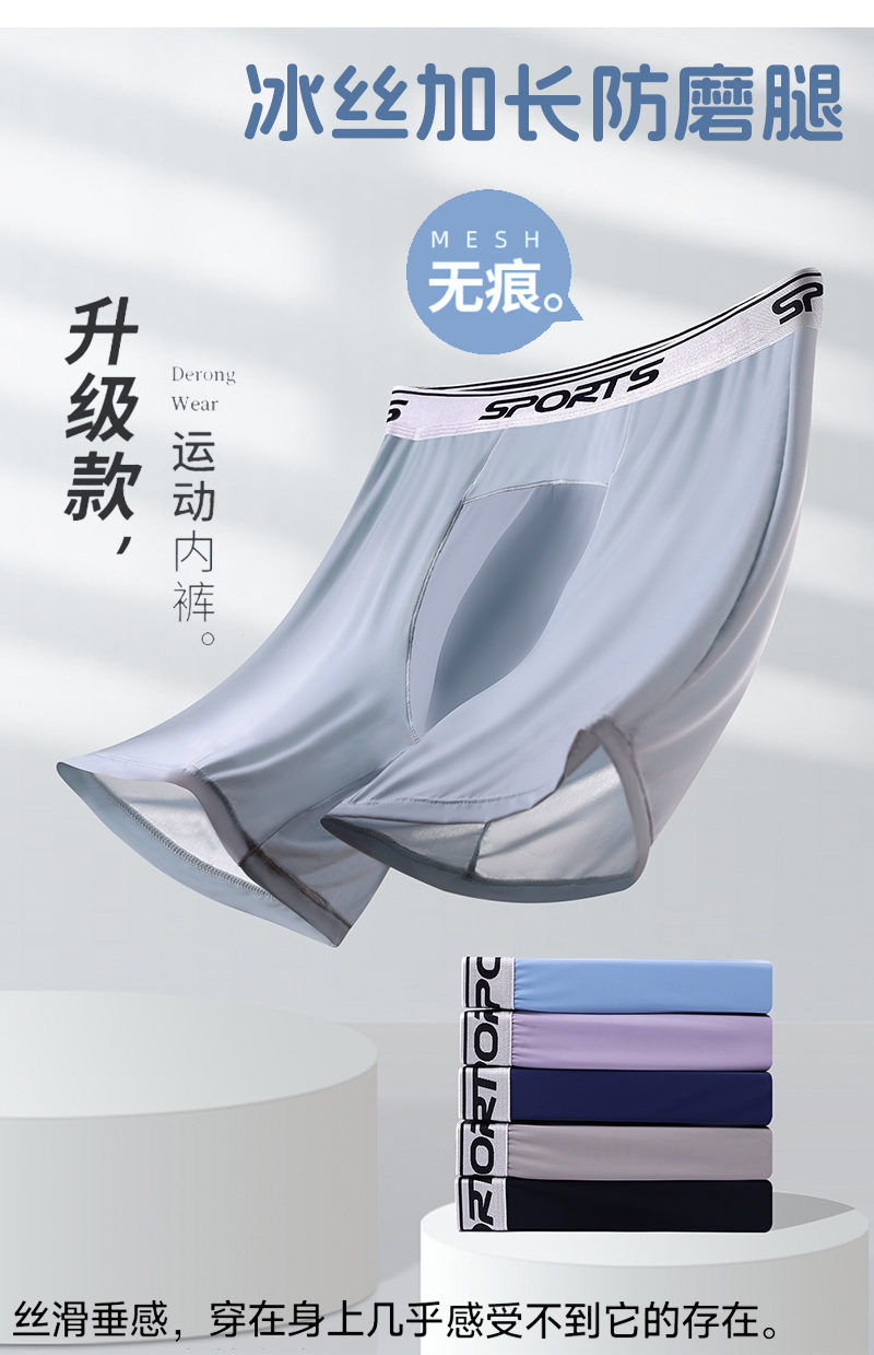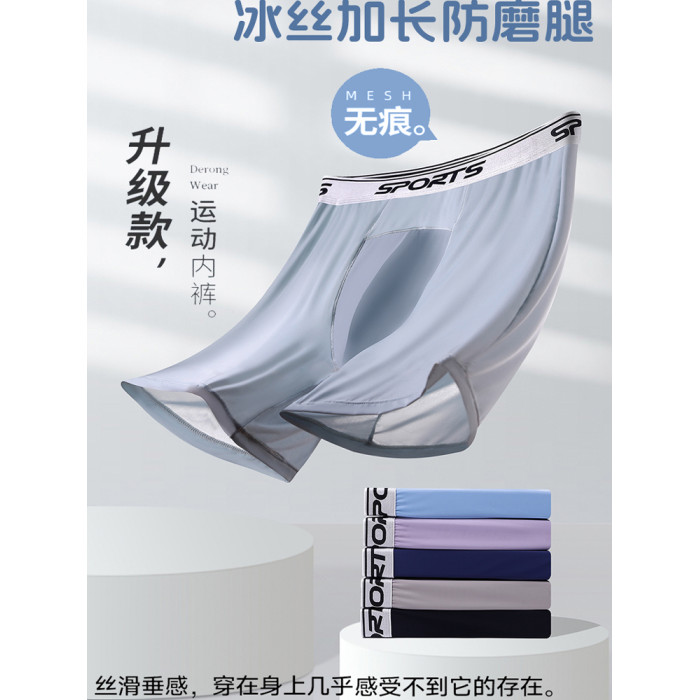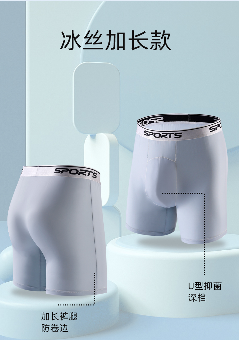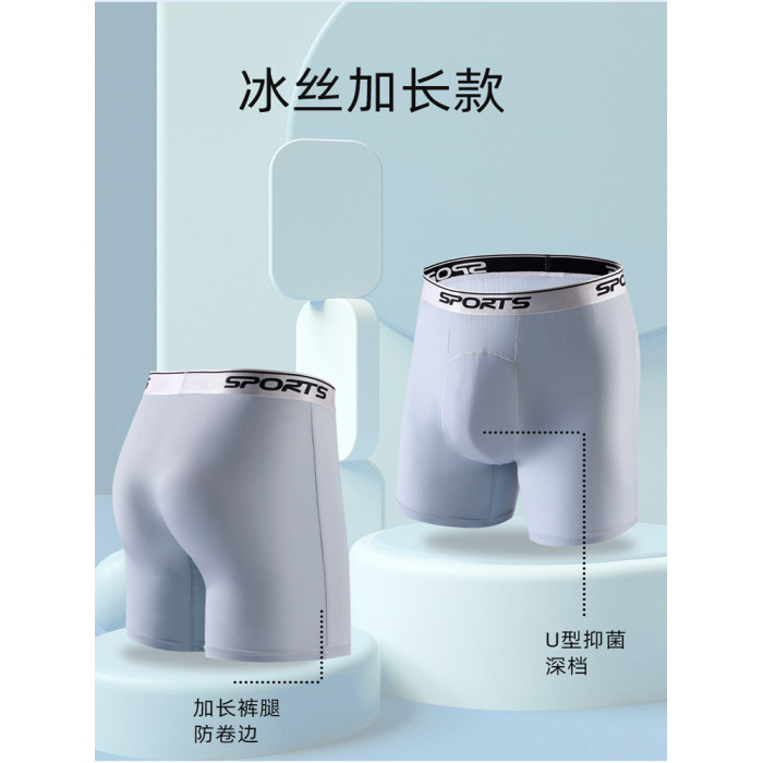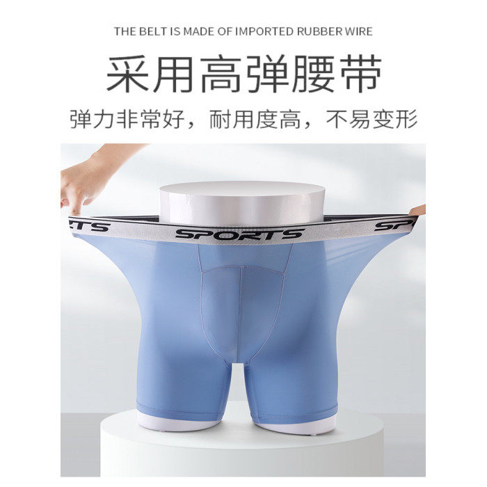 男士內褲冰絲高腰深襠運動加長褲腳防磨腿四角內褲加肥大碼平角褲