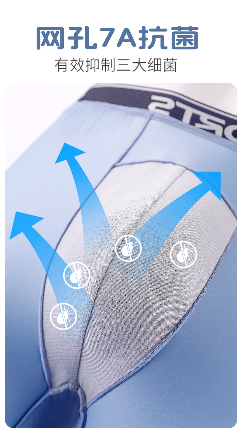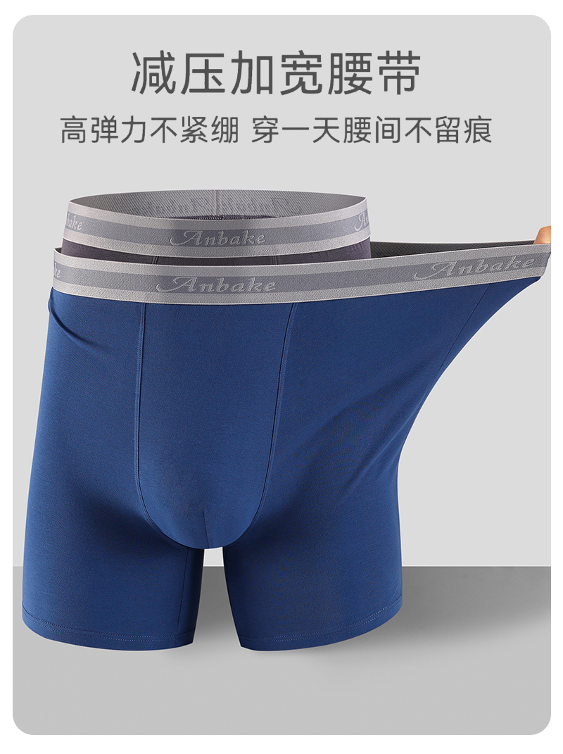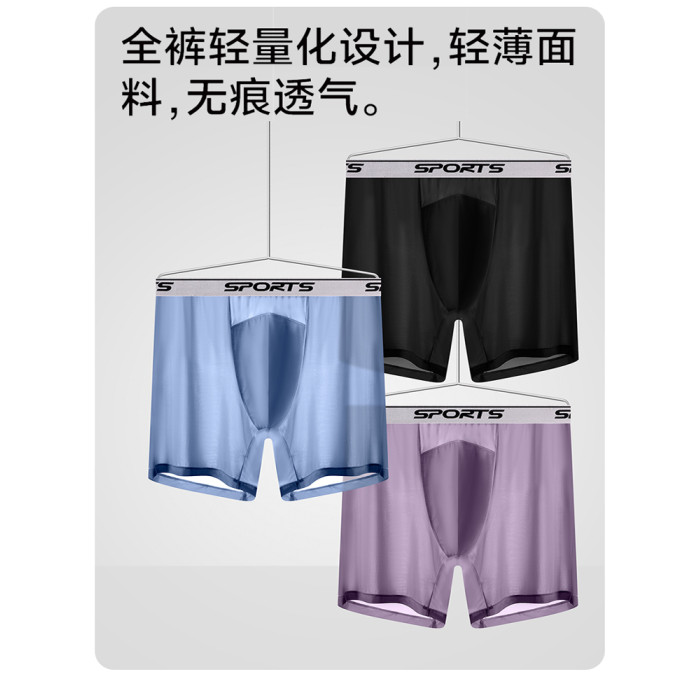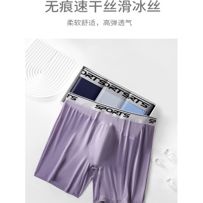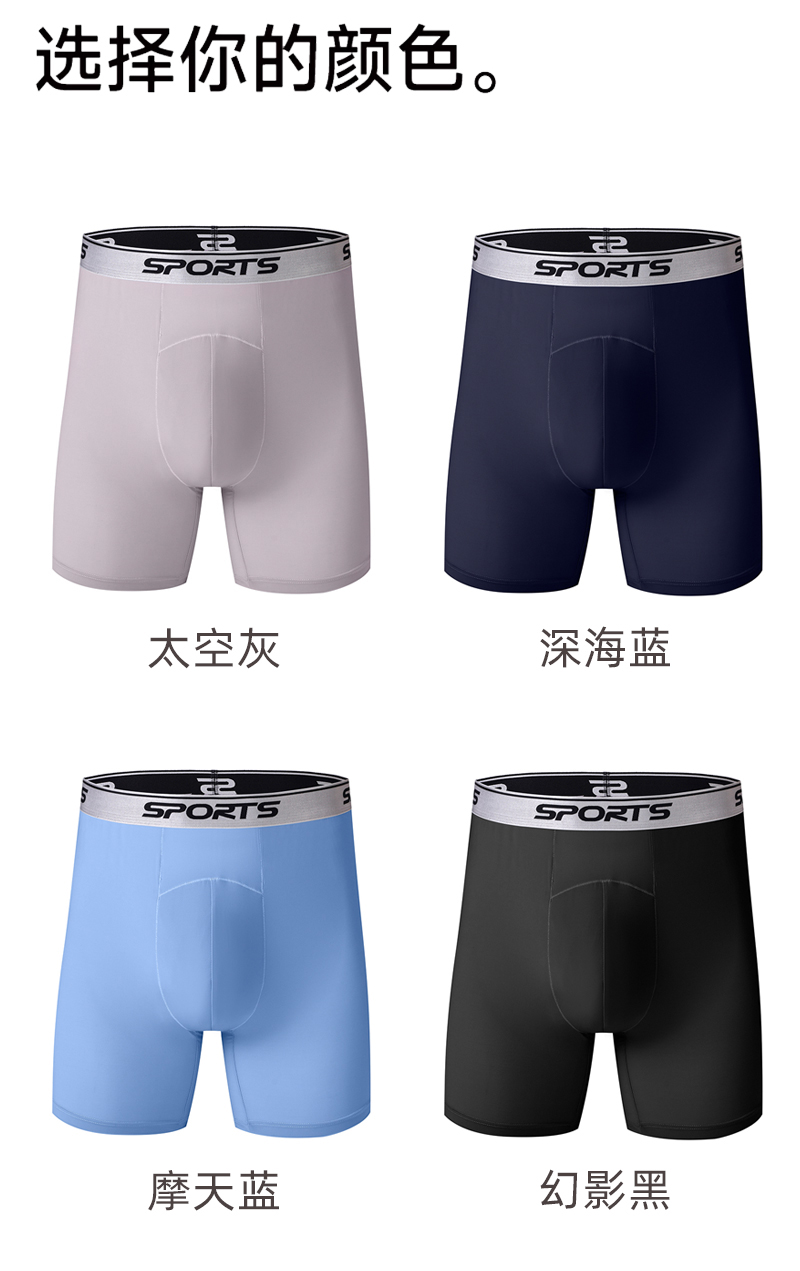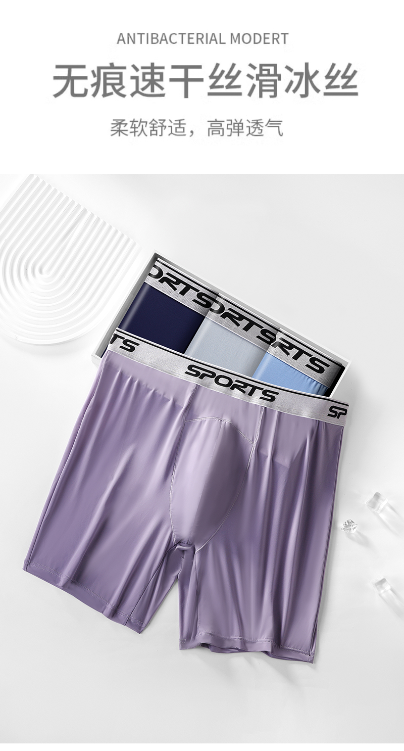 男士內褲冰絲高腰深襠運動加長褲腳防磨腿四角內褲加肥大碼平角褲