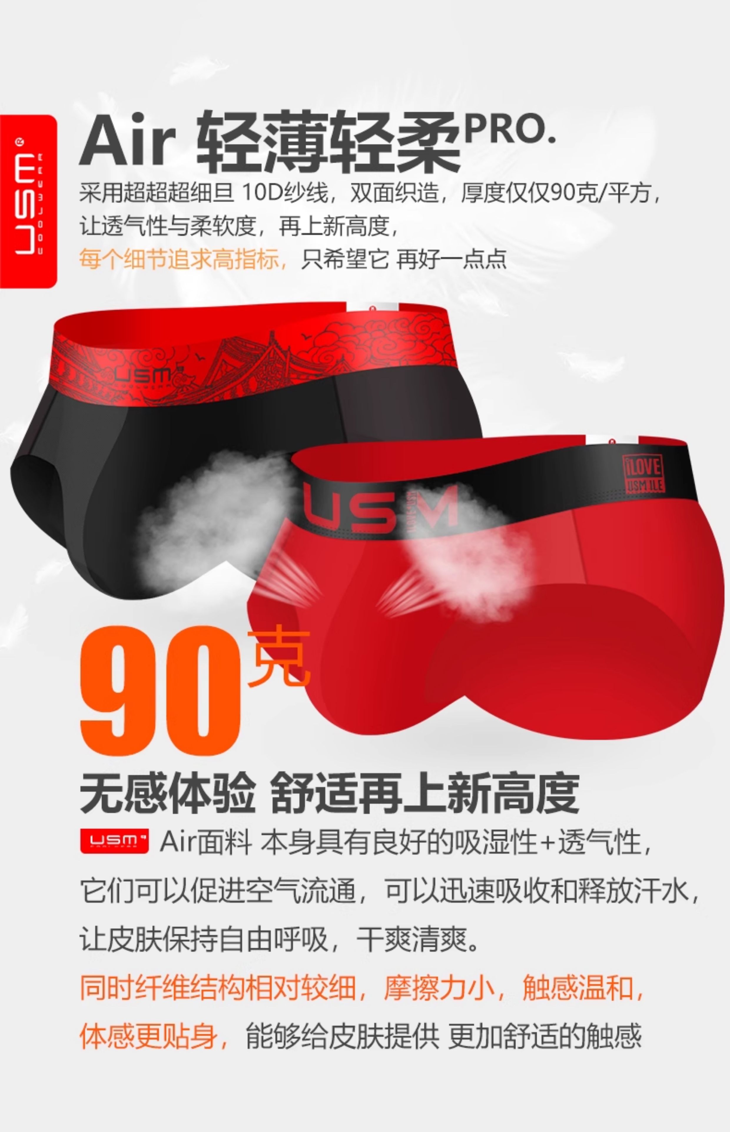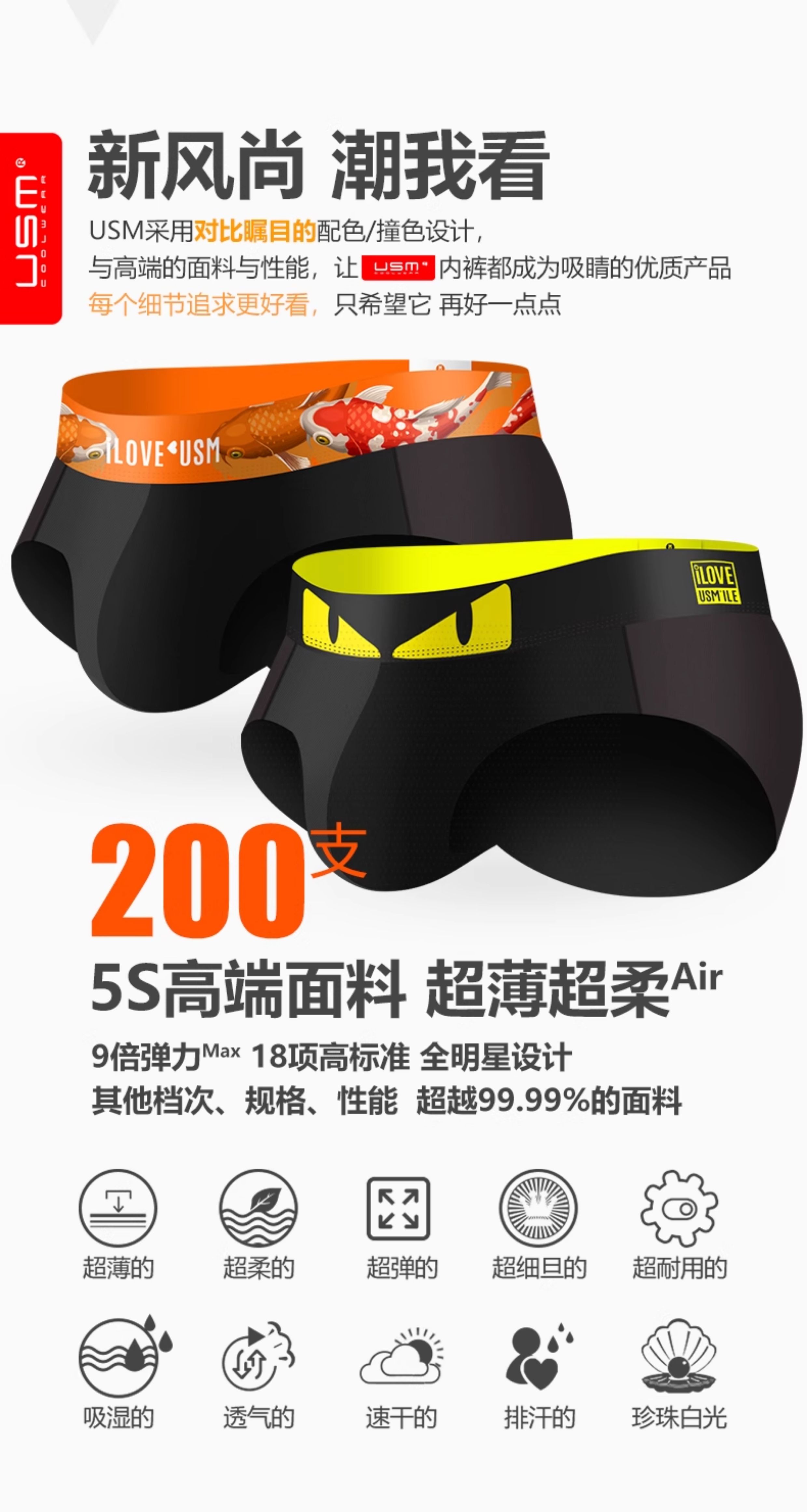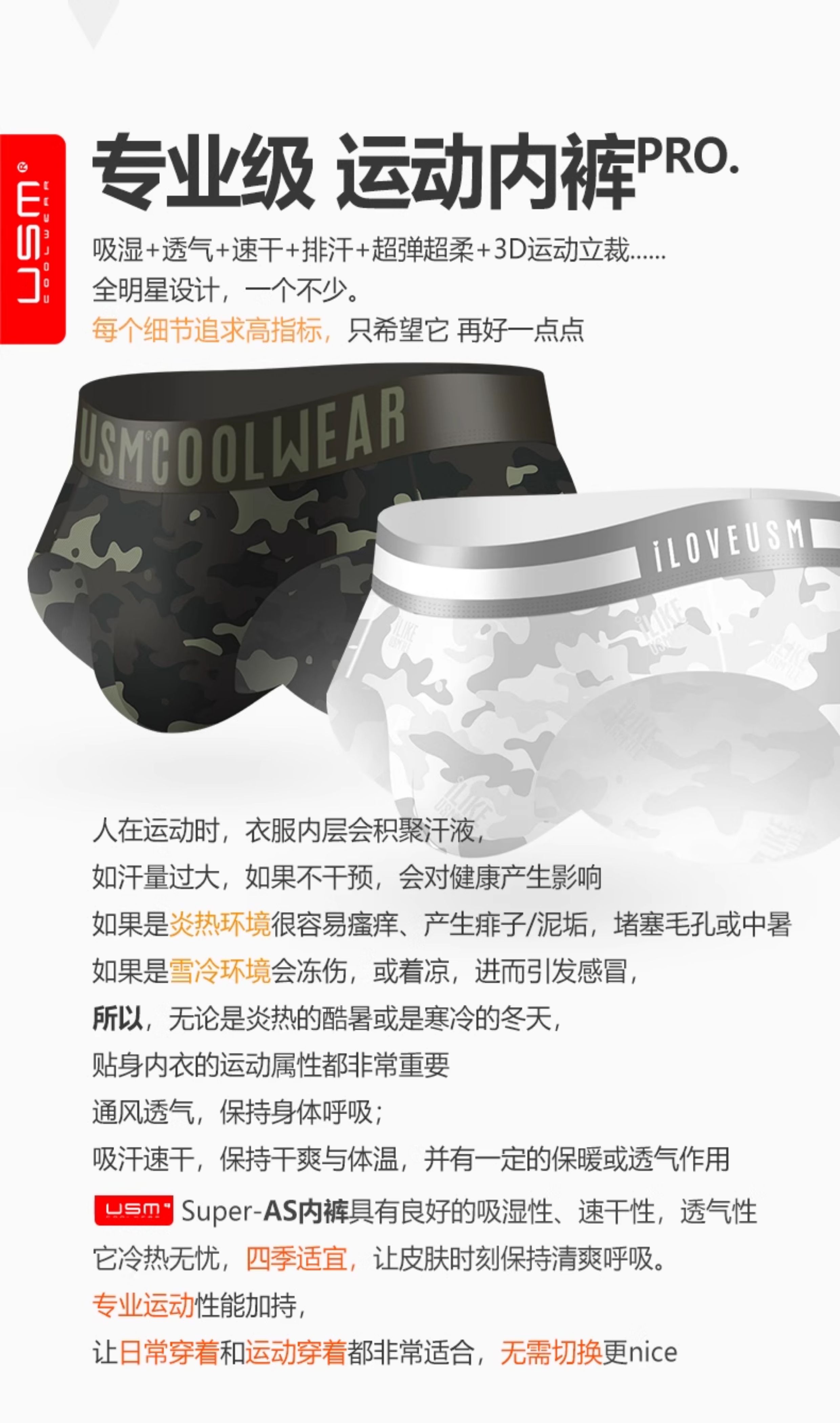 USM新品200支男士內褲三角褲 吸溼透氣速乾高彈 健身運動高級內褲