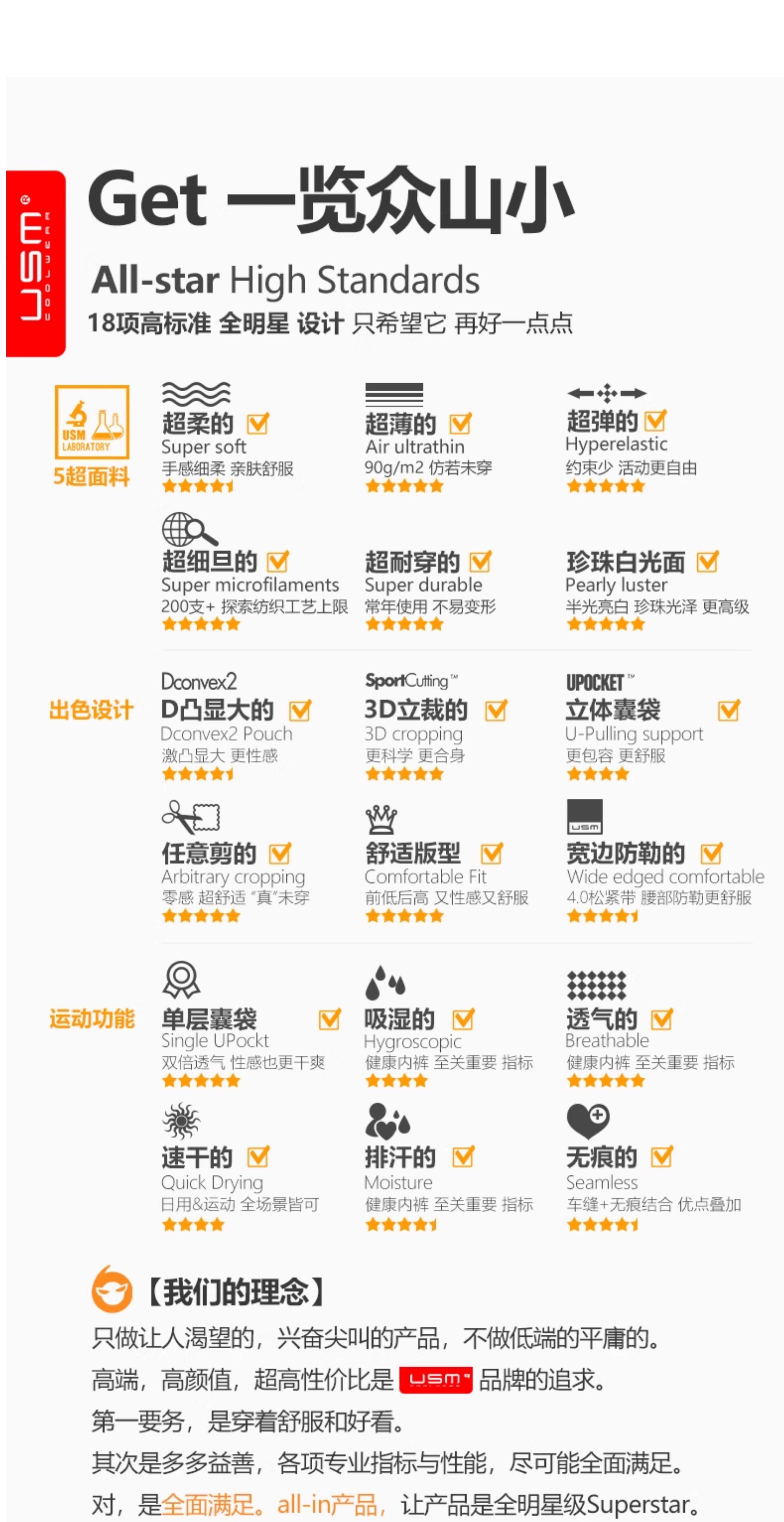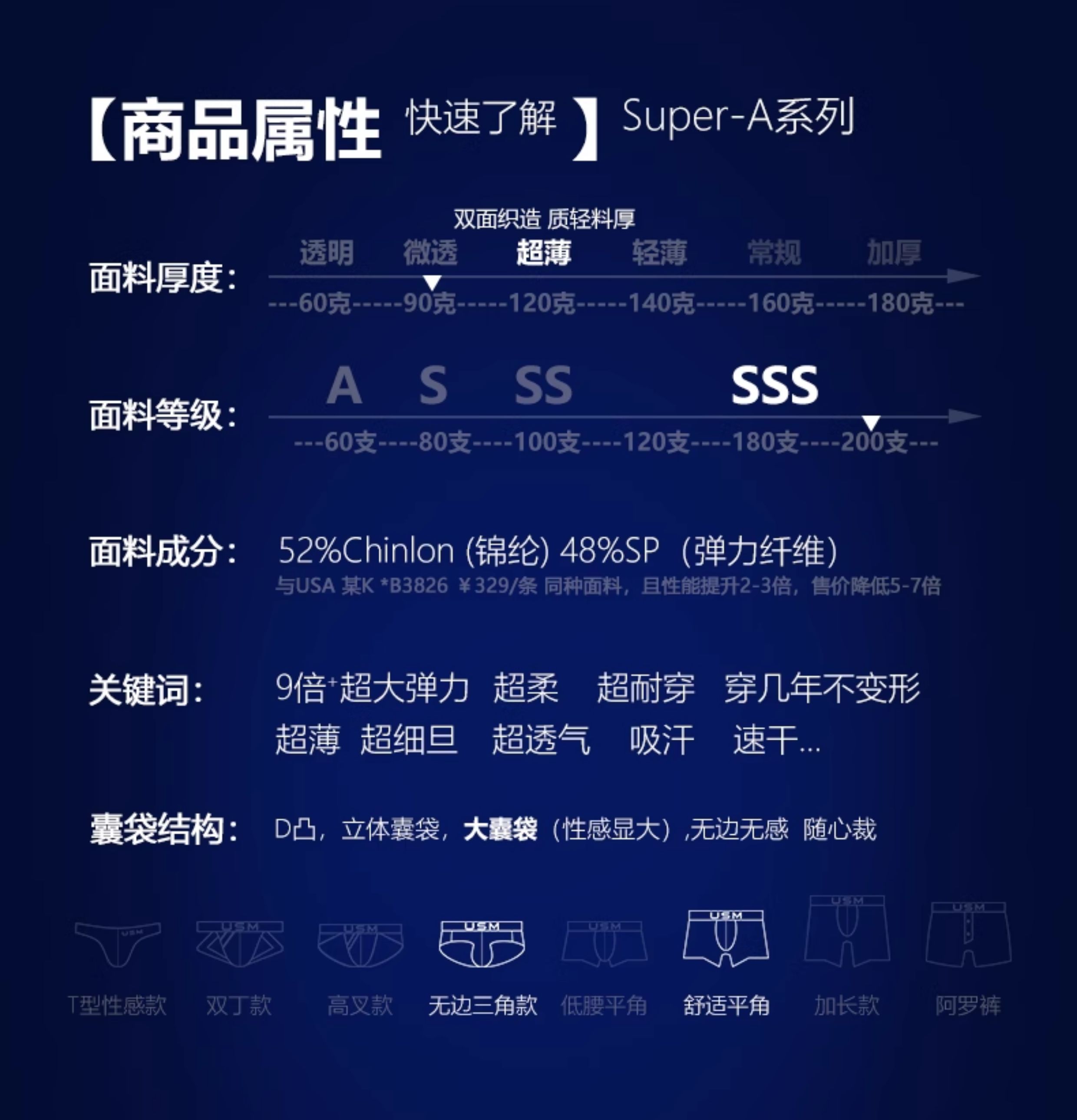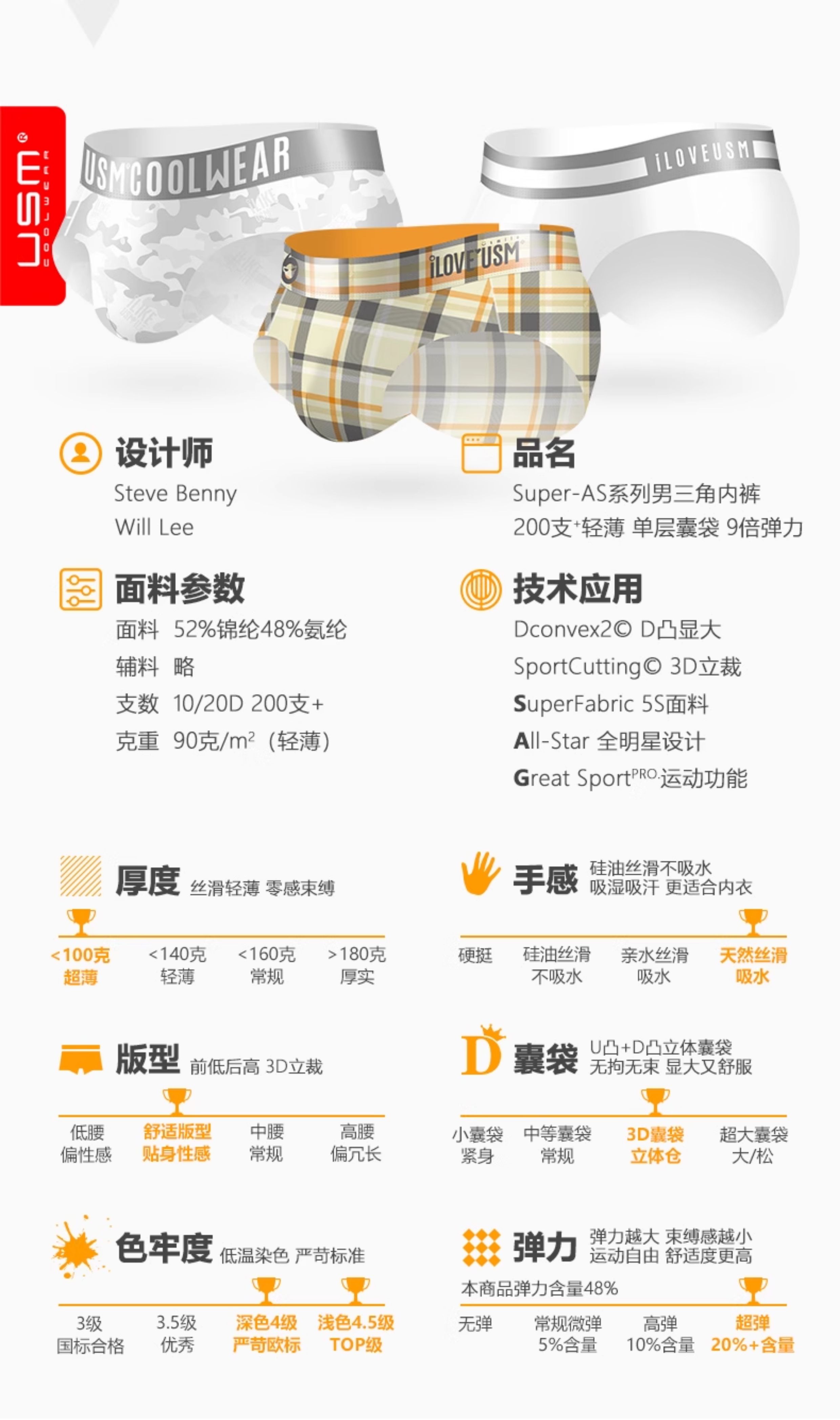 USM新品200支男士內褲三角褲 吸溼透氣速乾高彈 健身運動高級內褲
