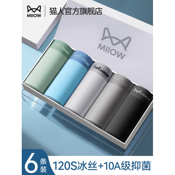貓人男士內褲男款冰絲無痕透氣四角短褲2025新款抗菌平角褲衩男生