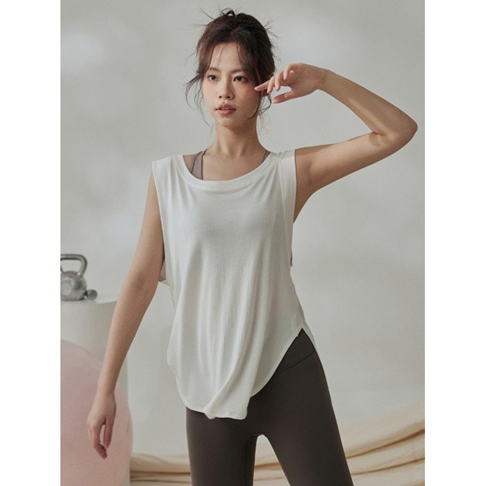 無袖跑步長款遮臀瑜珈T恤戶外寬松運動背心女顯瘦透氣健身訓練上