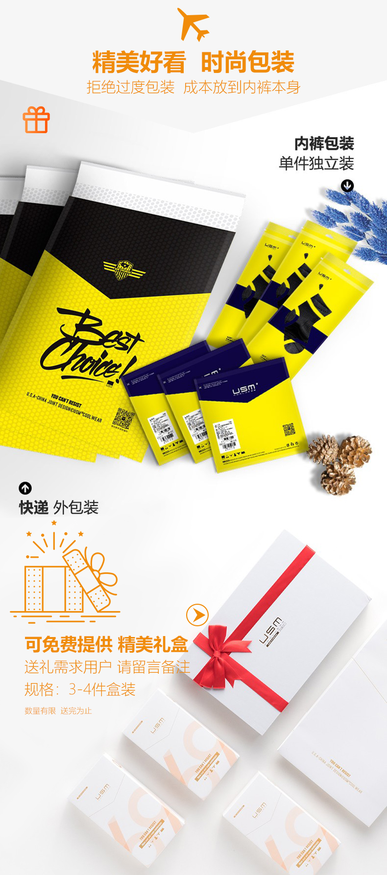 USM新品奢稀超柔男士內褲男三角褲前凸後翹性感內褲 個性時尚高級