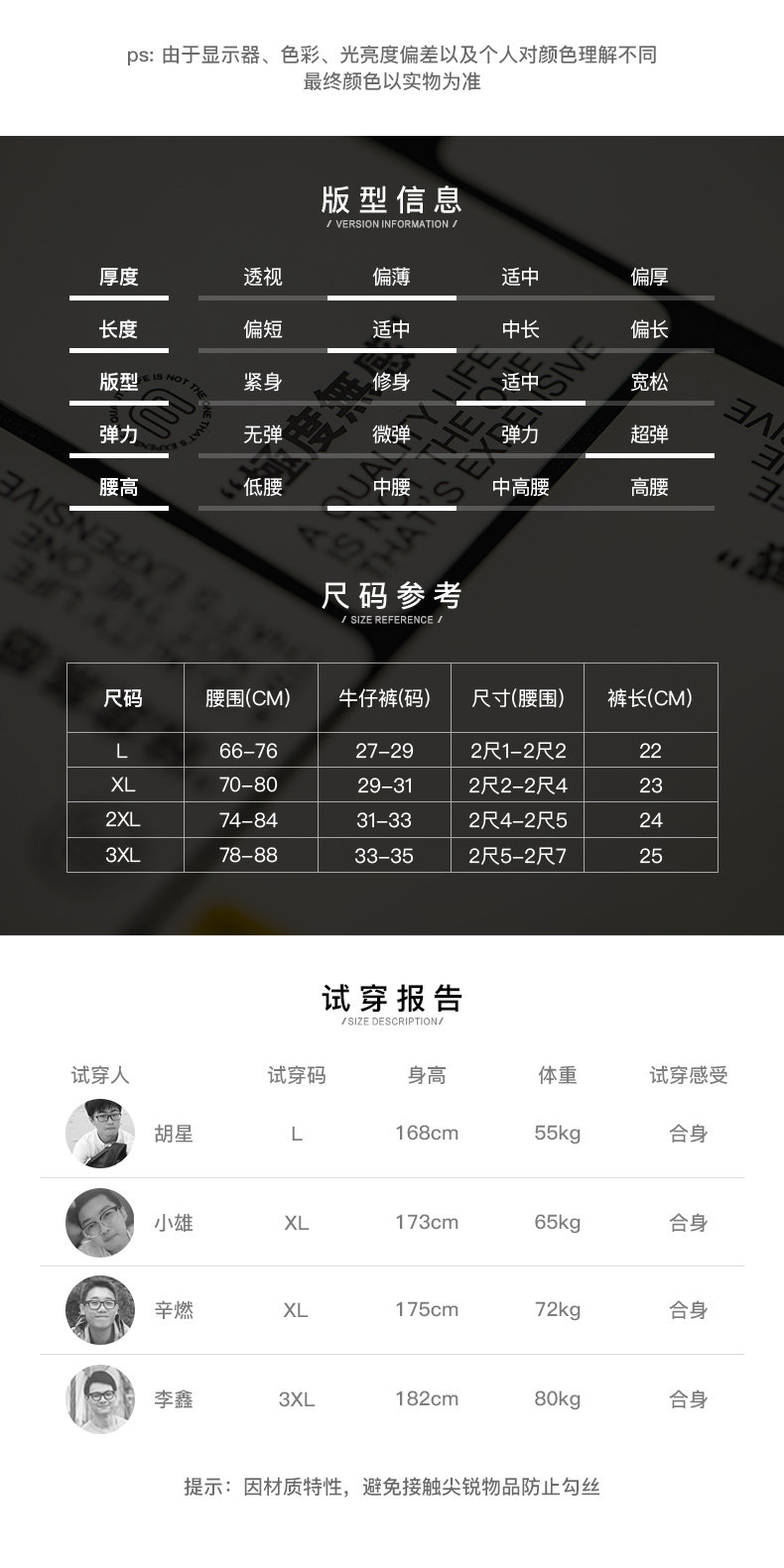 款式及尺寸: