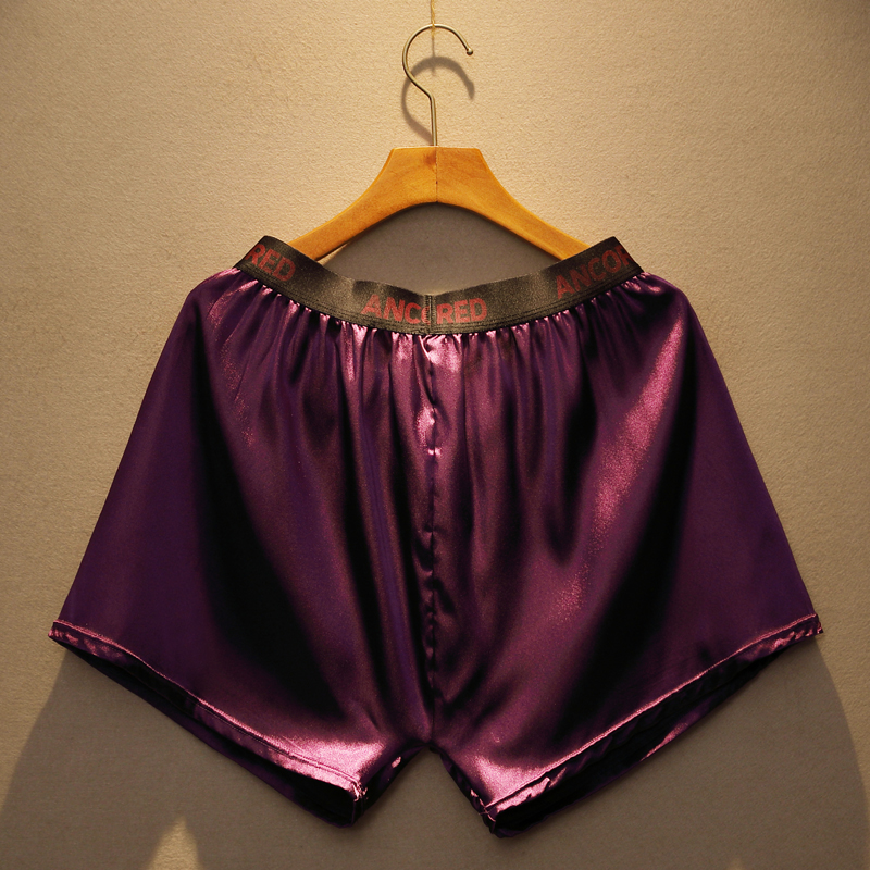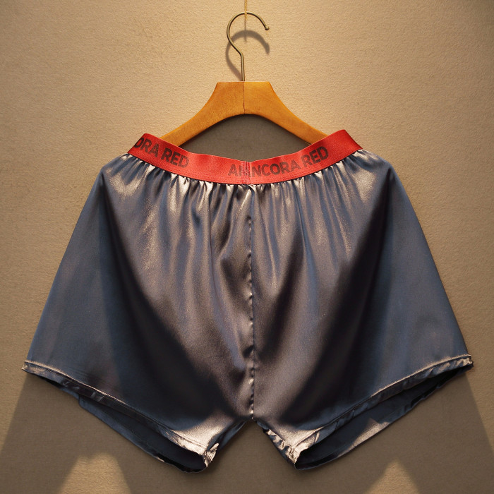 3條裝新款純色男士阿羅褲冰絲四角內褲居家休閒三分短褲寬松睡褲
