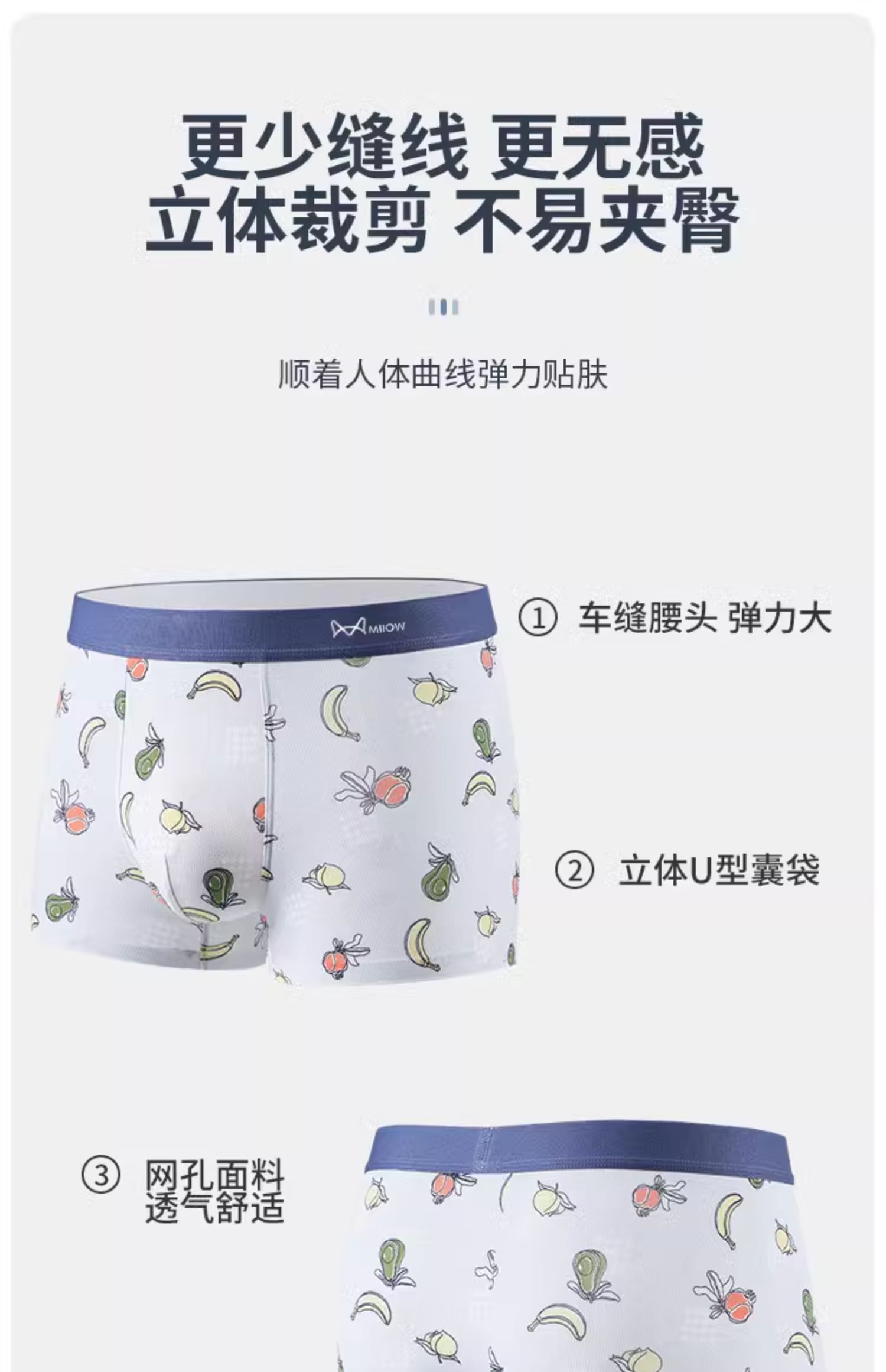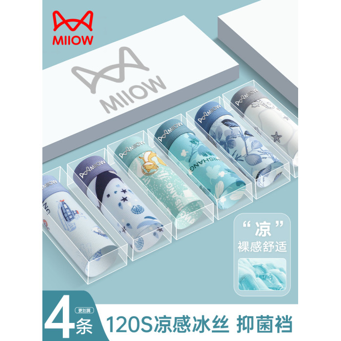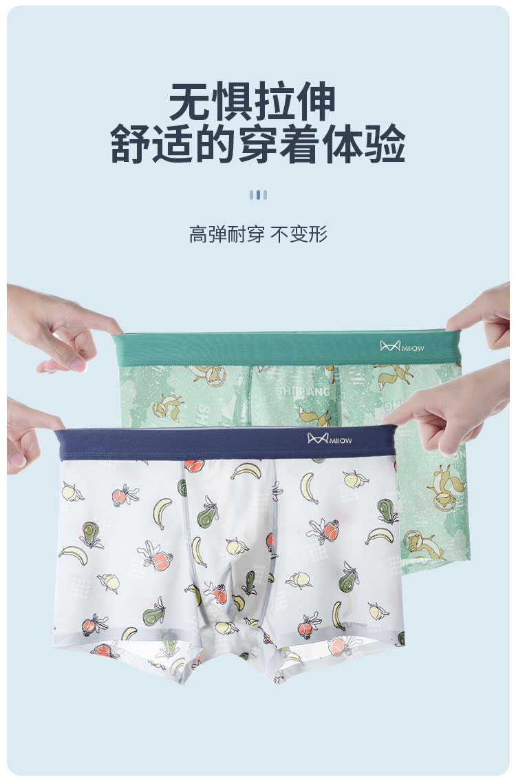 貓人男士冰絲內褲2025新款夏季薄款男生青少年內褲男式透氣平角褲
