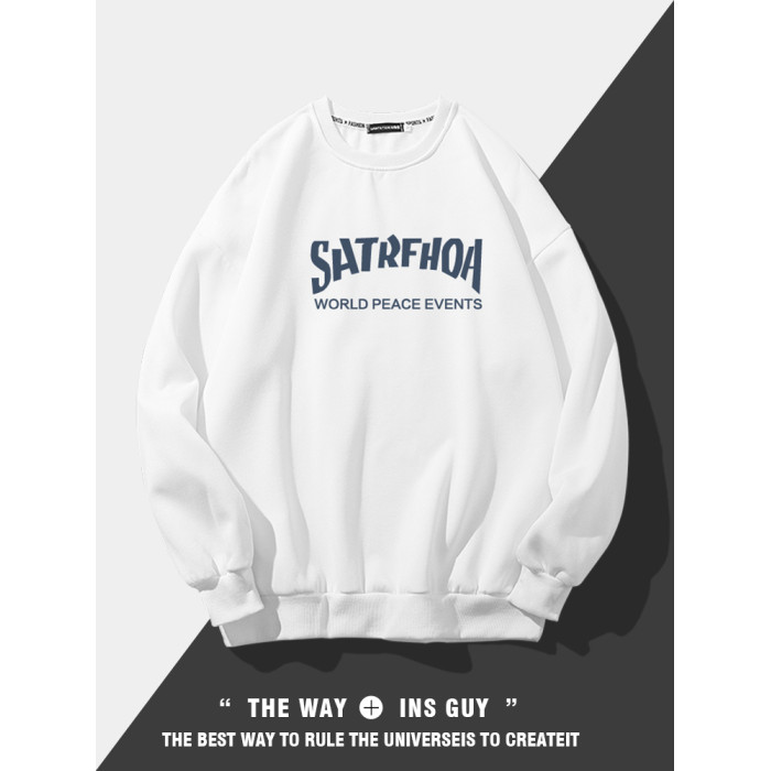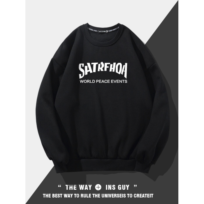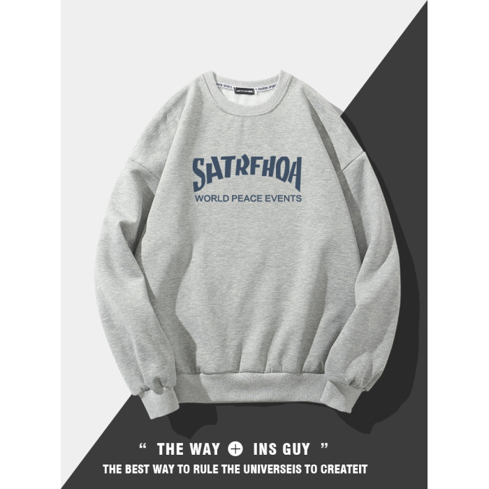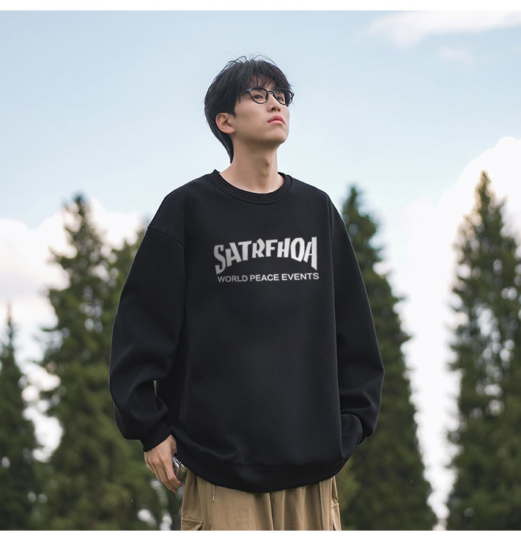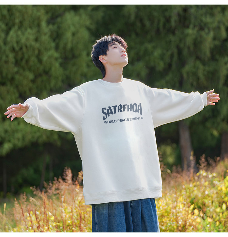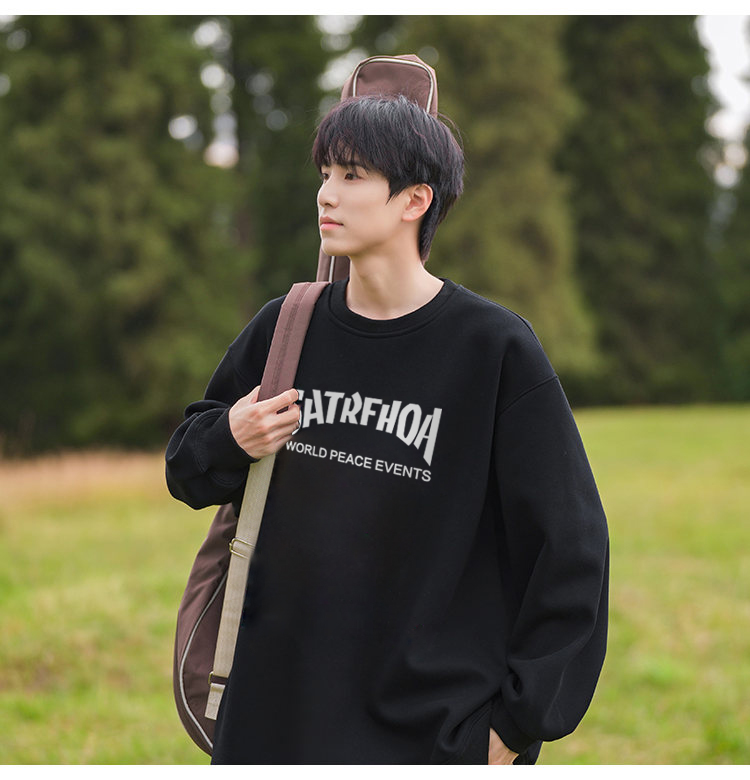 美式潮牌原創衛衣男圓領無帽寬松百搭春秋款加絨長袖oversize內搭