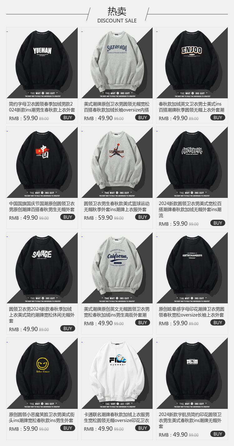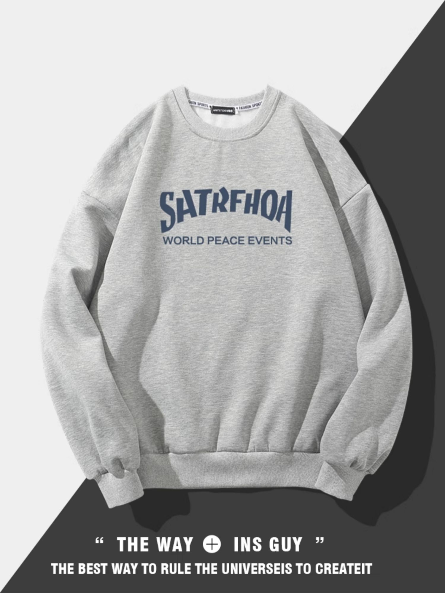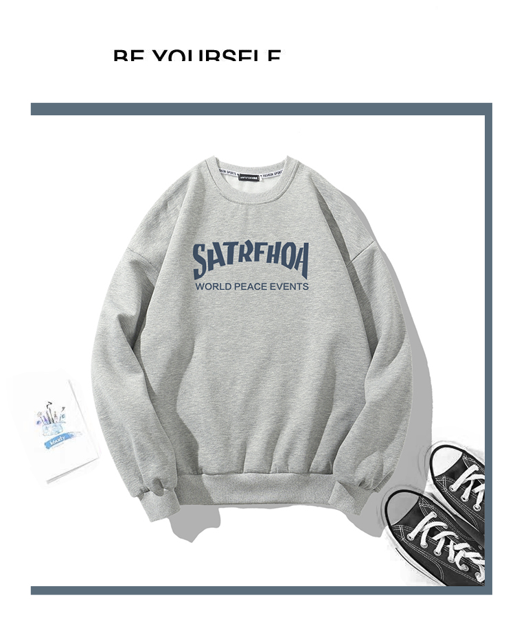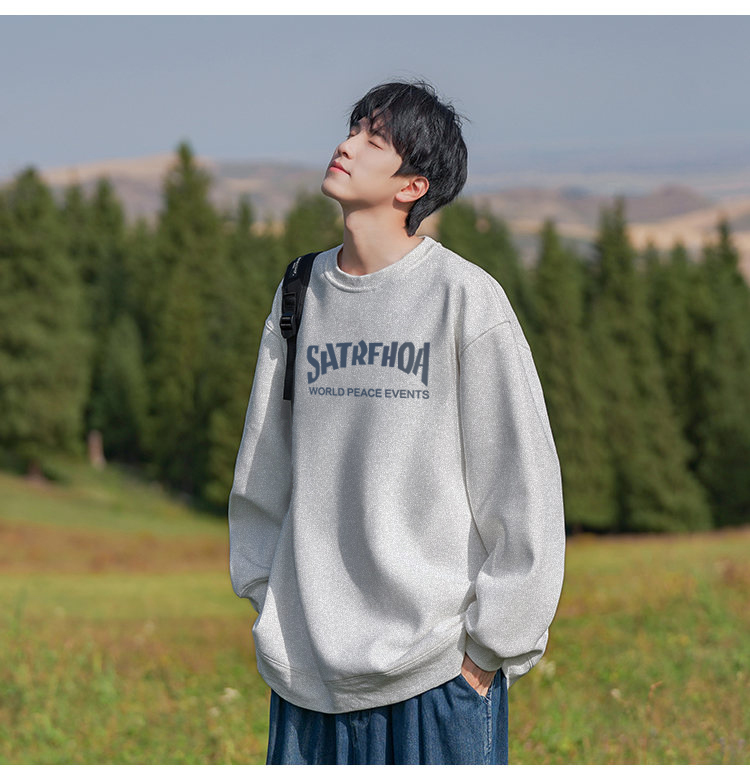 美式潮牌原創衛衣男圓領無帽寬松百搭春秋款加絨長袖oversize內搭