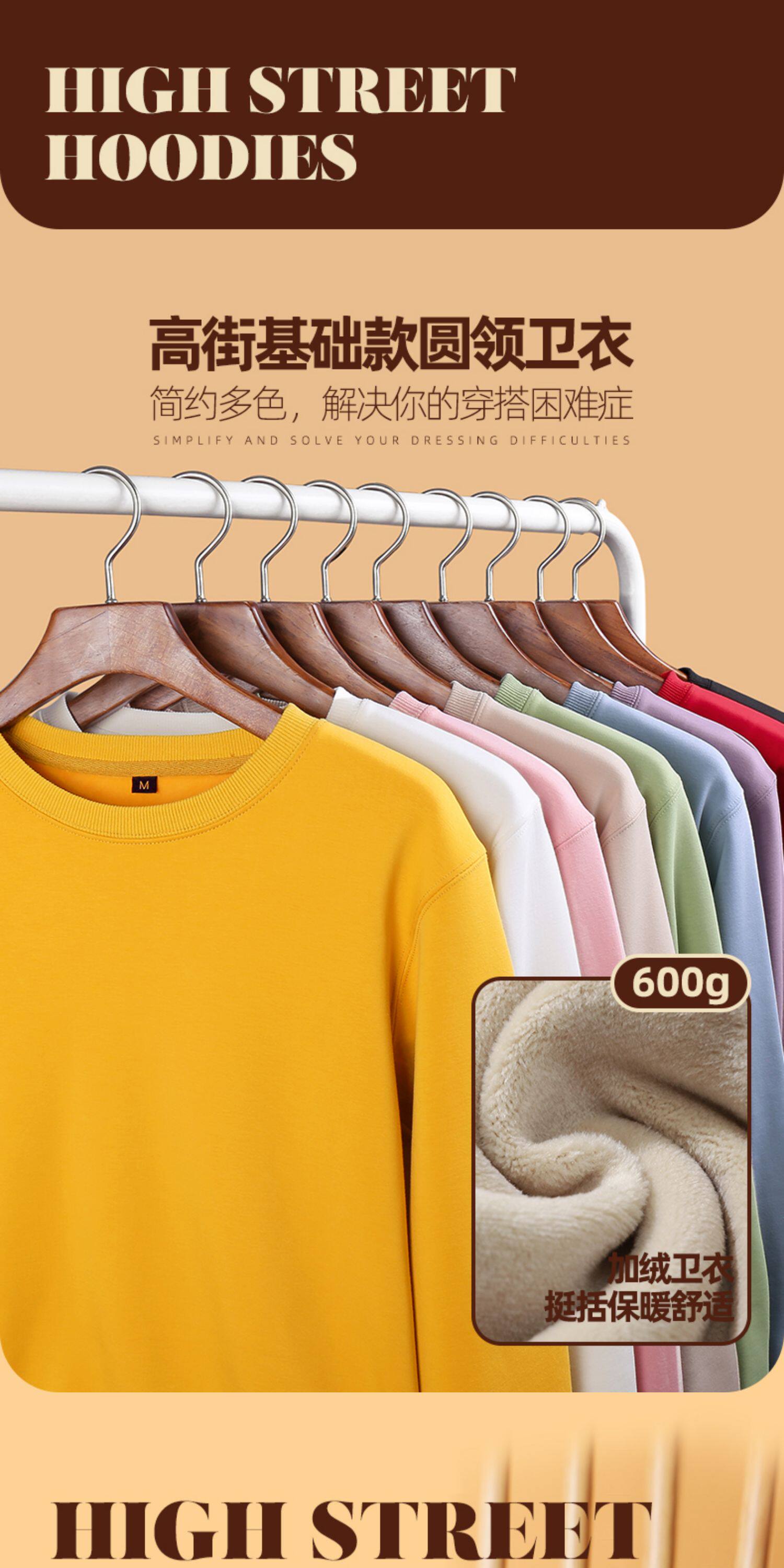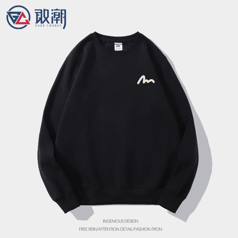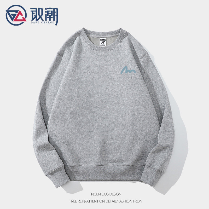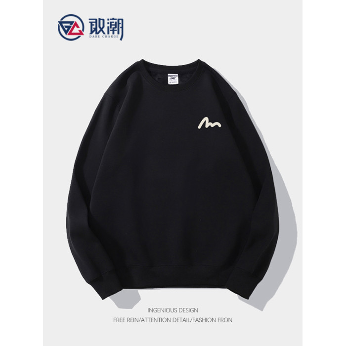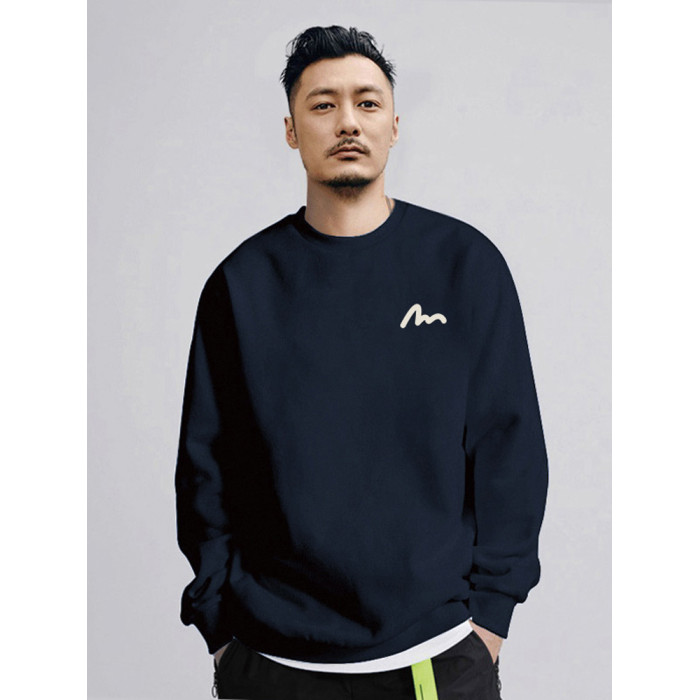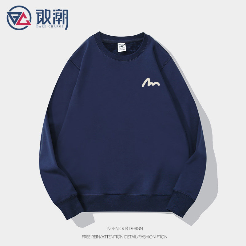 秋冬衛衣男士美式潮牌圓領上衣男冬季新款藏藍色寬松男裝加絨衣服