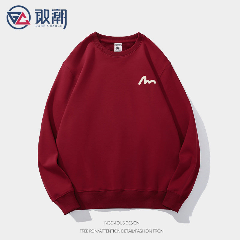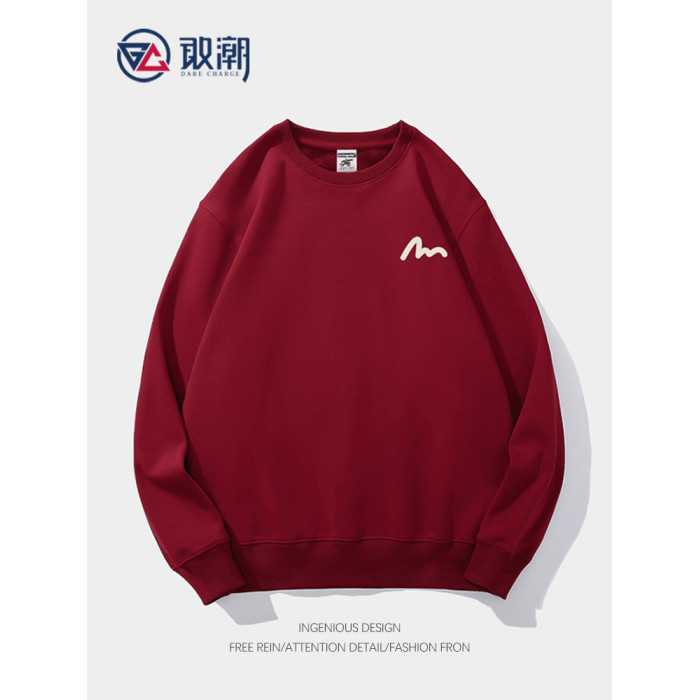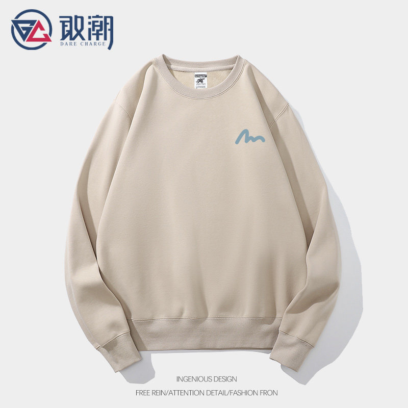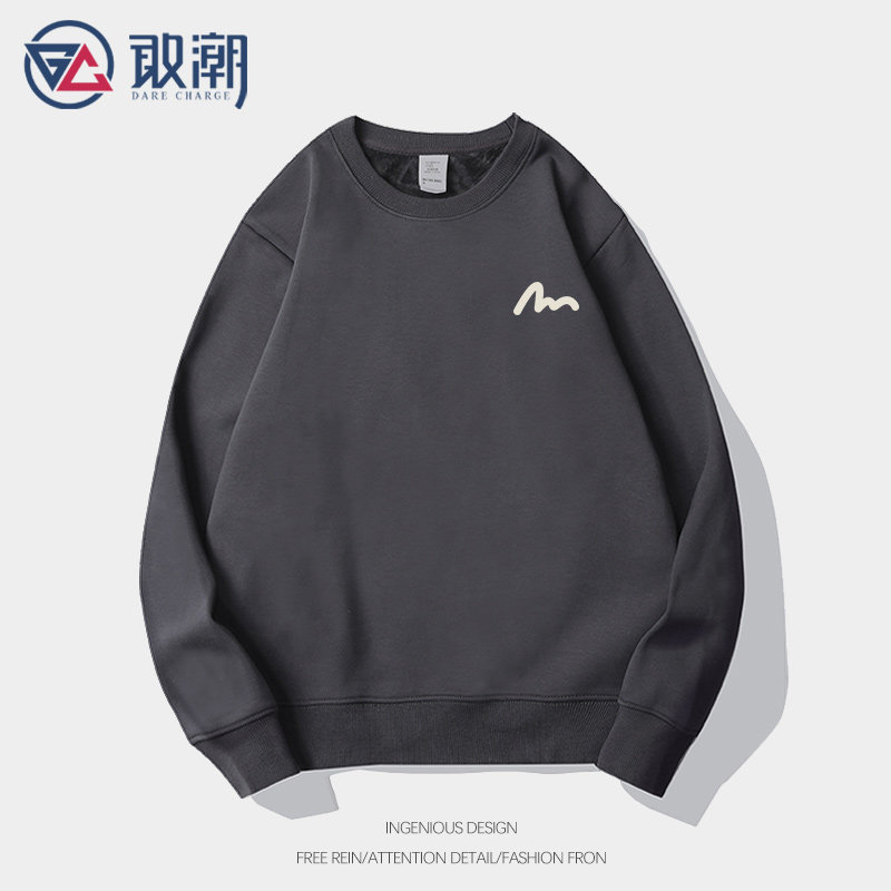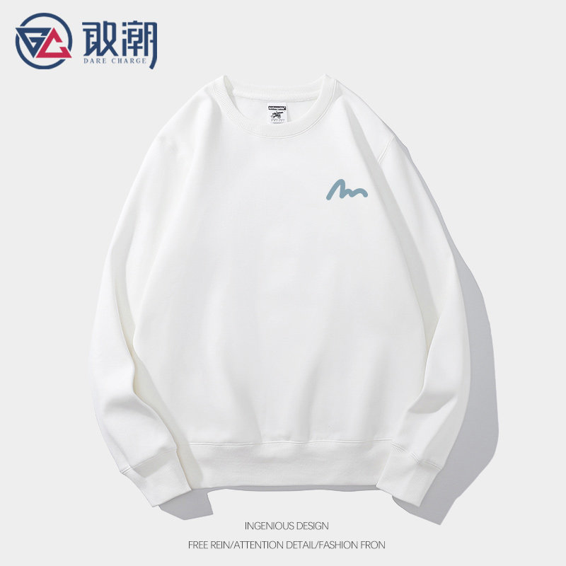 秋冬衛衣男士美式潮牌圓領上衣男冬季新款藏藍色寬松男裝加絨衣服