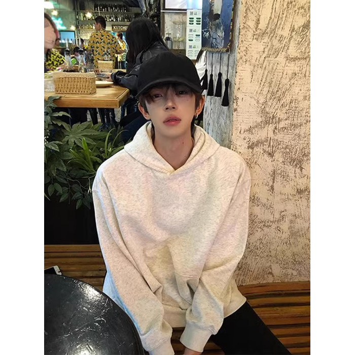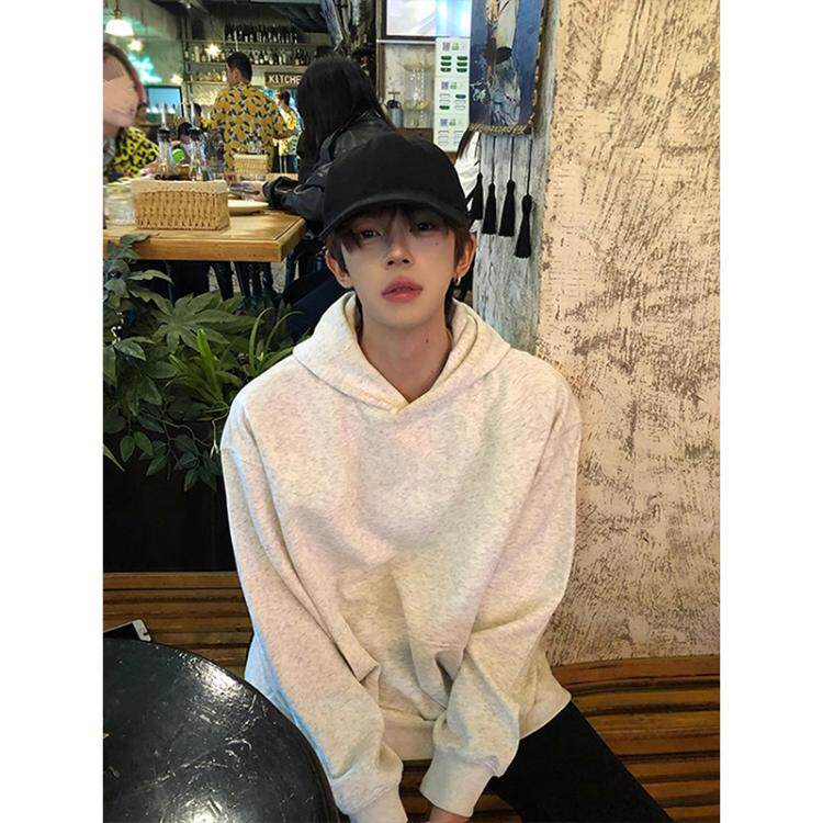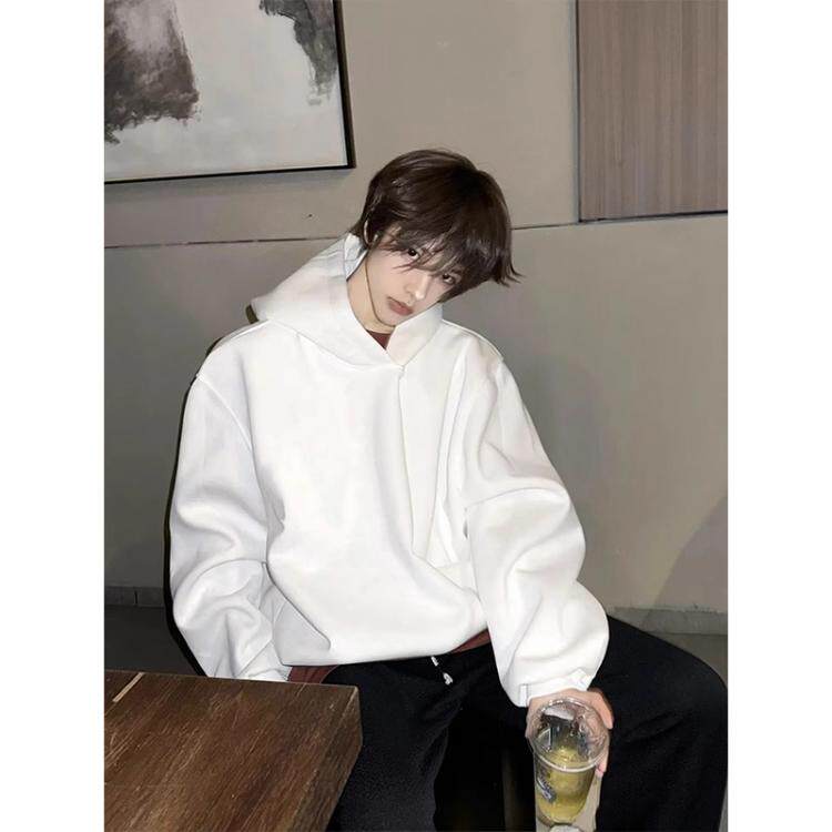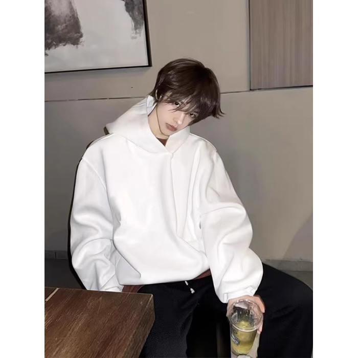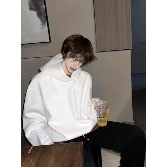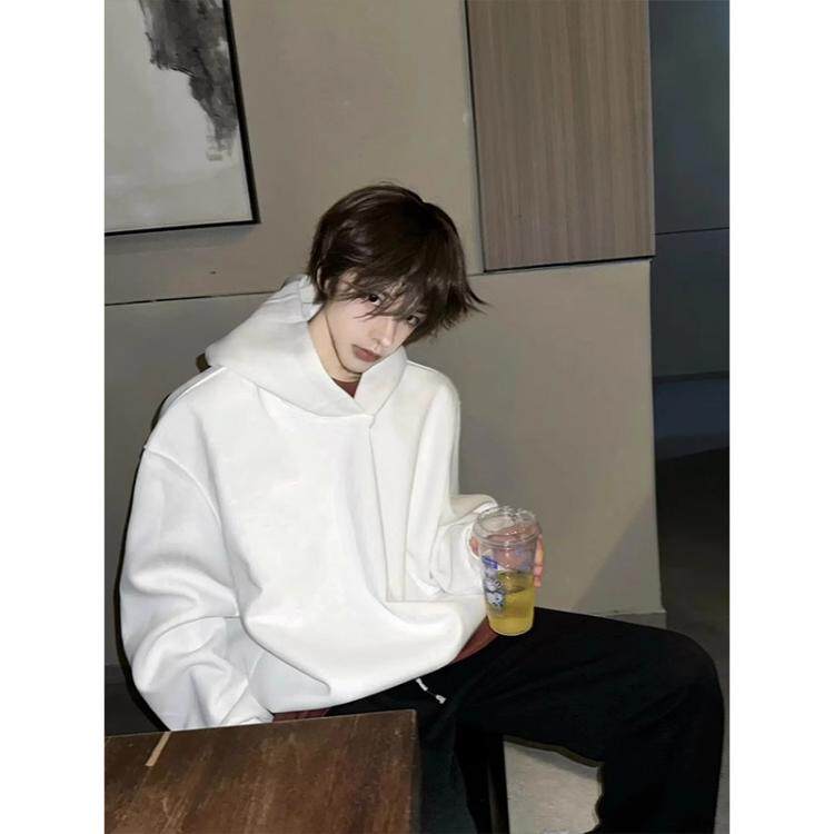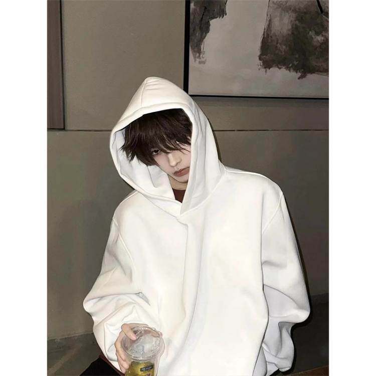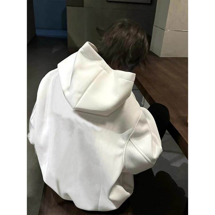 500g重磅白色連帽衛衣男款春秋美式cleanfit潮牌百搭套頭情侶外套