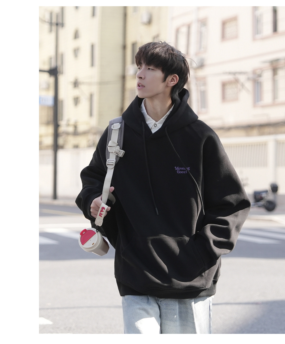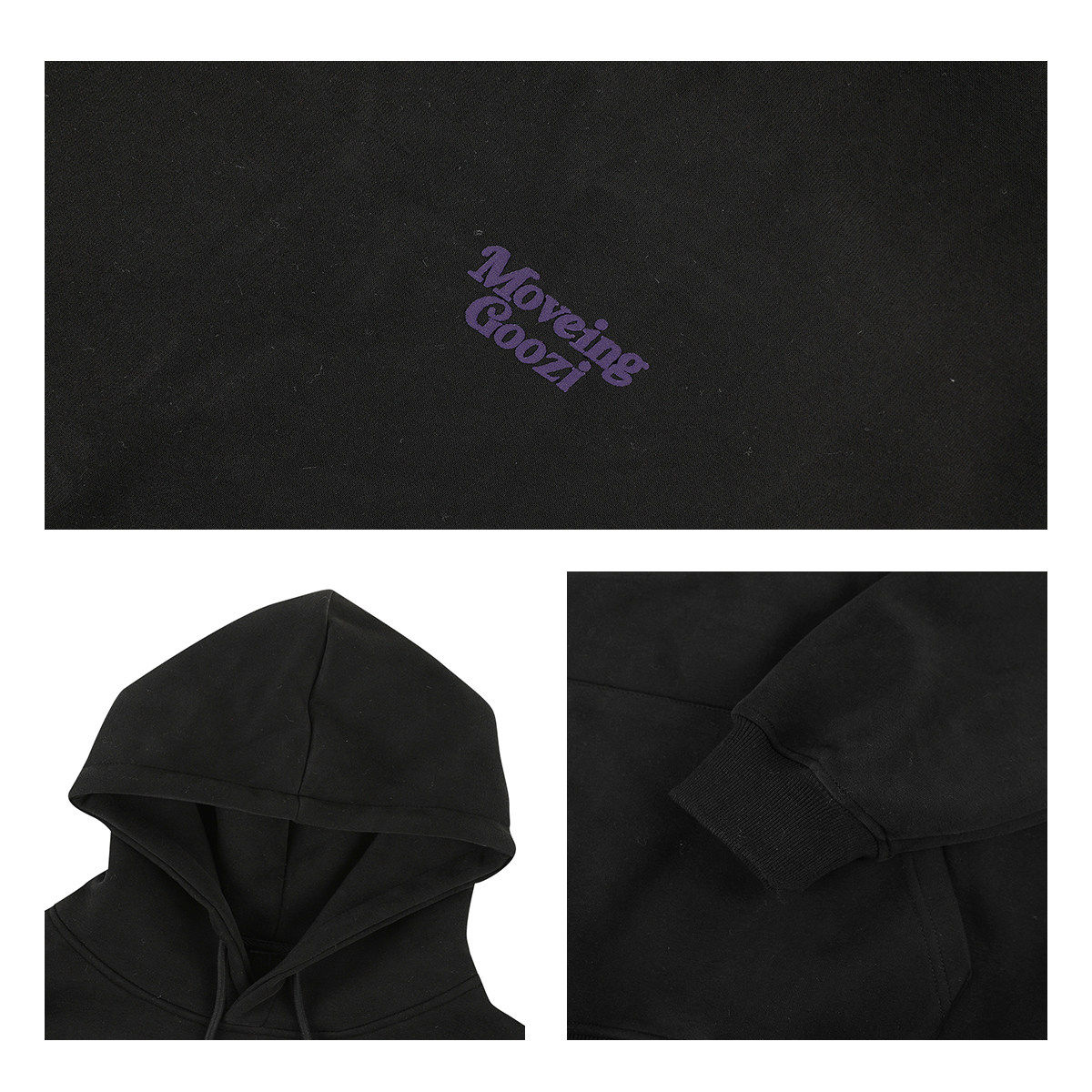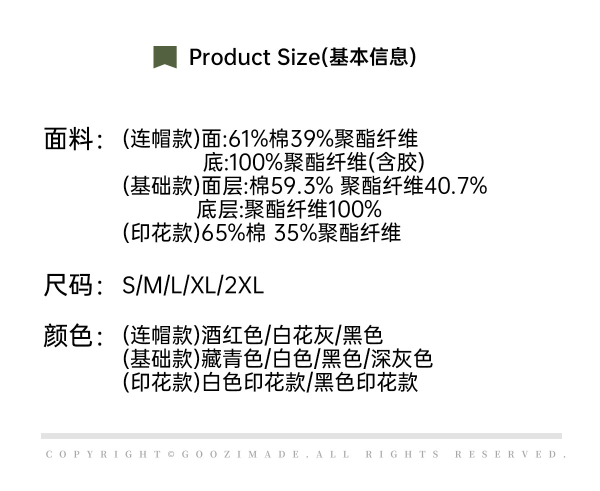 GOOZI MADE重磅黑色發泡印花連帽衛衣男秋冬2026新款男款男生外套