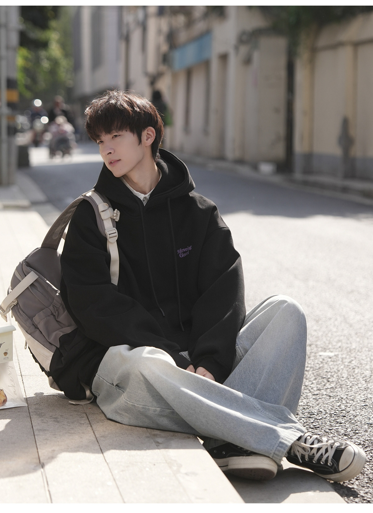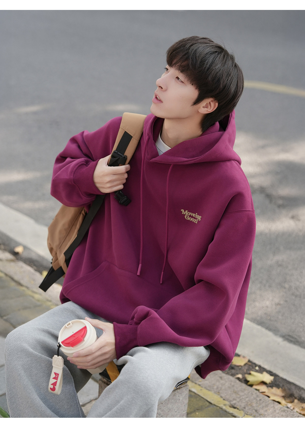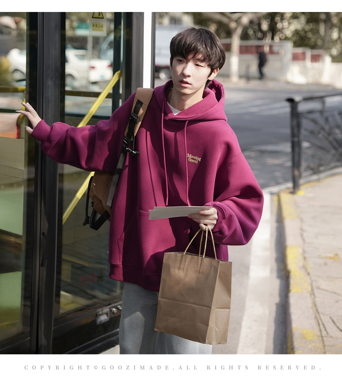 GOOZI MADE重磅黑色發泡印花連帽衛衣男秋冬2026新款男款男生外套