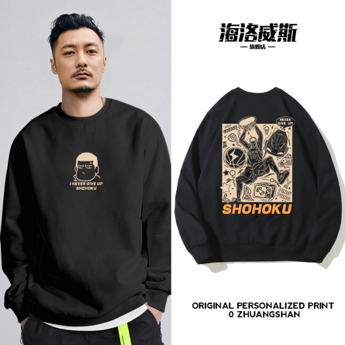 美式塗鴉潮牌衛衣男圓領2025新款加絨加厚秋冬款大碼寬松籃球上衣