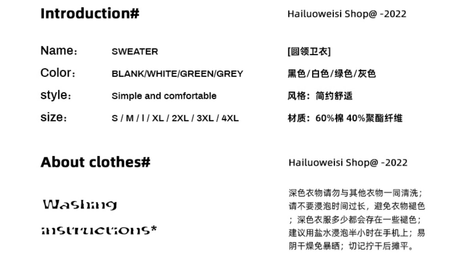 款式及尺寸: