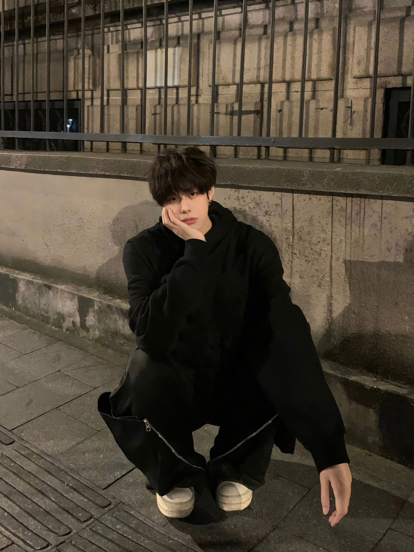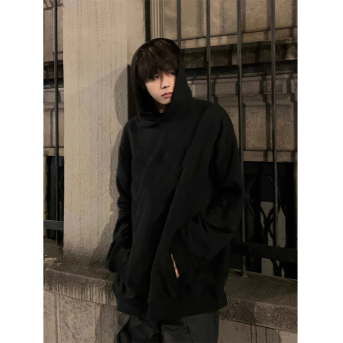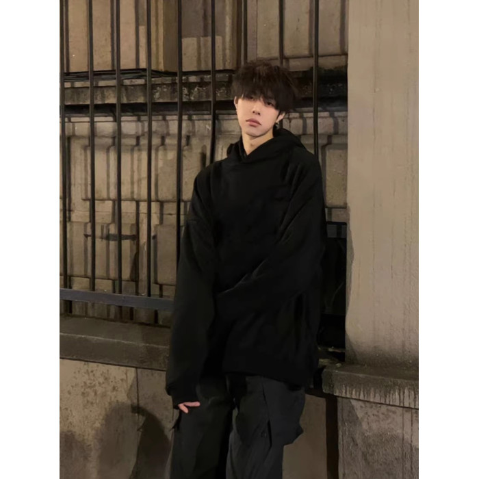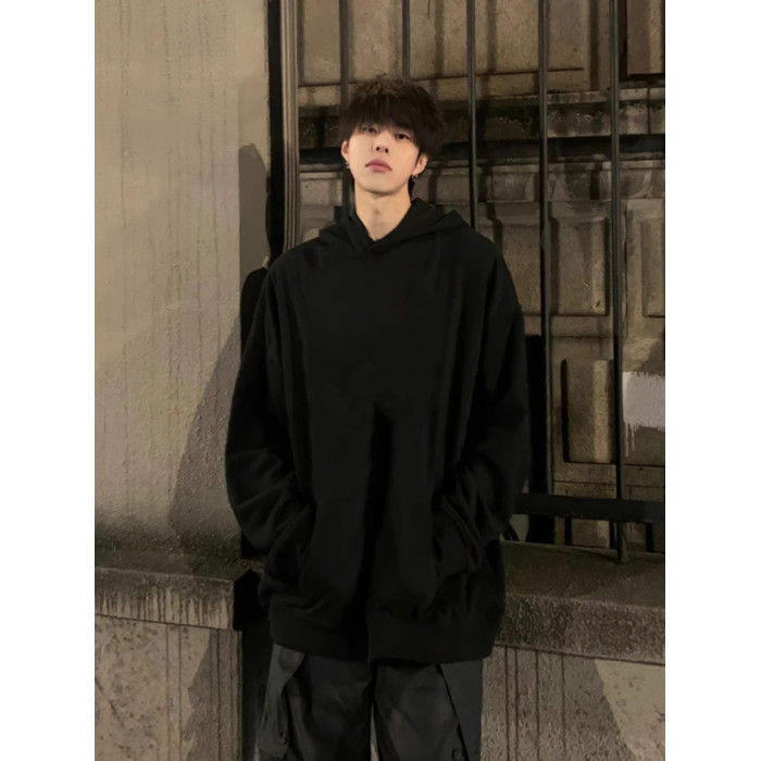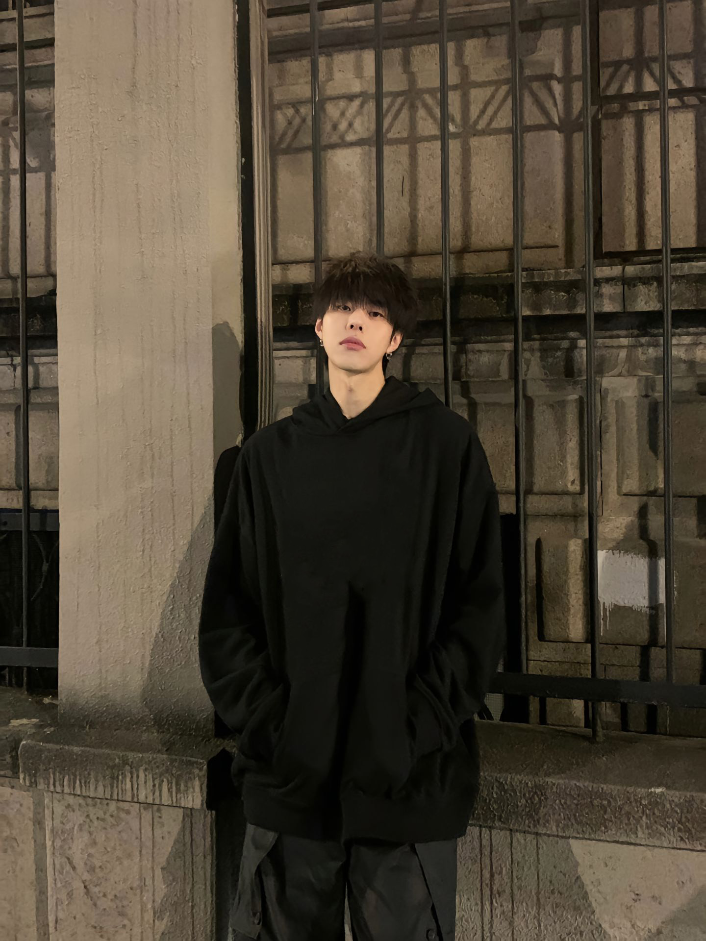 cleanfit純黑色衛衣潮牌男款春秋美式復古500g重磅中山外套連帽衫
