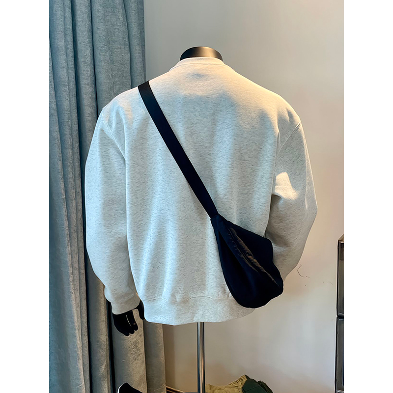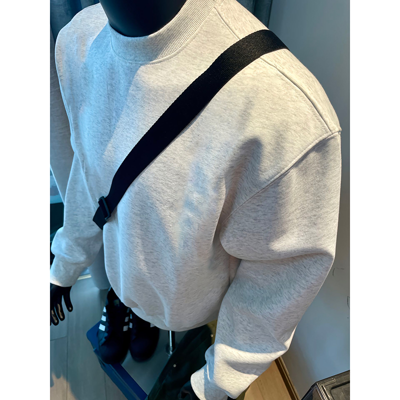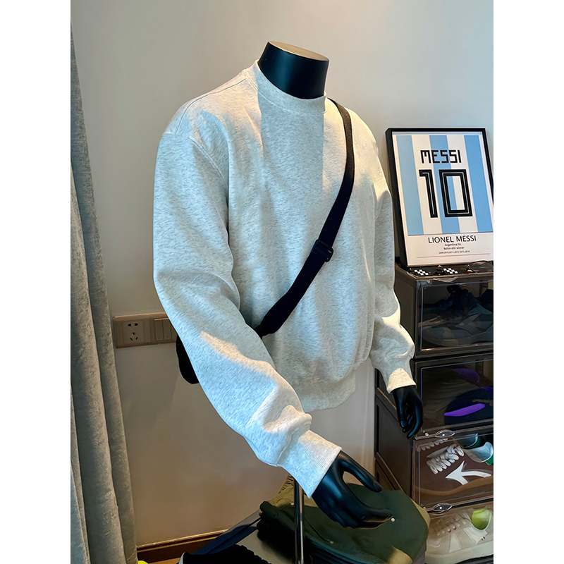 花灰色美式重磅圓領衛衣男款秋冬無帽加絨長袖t恤加厚內搭打底衫
