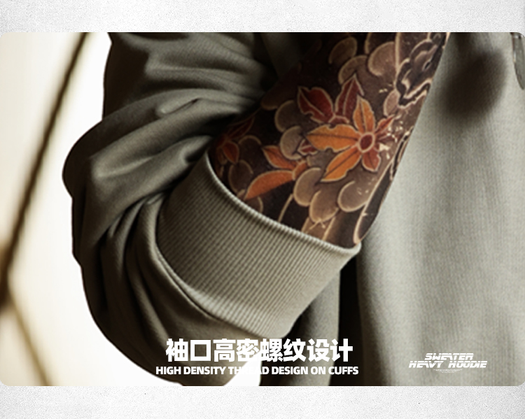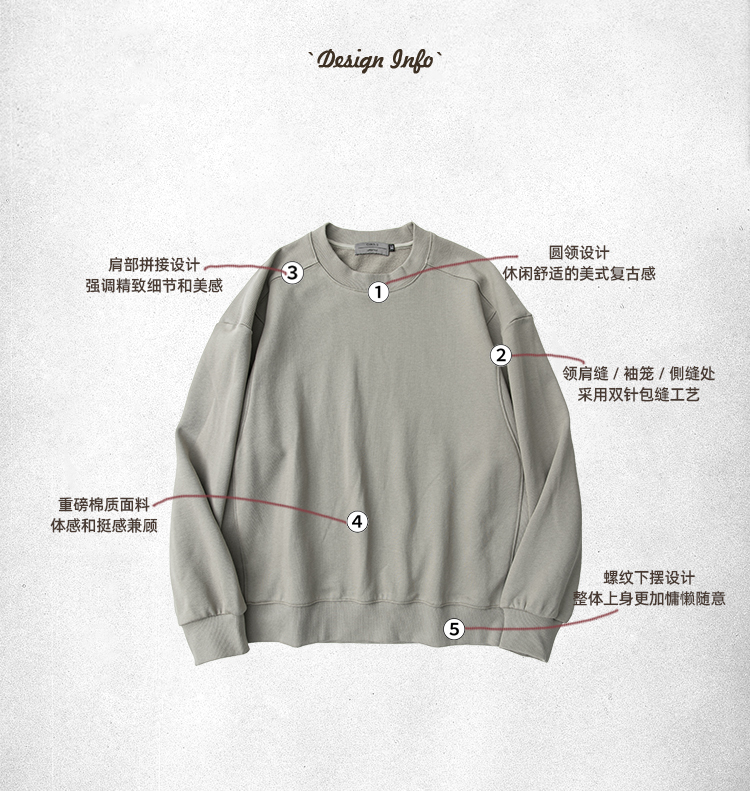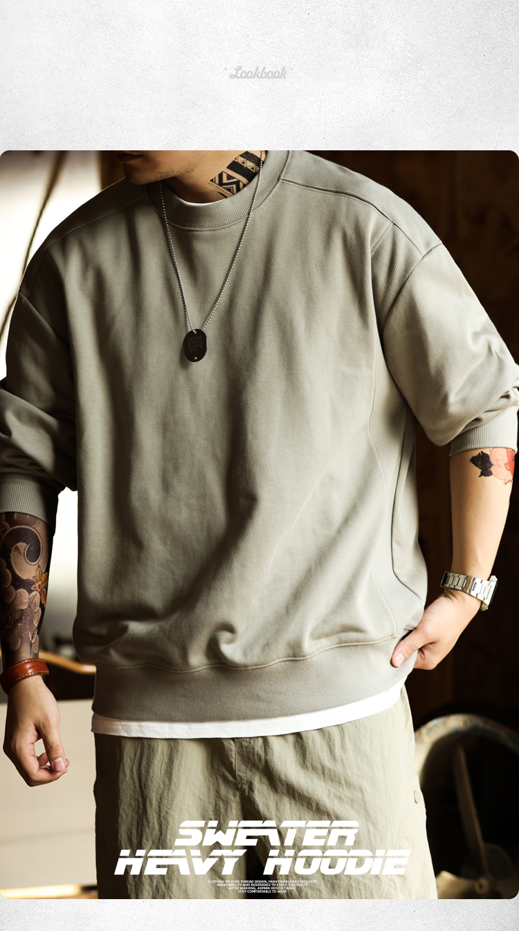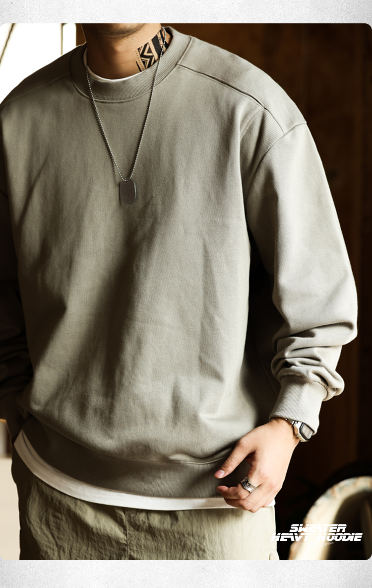 BGYO美式復古水洗阿爾曼衛衣男390g重磅外穿圓領羅紋拼接打底外套