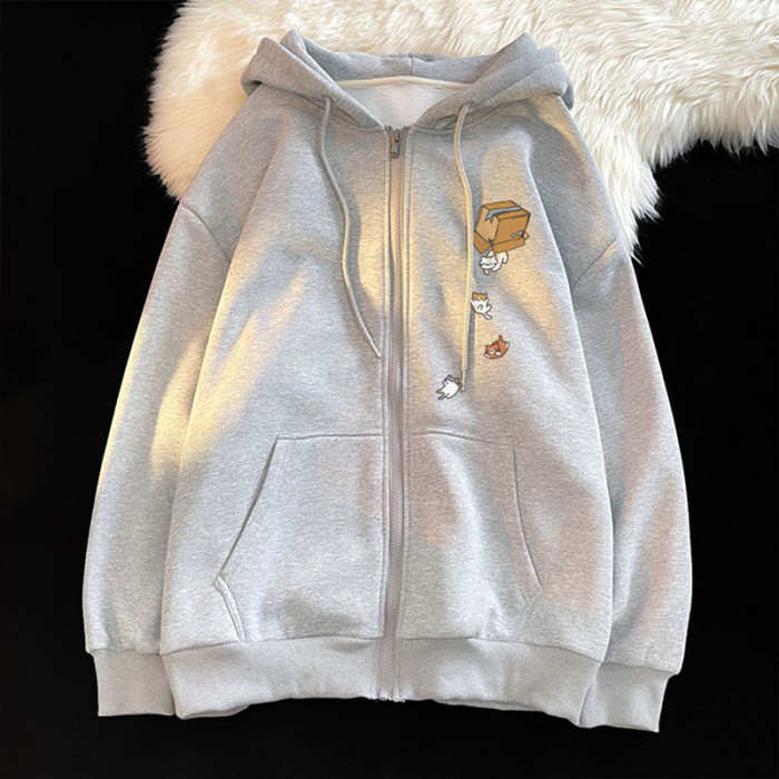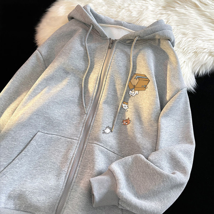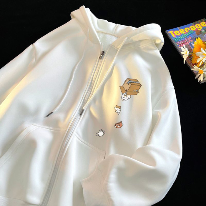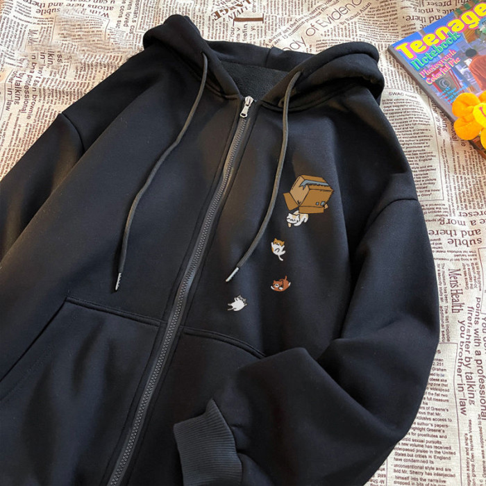 百搭休閒貓咪印花連帽開衫外套情侶裝寬松ins潮流秋冬拉鍊衛衣男