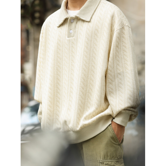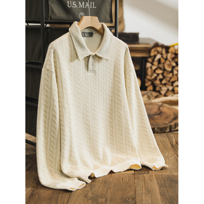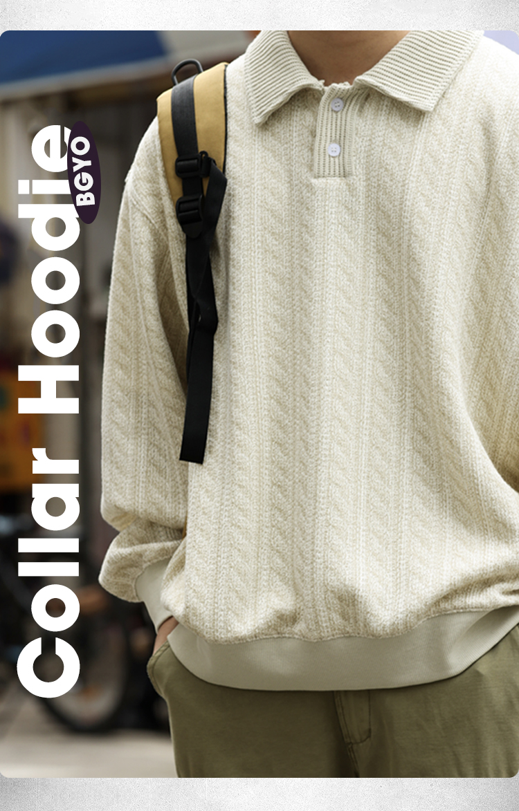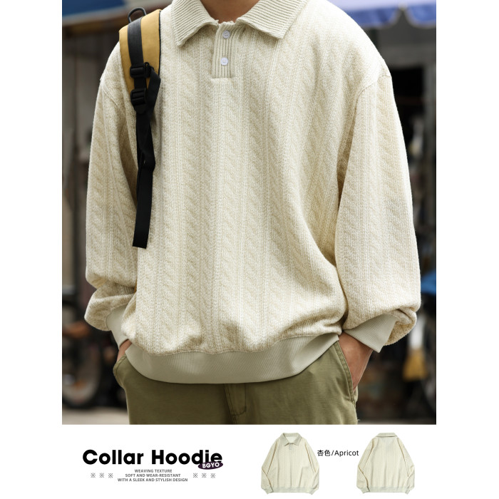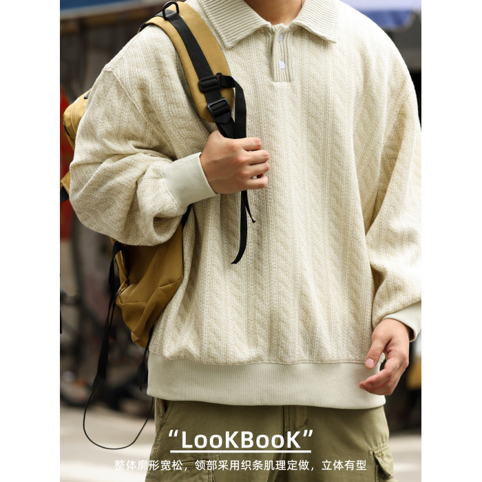 BGYO鹿起 織條肌理松弛感翻領衛衣男美式休閒學院風長袖POLO上衣