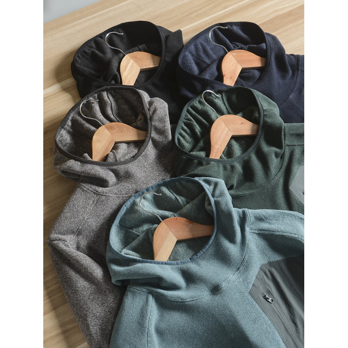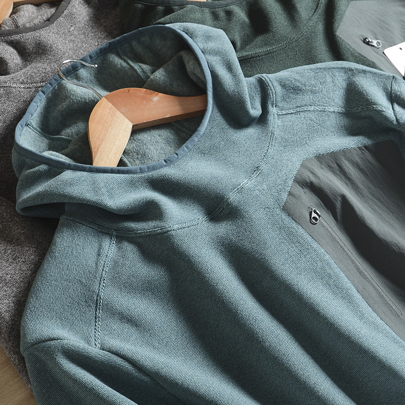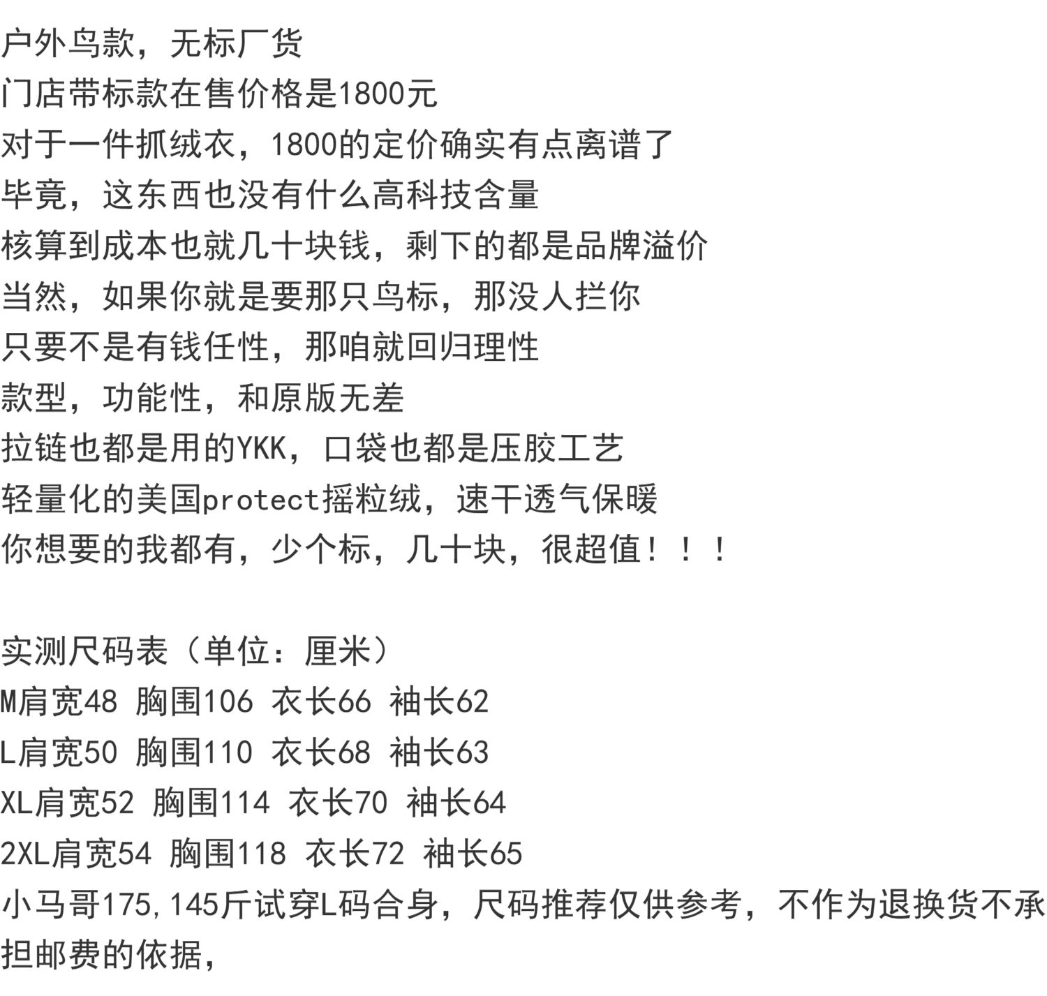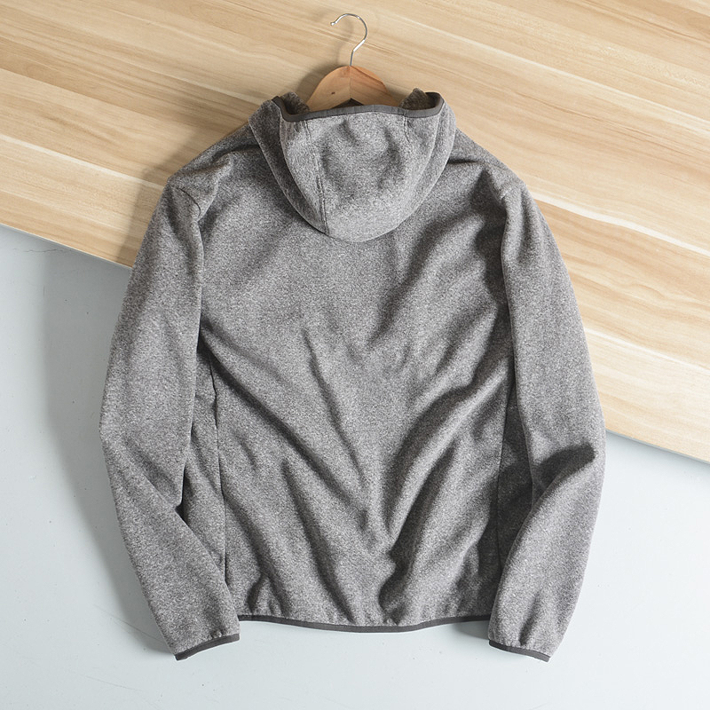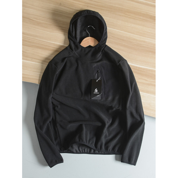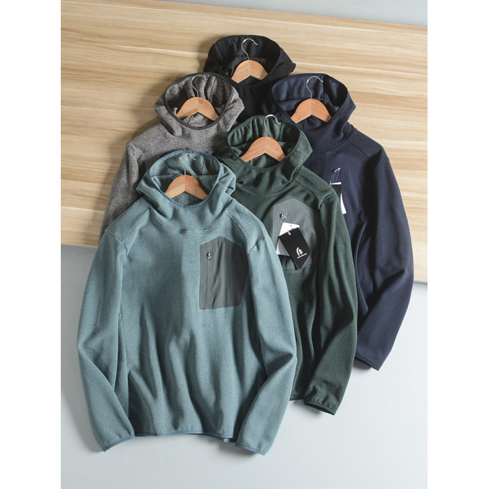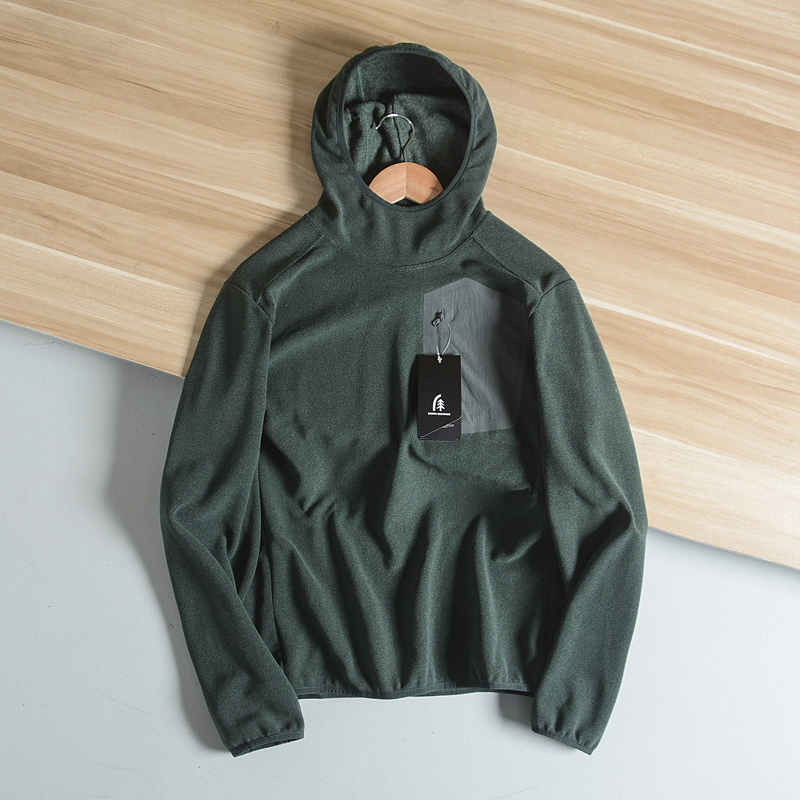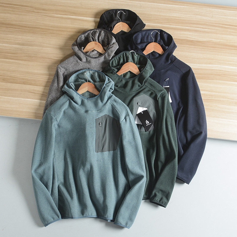 平替款輕量化蓬松保暖胸前壓膠口袋戶外搖粒絨抓絨衣男士連帽衛衣