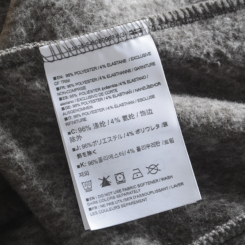 | 材質成分 | 聚對苯二甲酸乙二酯(滌綸)96% 聚氨酯彈性纖維(氨綸)4% |
