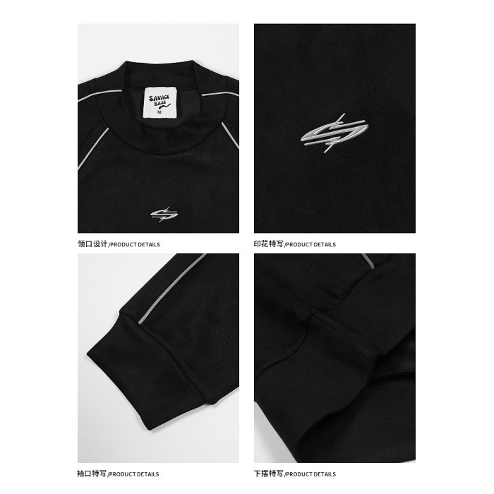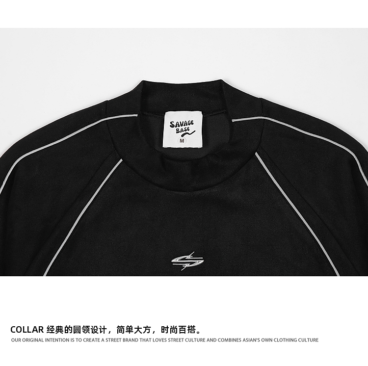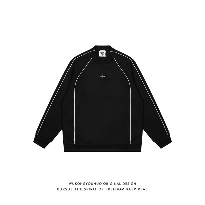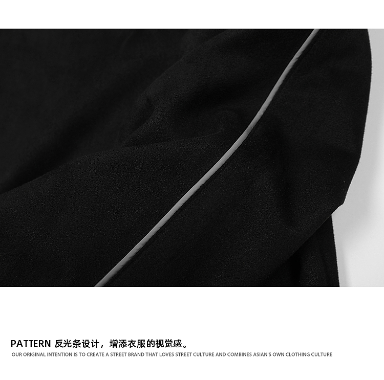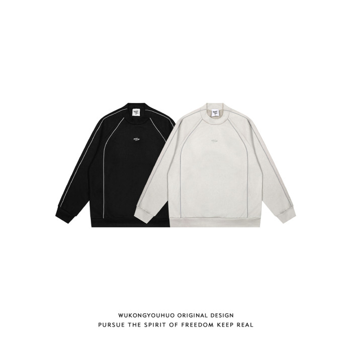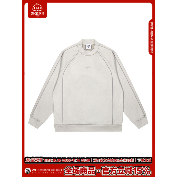 悟空有貨美式高街反光條麂皮絨衛衣男潮牌設計感寬松運動圓領上衣