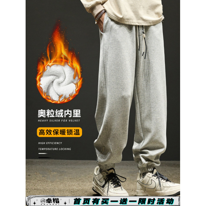 運動衛褲男士秋冬款加絨加厚重磅休閒褲子男生長褲冬季美式潮男褲
