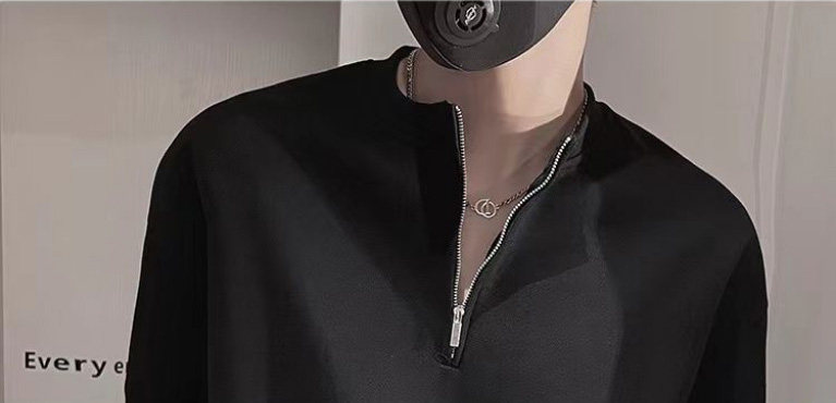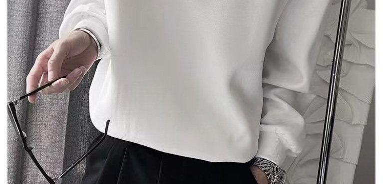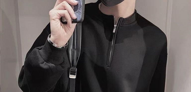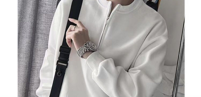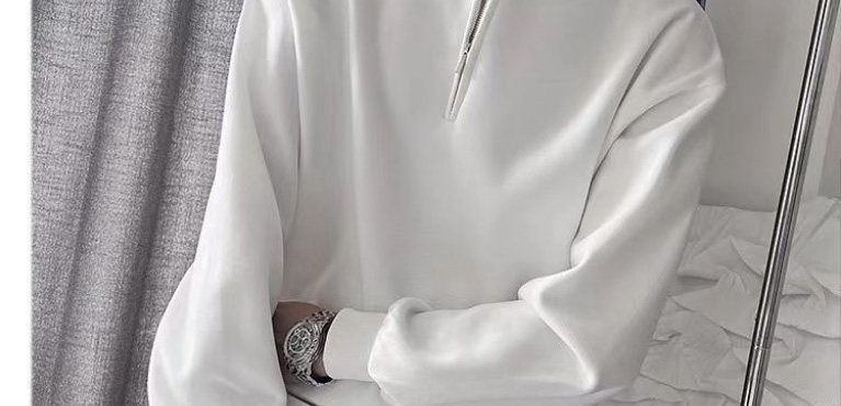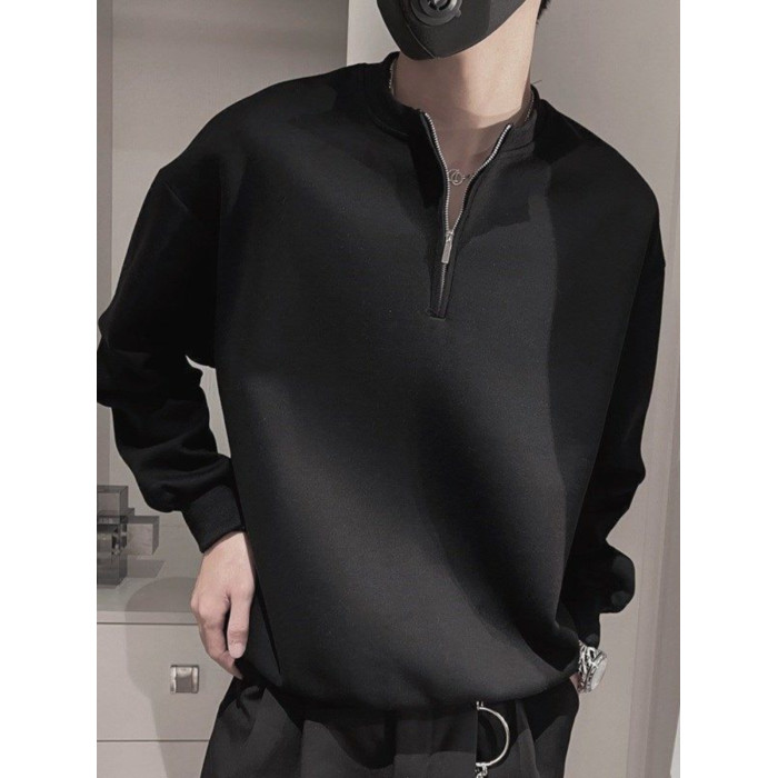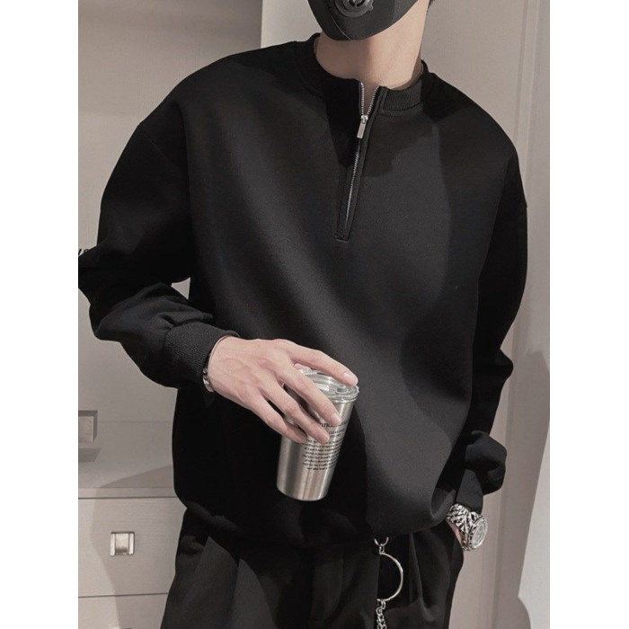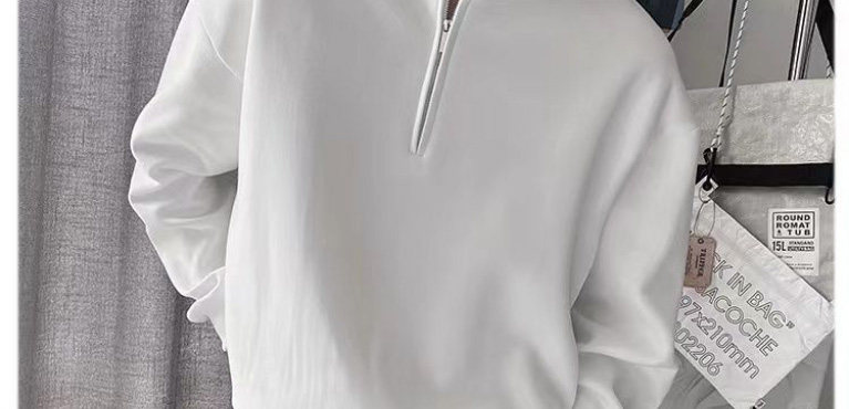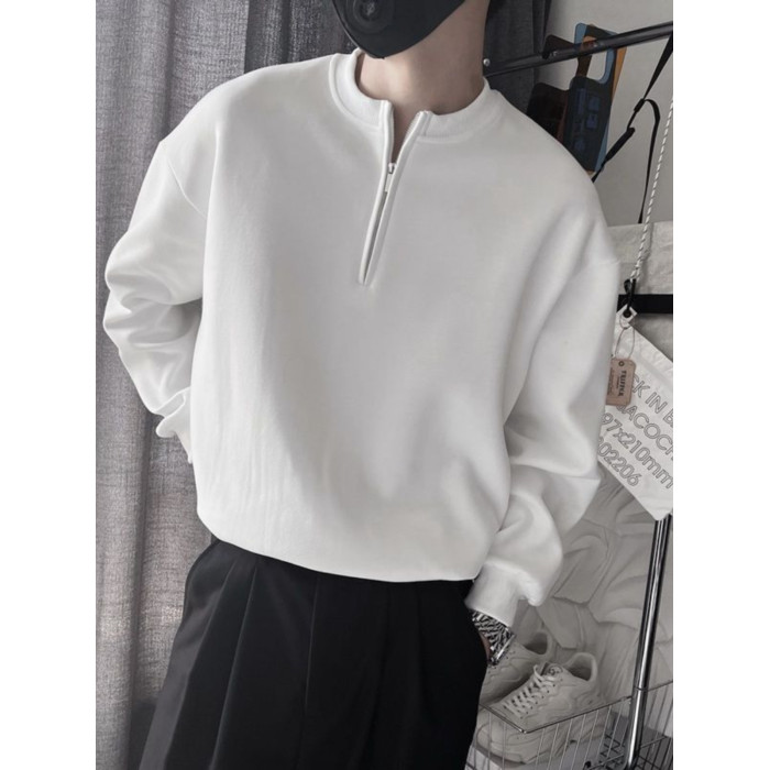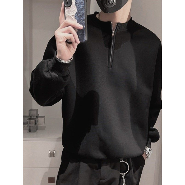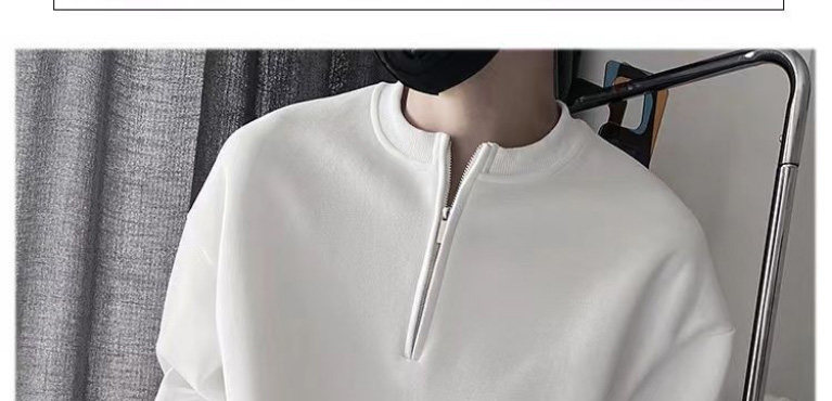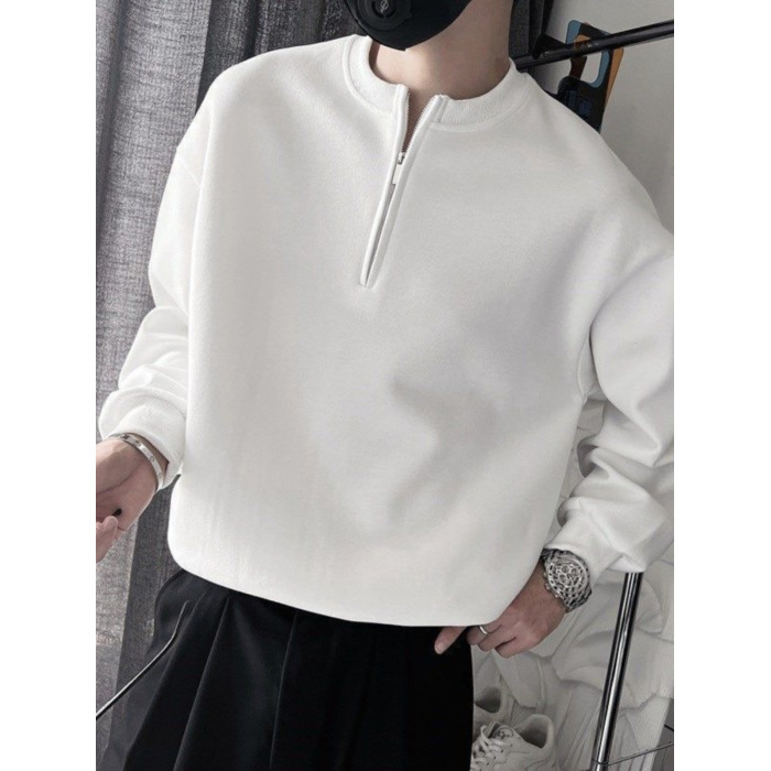 高品質白色半拉鍊衛衣男潮牌春秋長袖T恤新款內搭青春痞帥打底衫