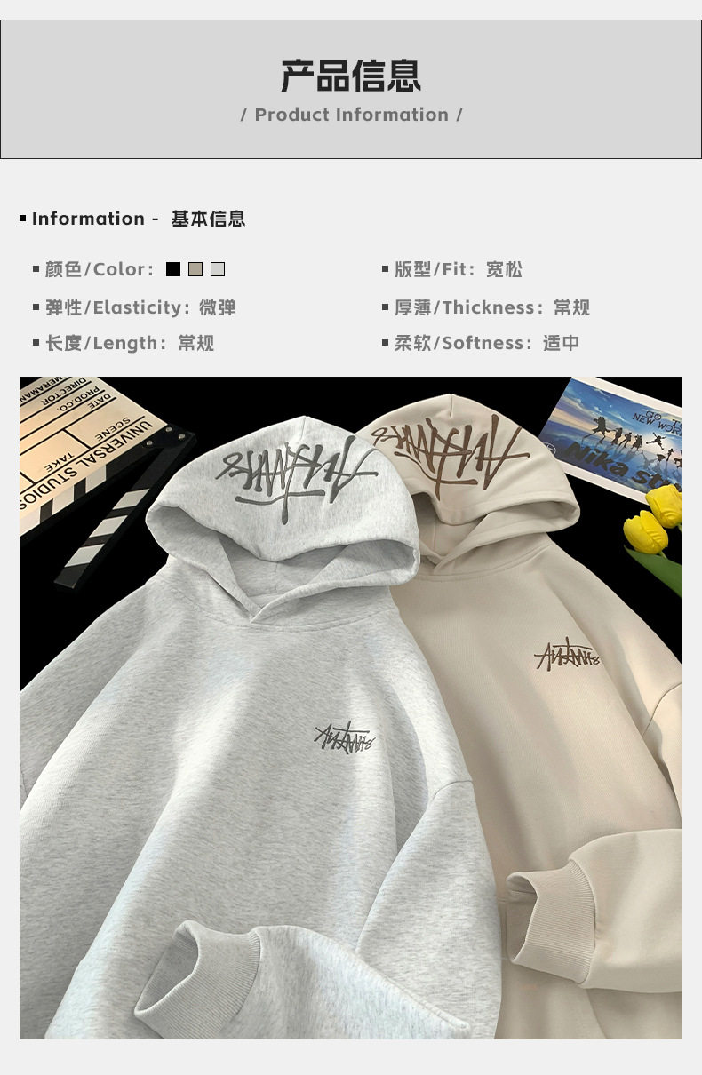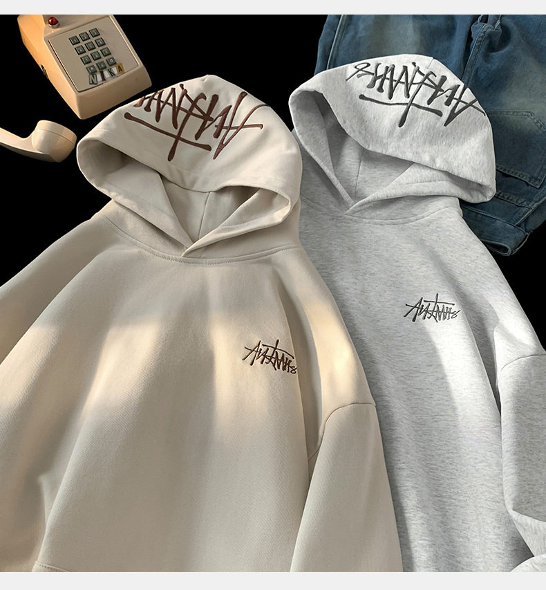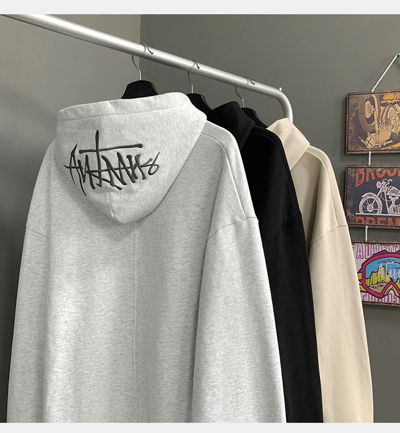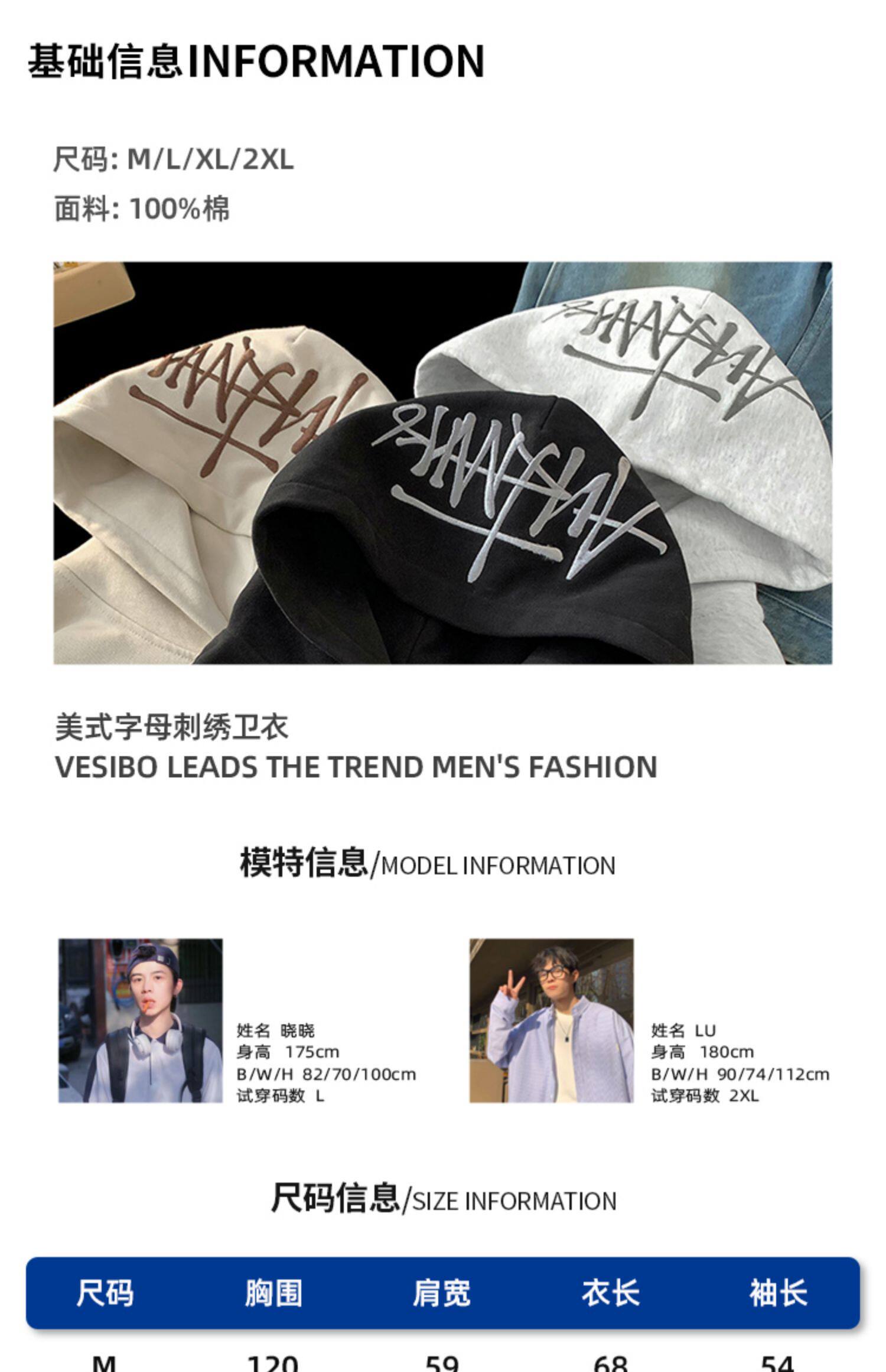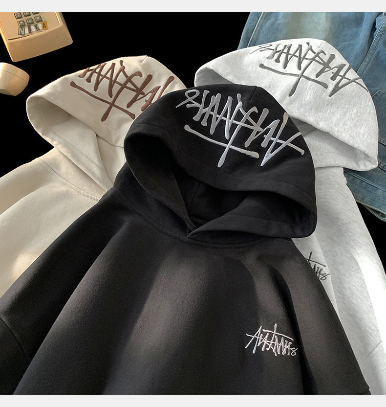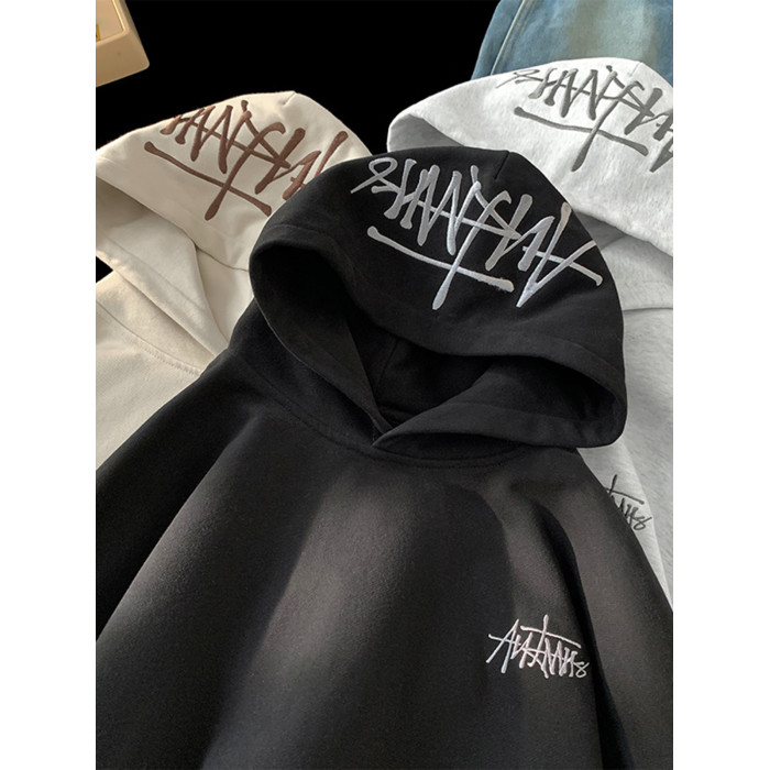 重磅潮牌刺綉連帽衛衣男秋季美式高街休閒帽衫復古百搭情侶款外套