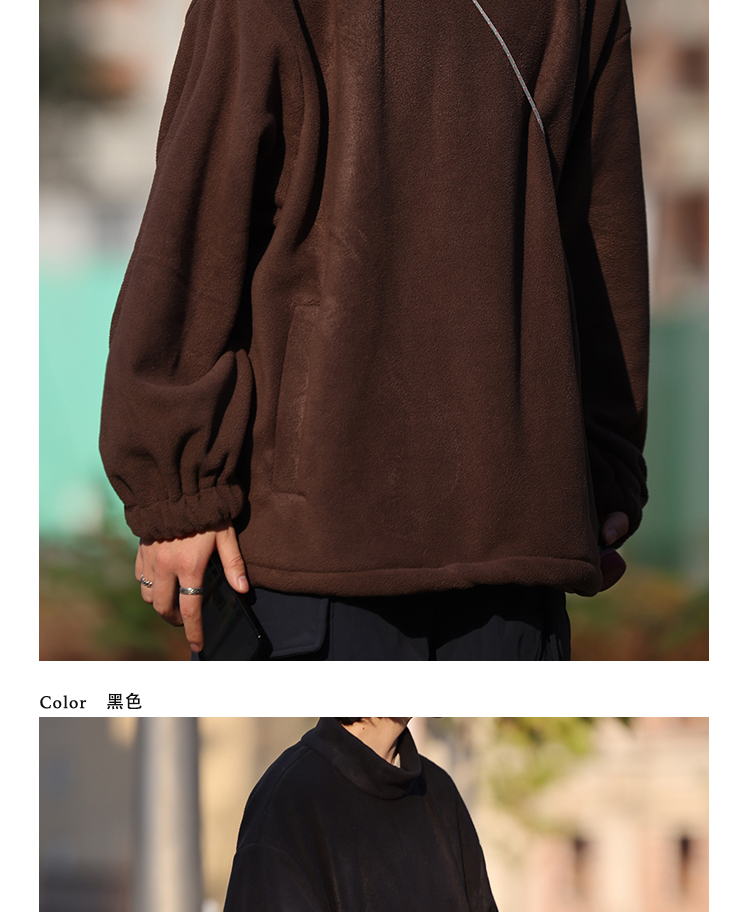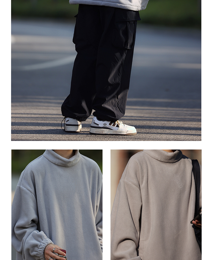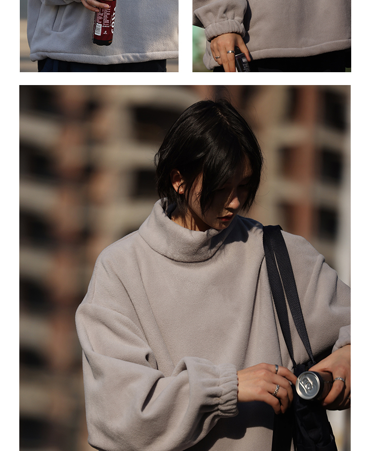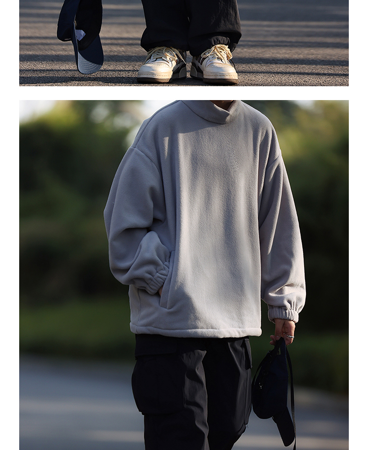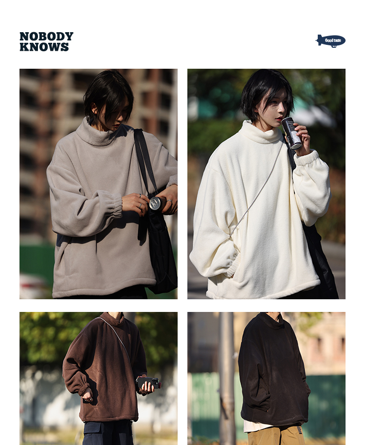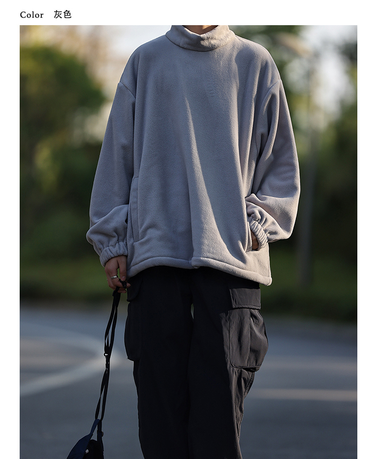 Nobodyknows 春秋基礎日系復古半高領搖粒絨保暖內搭純色情侶衛衣