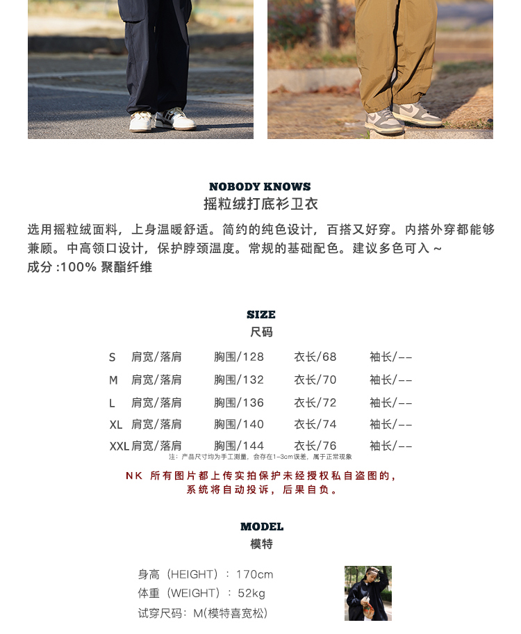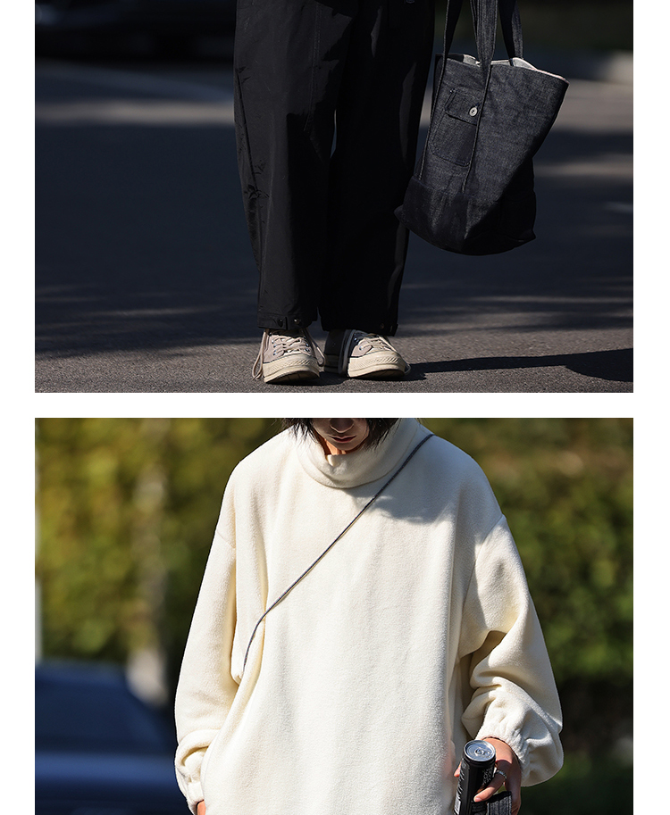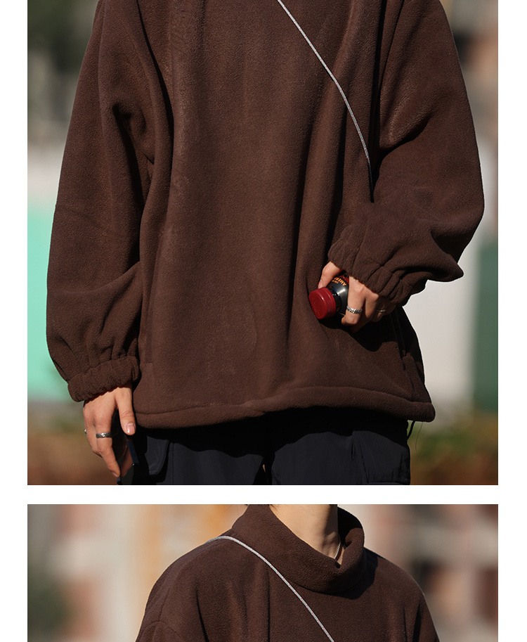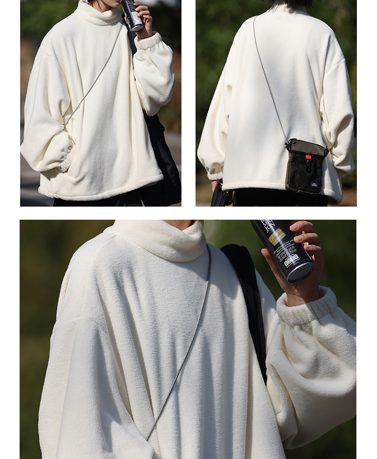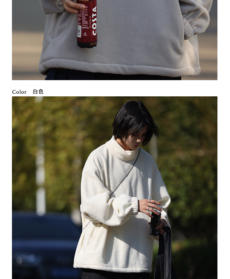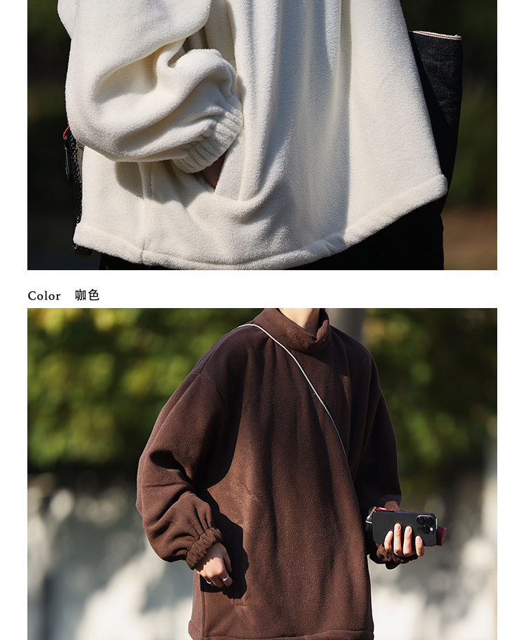 Nobodyknows 春秋基礎日系復古半高領搖粒絨保暖內搭純色情侶衛衣