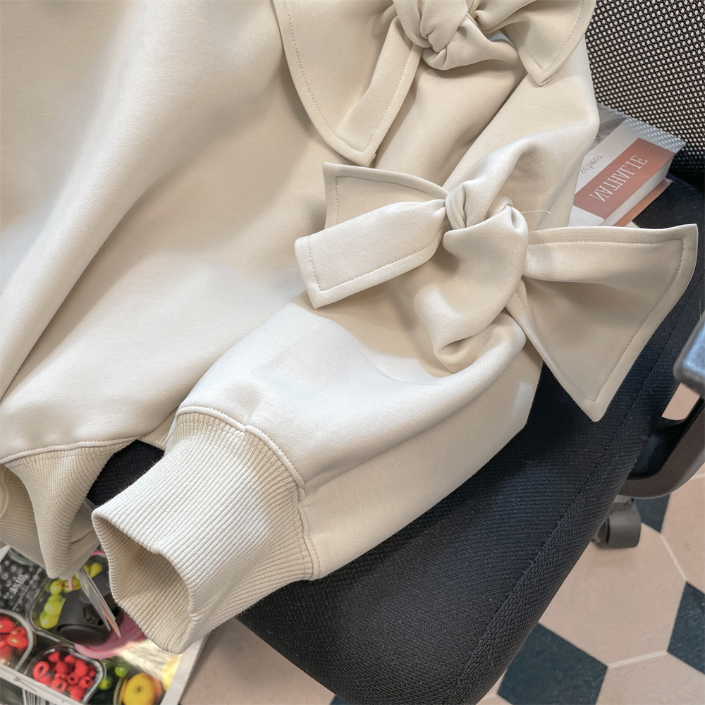 法式小香風獨特設計蝴蝶結衛衣男女秋冬季寬松高級感慵懶正肩上衣