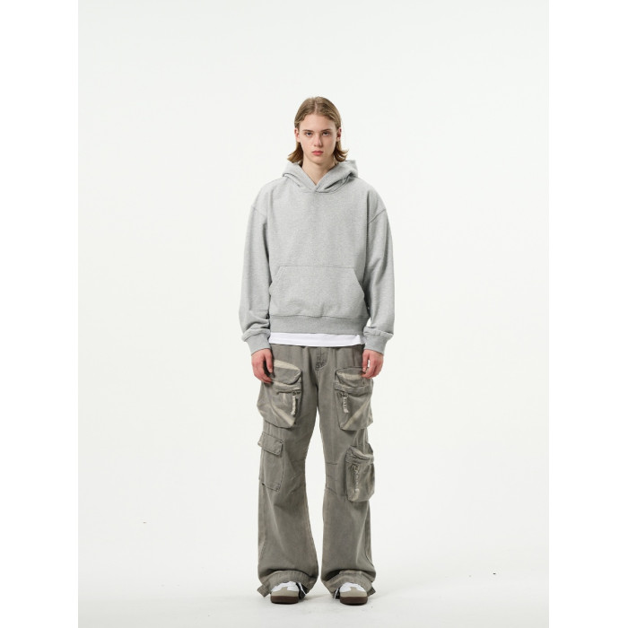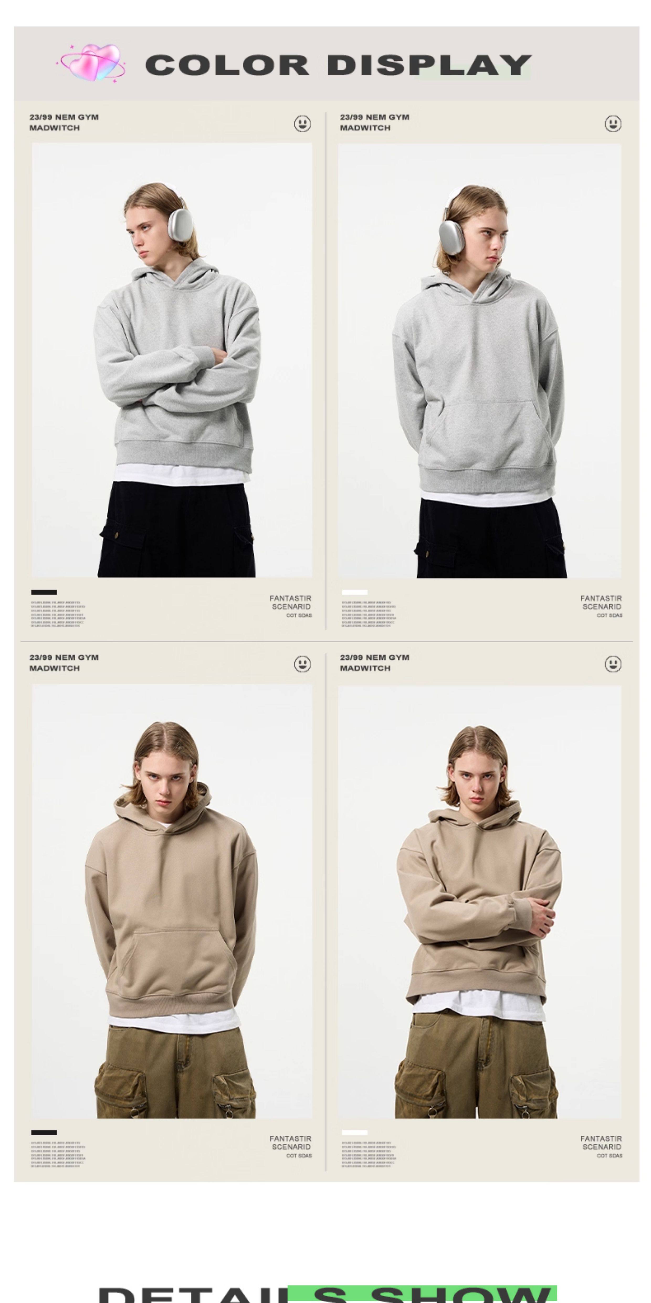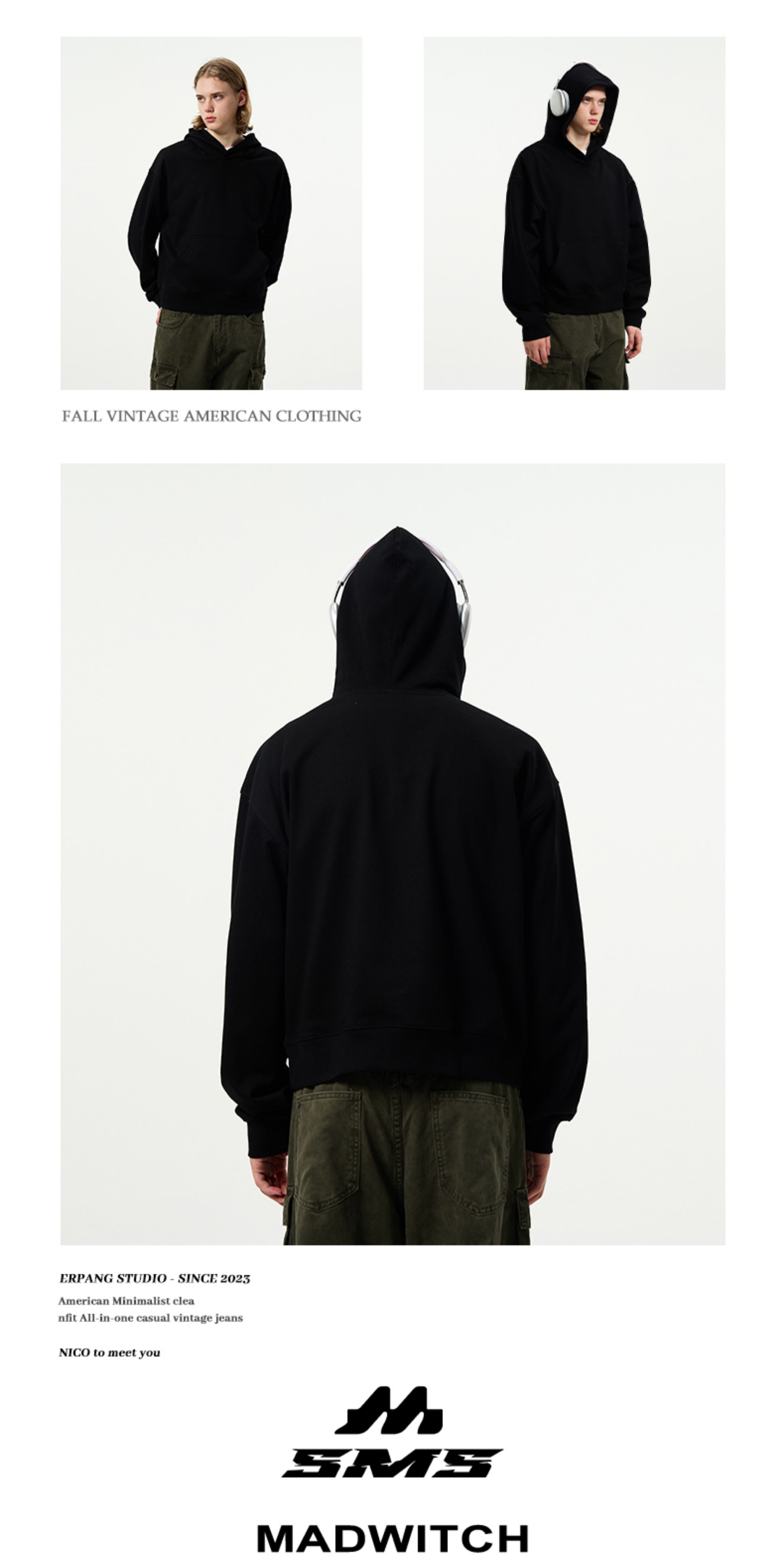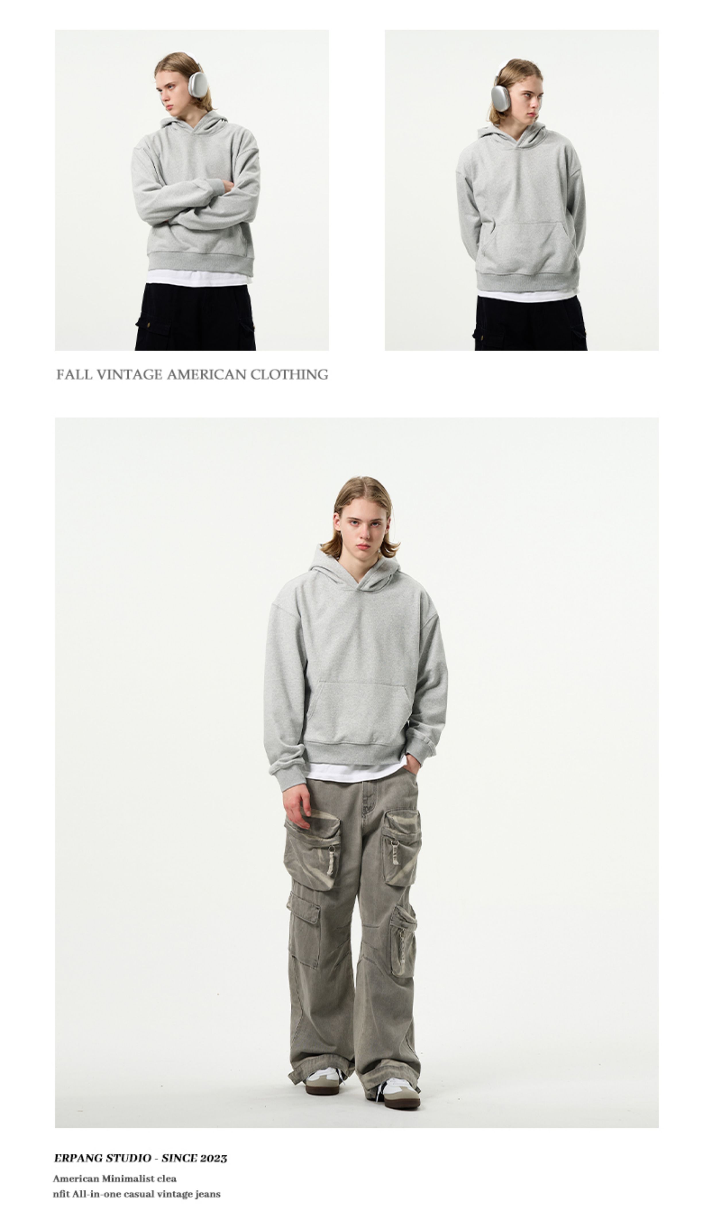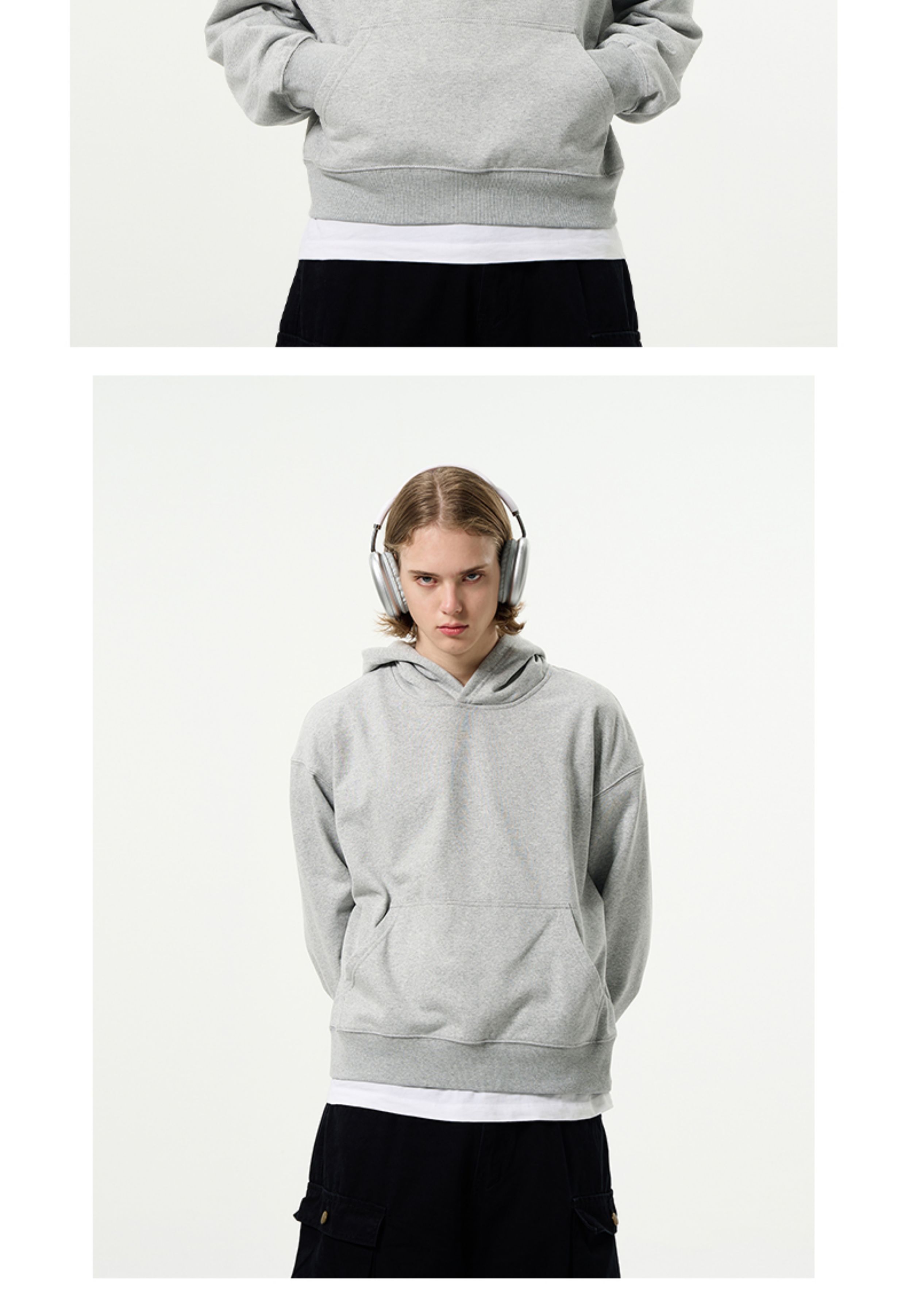 MADWITCH美式復古cleanfit灰色連帽衛衣boxy簡約純色情侶帽衫ins