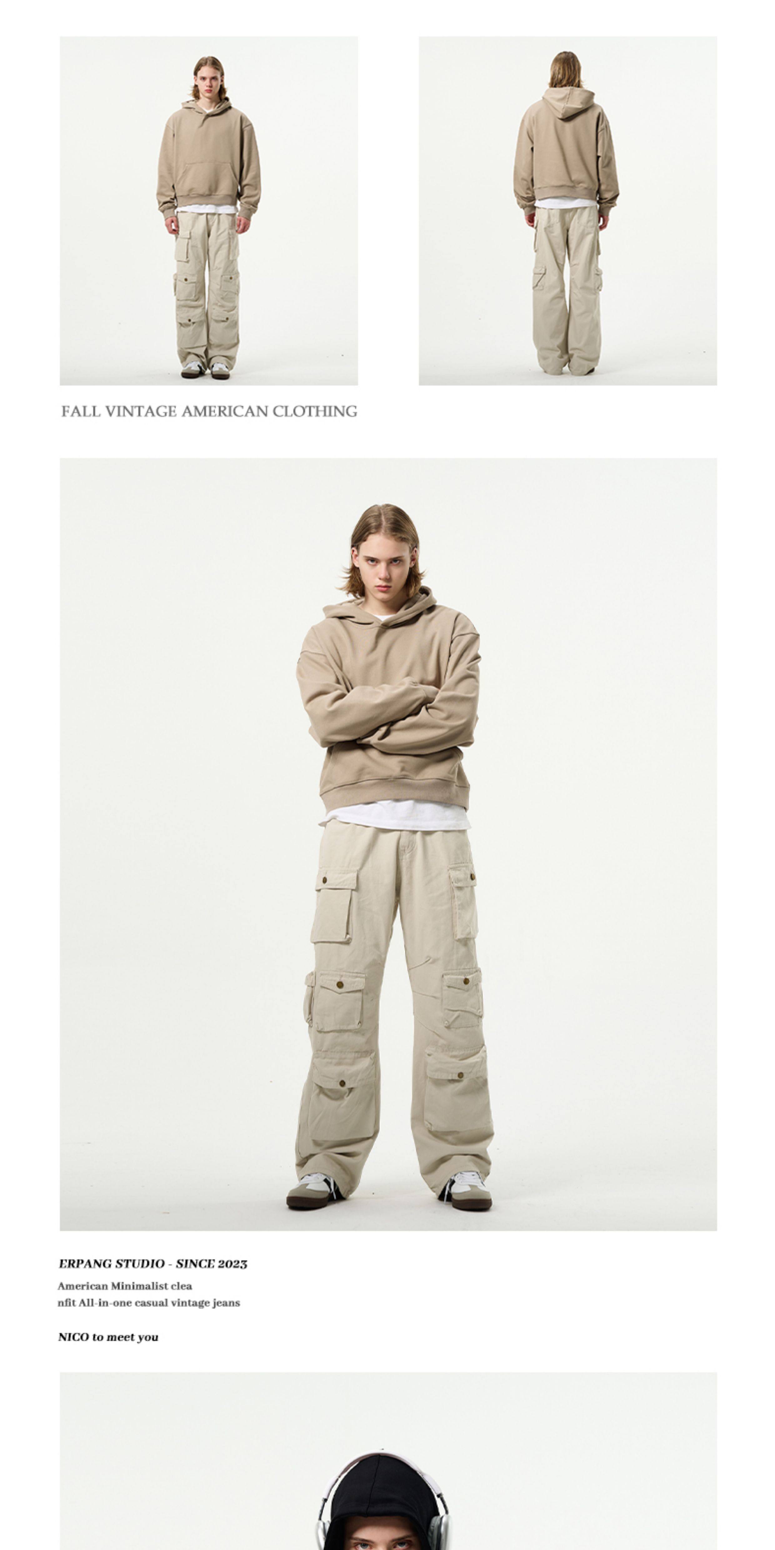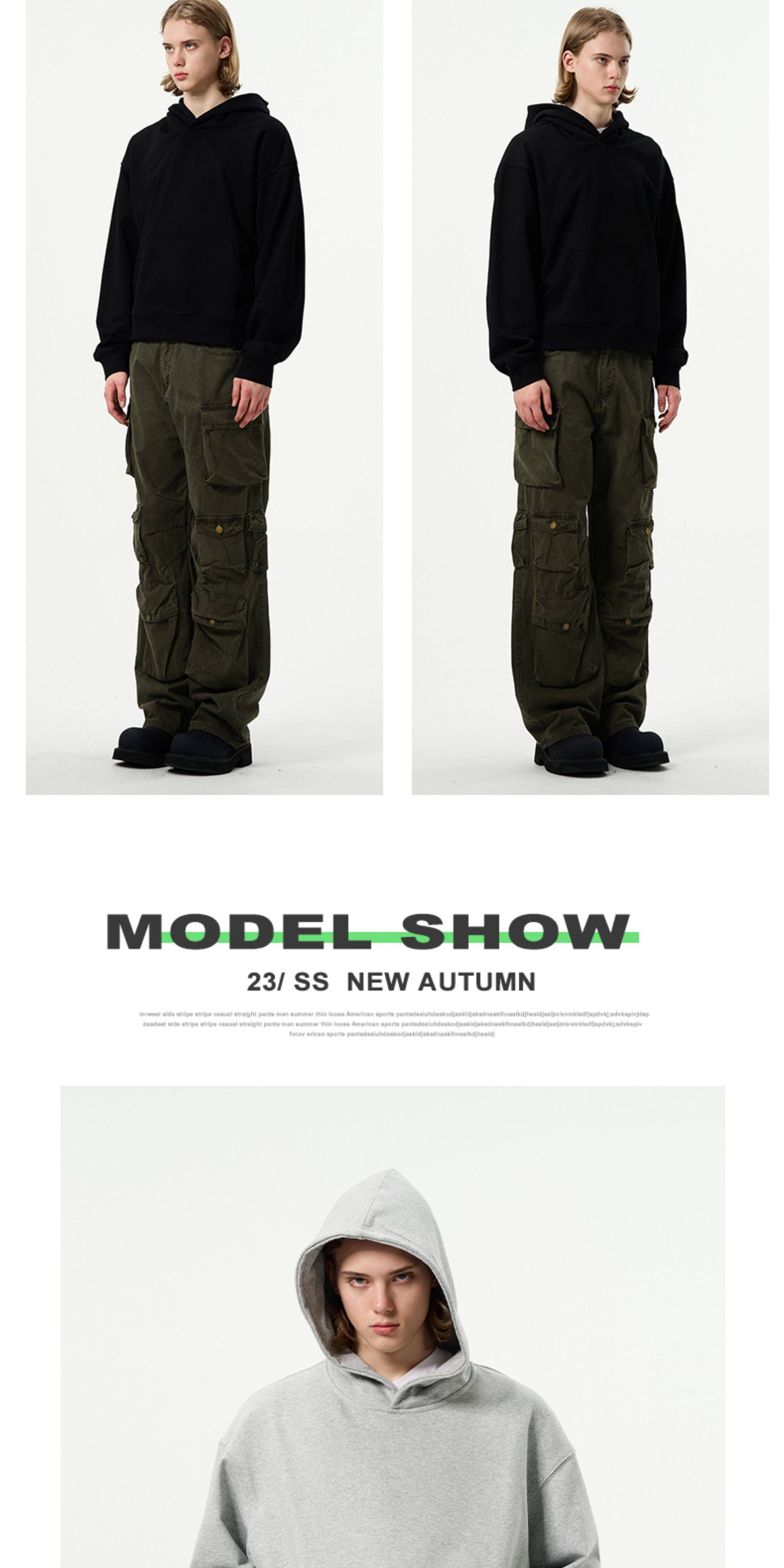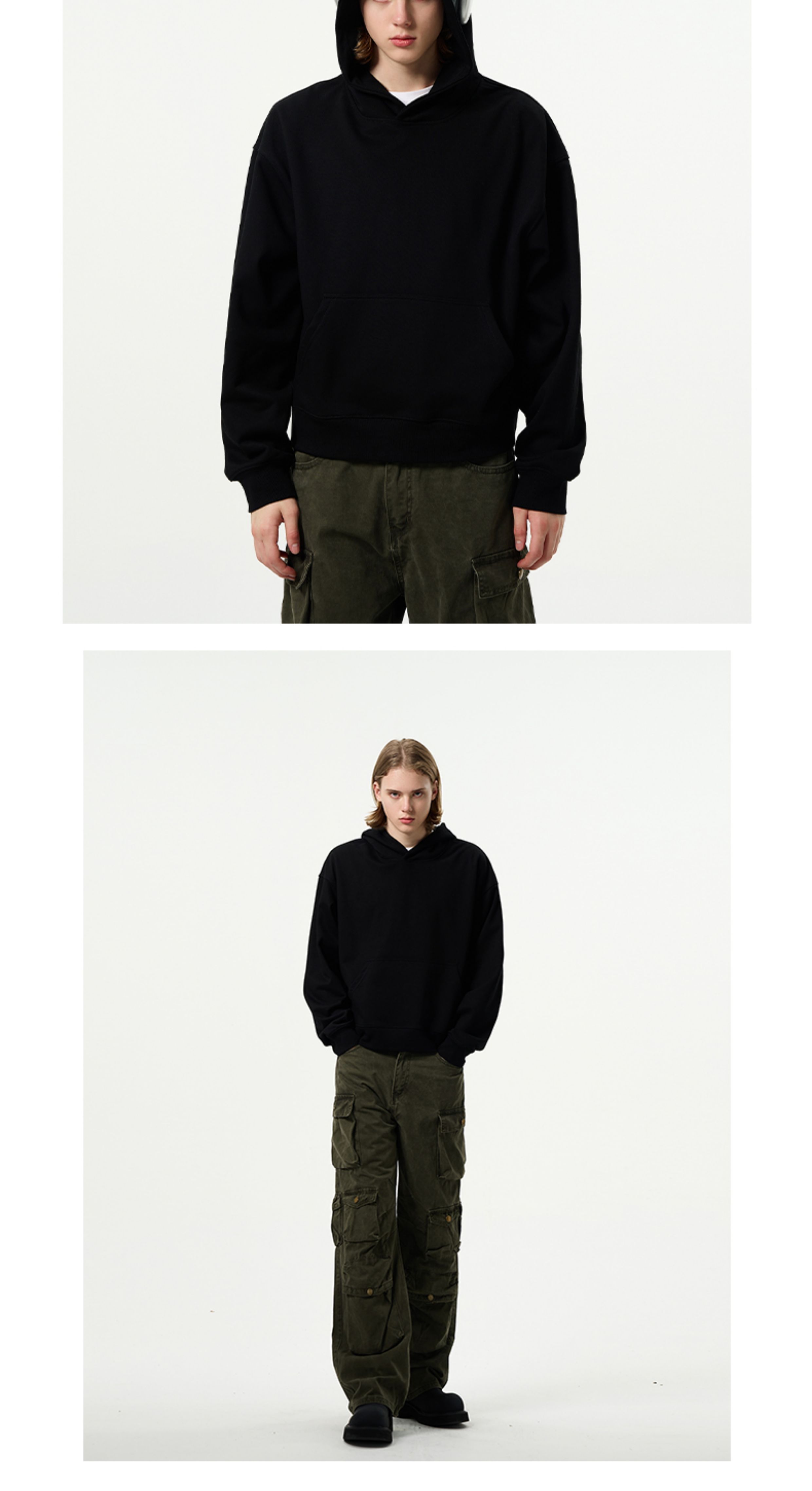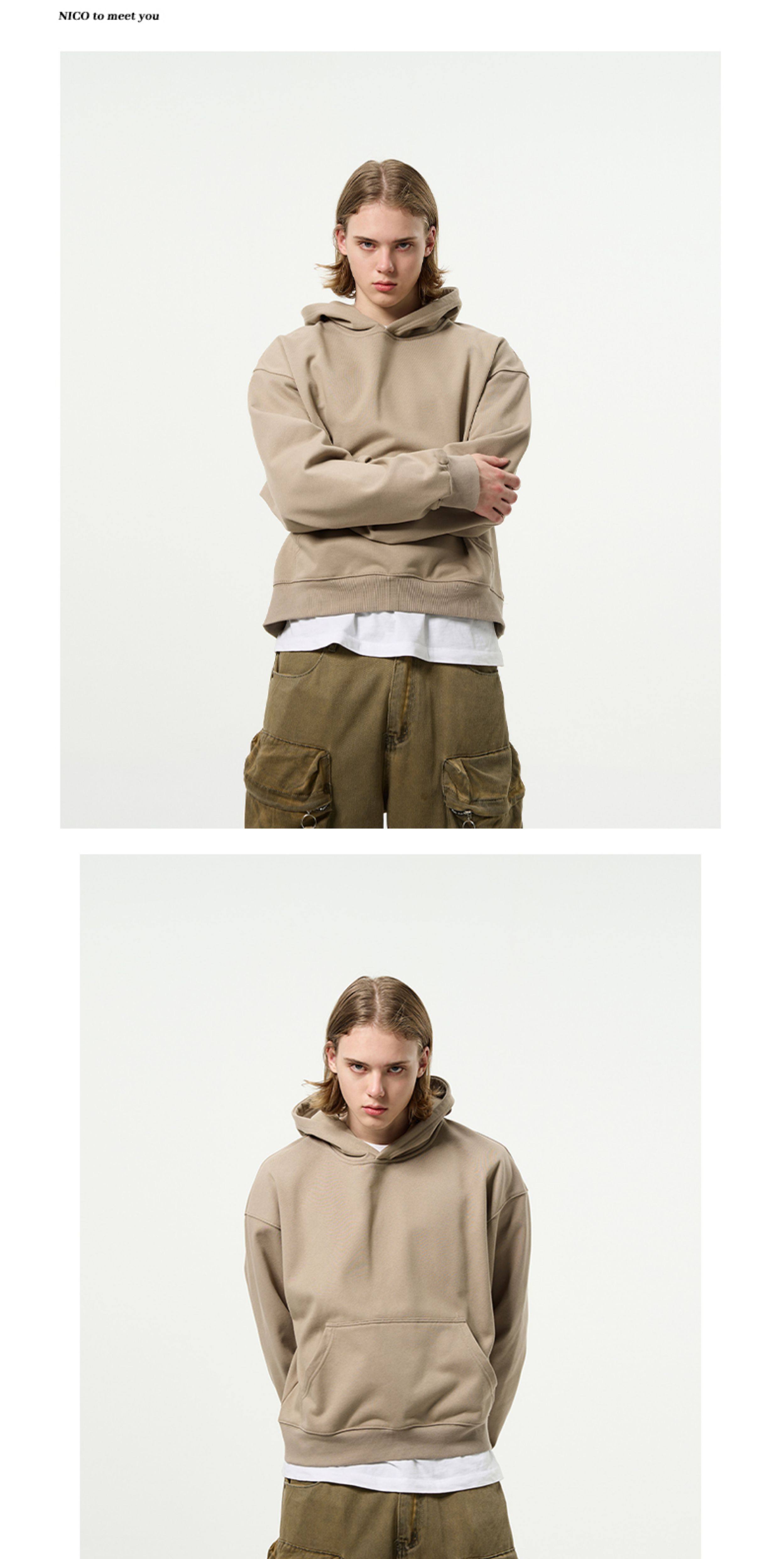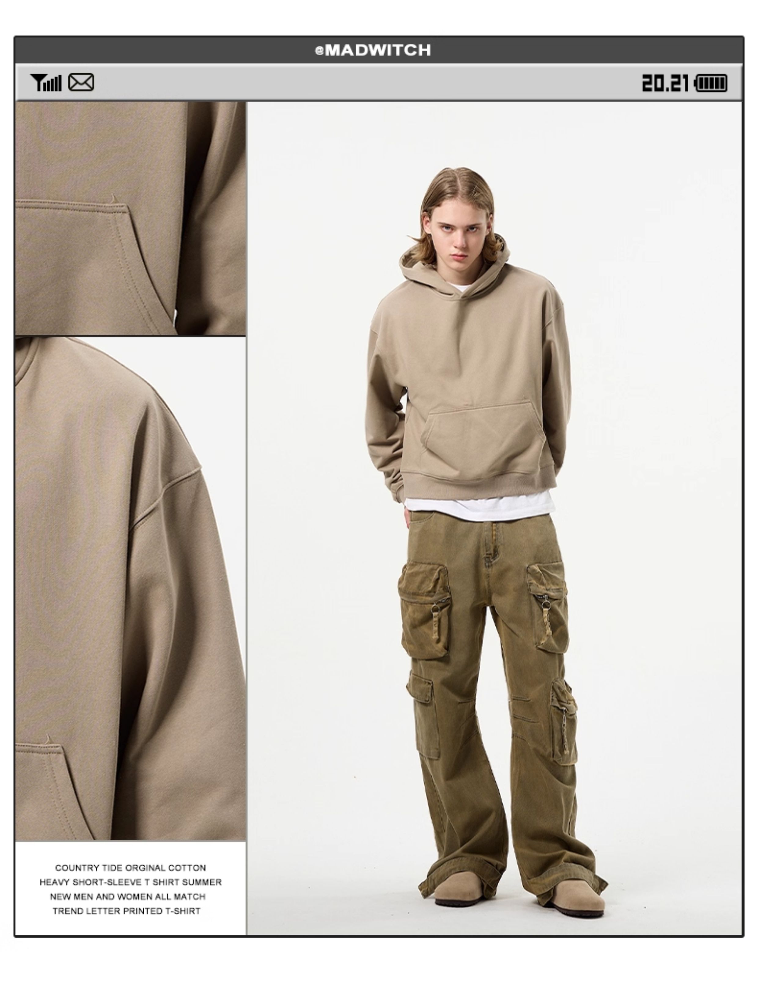 MADWITCH美式復古cleanfit灰色連帽衛衣boxy簡約純色情侶帽衫ins