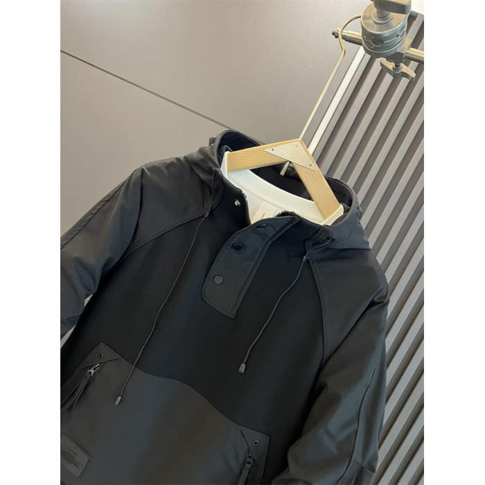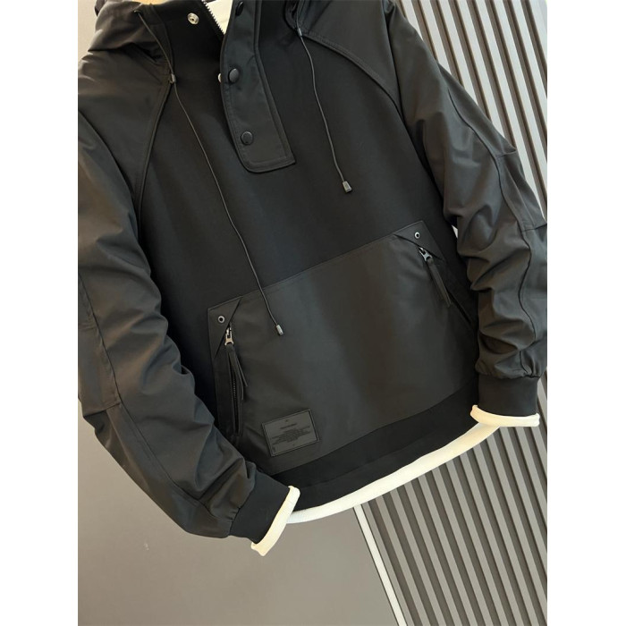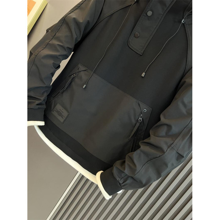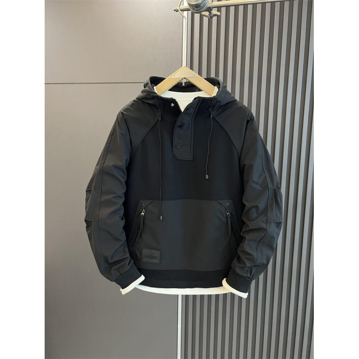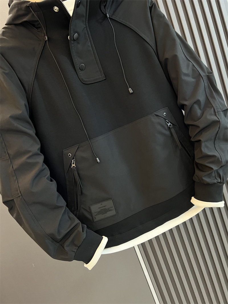 秋冬大口袋加絨工裝拉鍊套頭連帽衛衣男士純色拼接休閒百搭上衣潮
